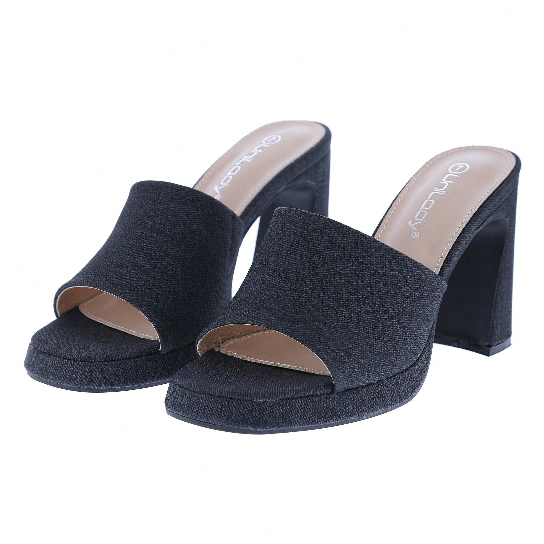 Women's Platform Chunky Heels Mules Square Open Toe High Heeled Sandals Slip On Slides Dress Shoes