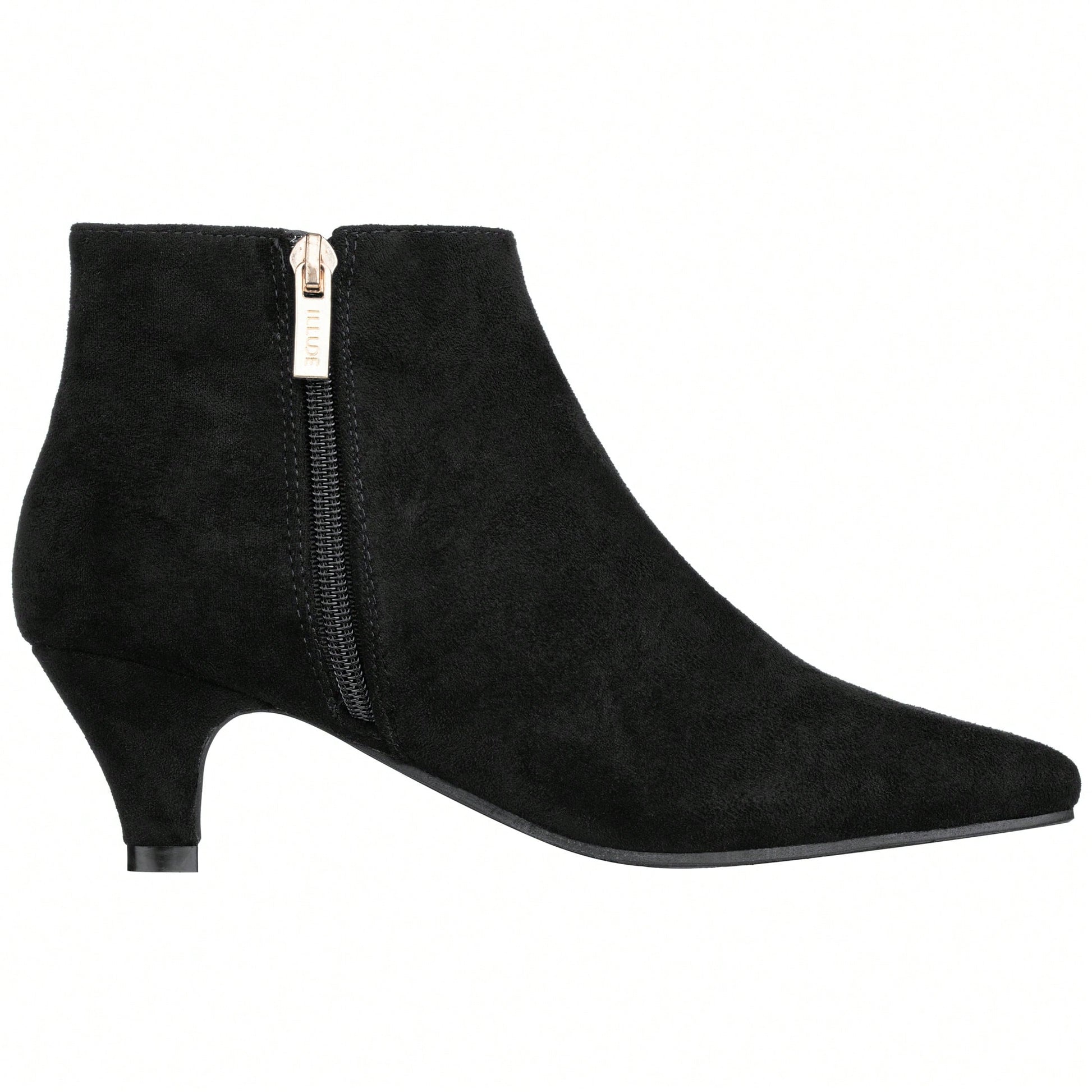 • LONDON CHIC: This sleek and feminine boot features a smooth faux leather and suede upper, low-height heels, and sturdy side zipper with subtle stitching detail.