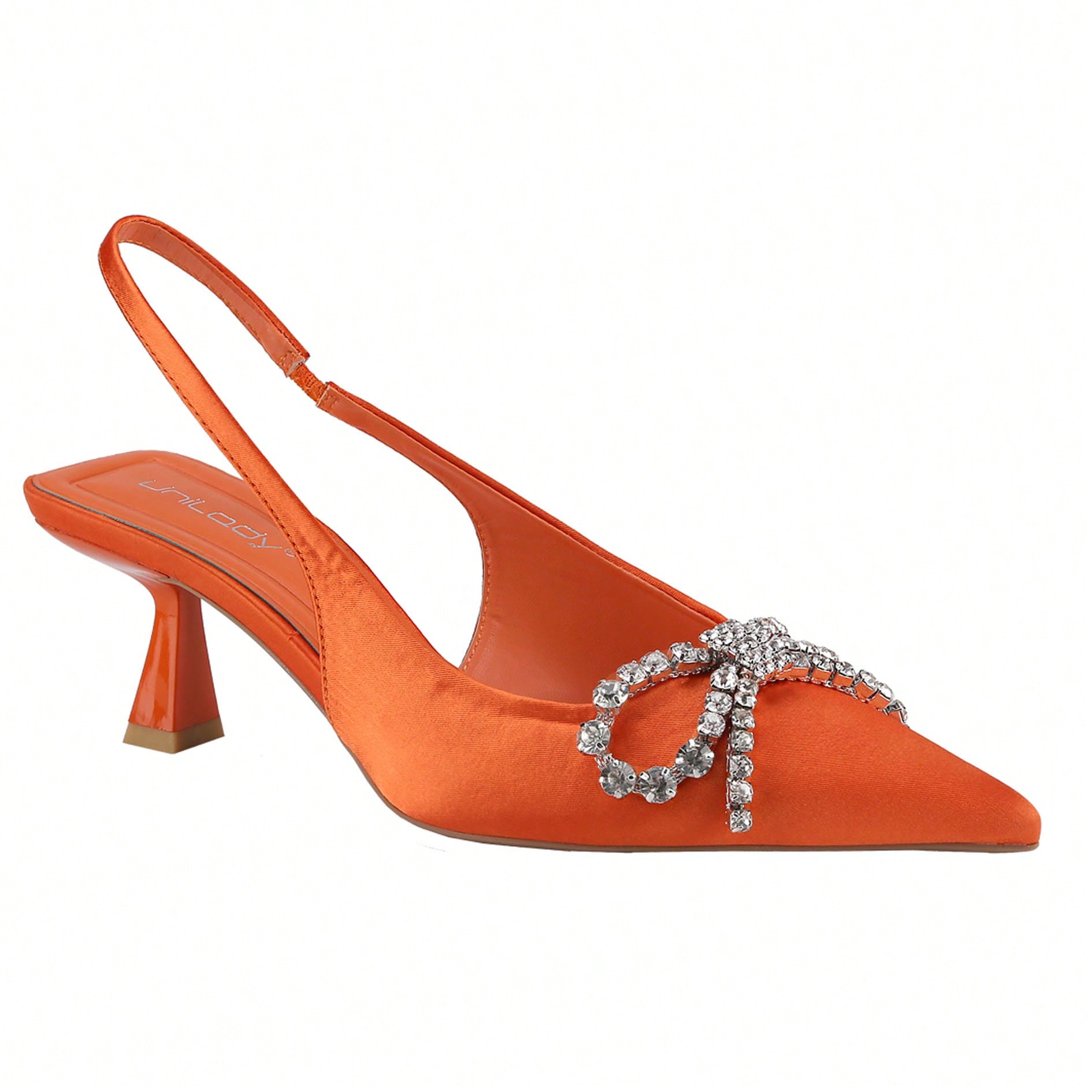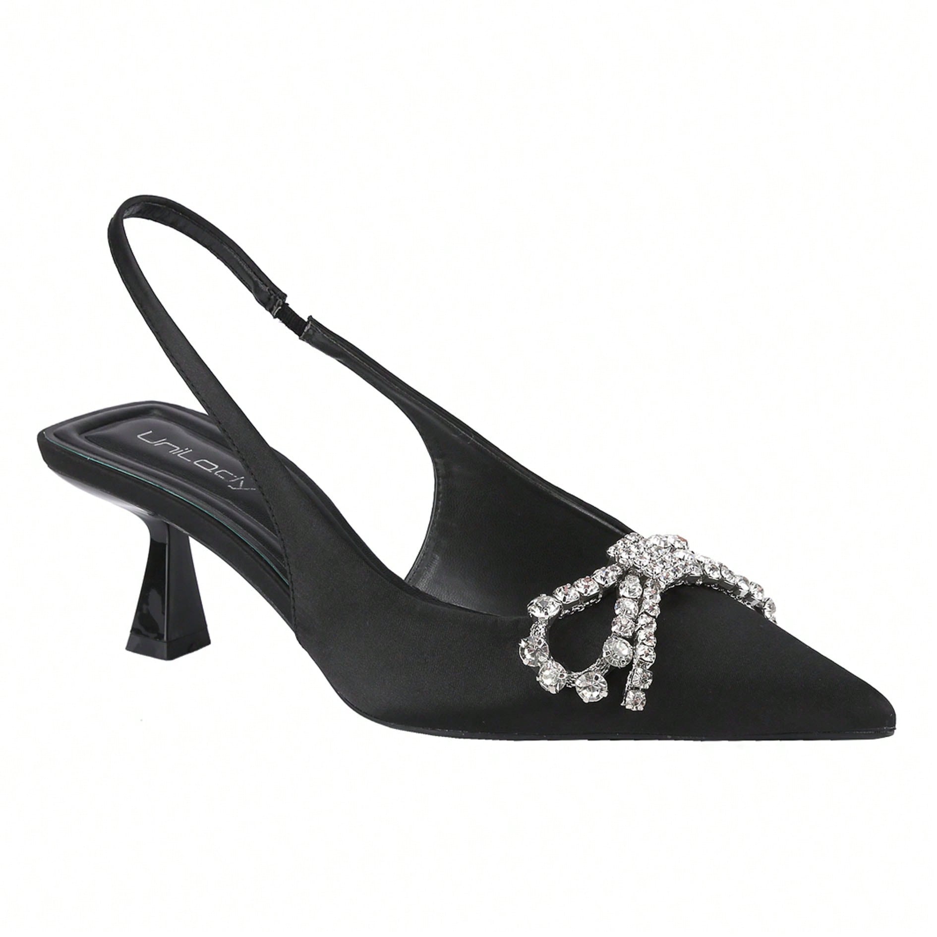 Women's Pointed Toe Kitten Heel Mules, Singling Back Rhinestones Bowknot Pumps