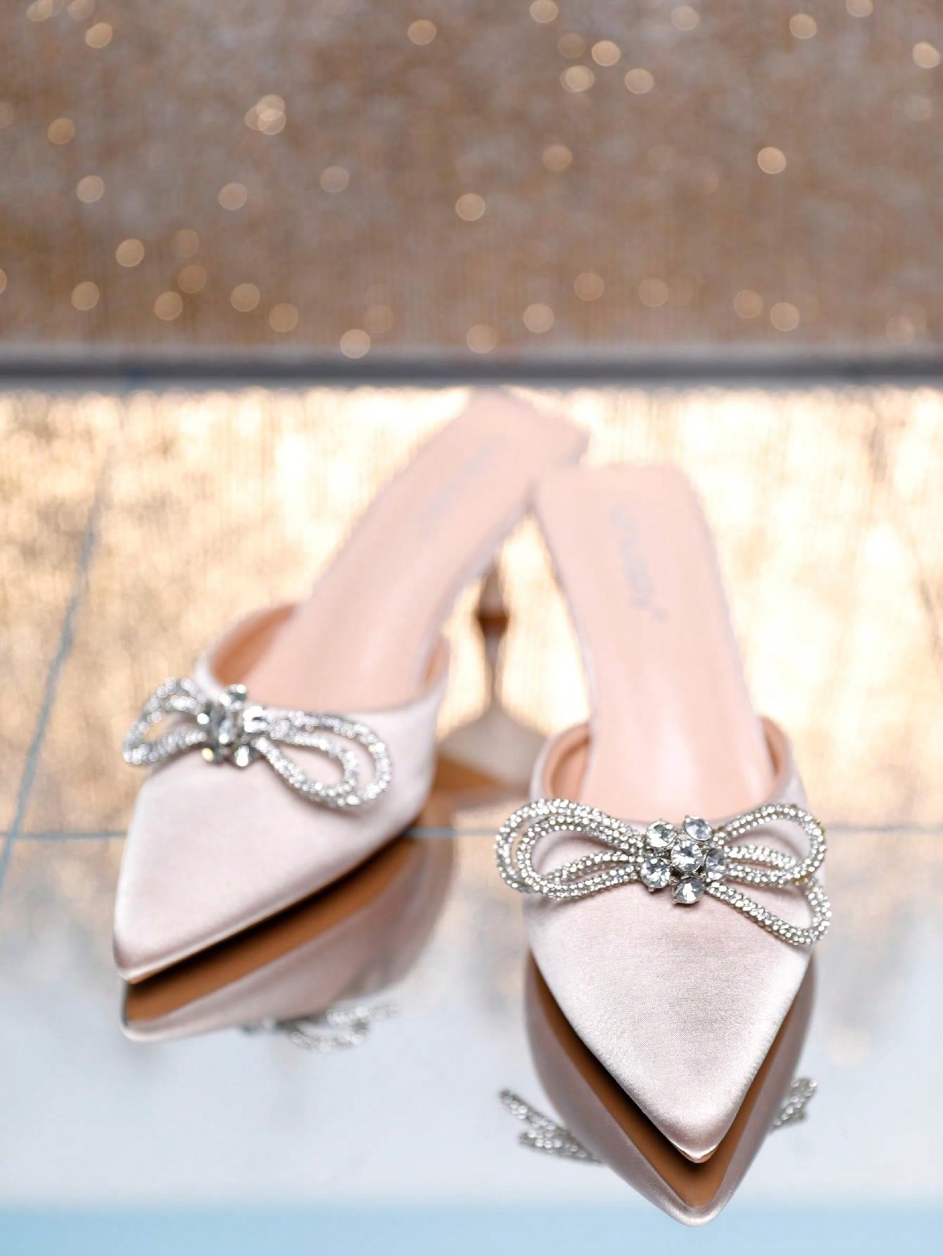 Women's Pointed Toe Kitten Heel Mules Slip-on Backless Rhinestones Buckle Pumps Ladies Casual Dress Slides Shoes