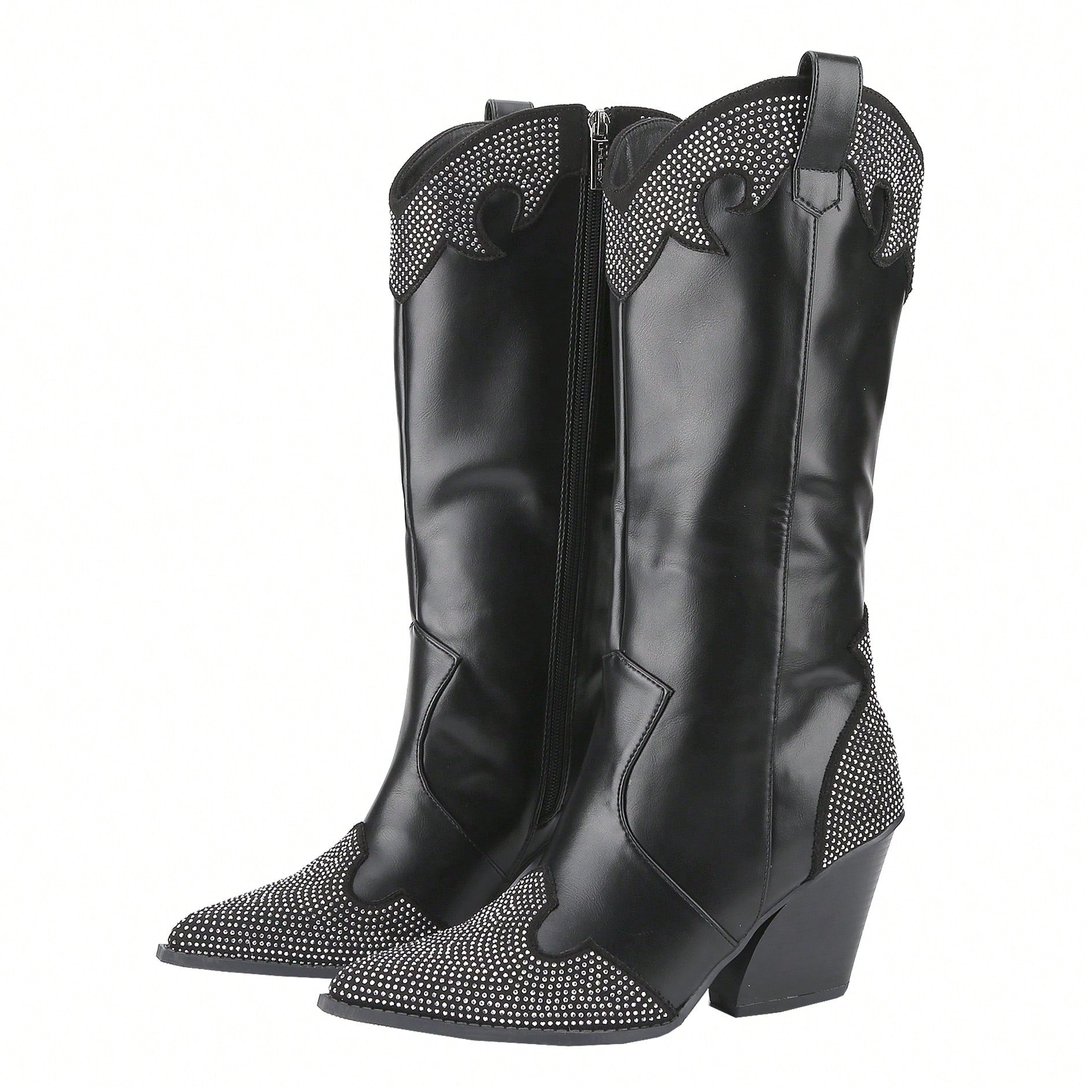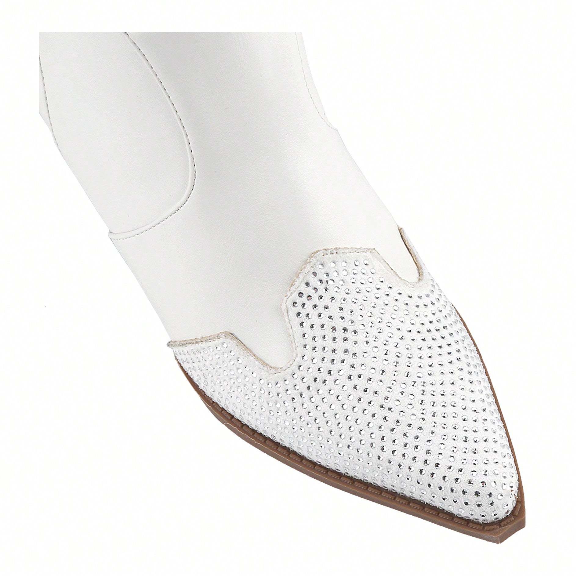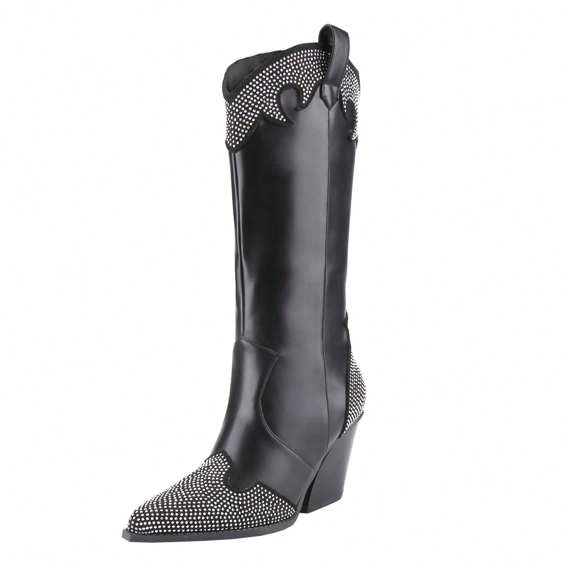 Women's Rhinestone Boots Western Pointed Toe Fashion Cowgirl Boots 5cm Chunky