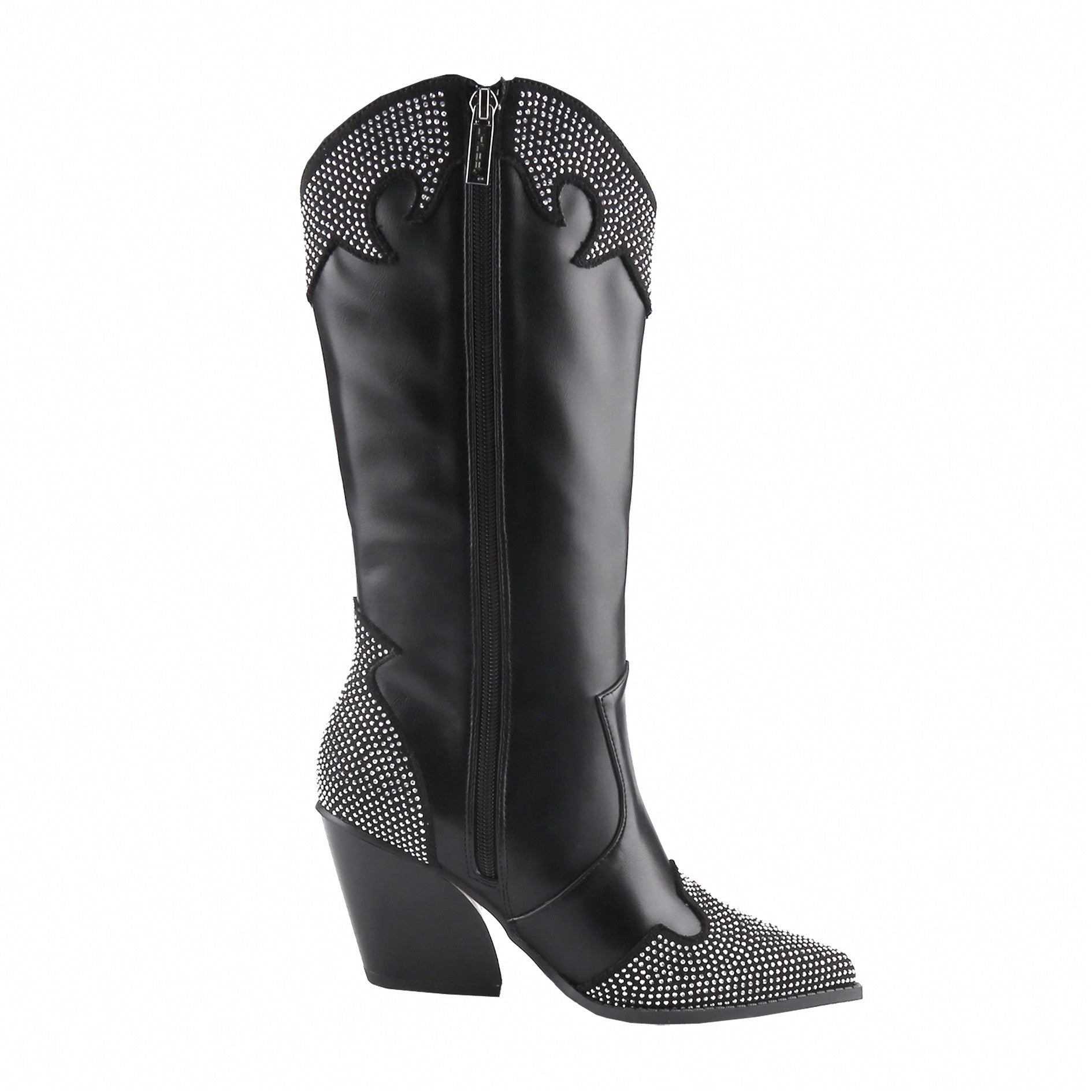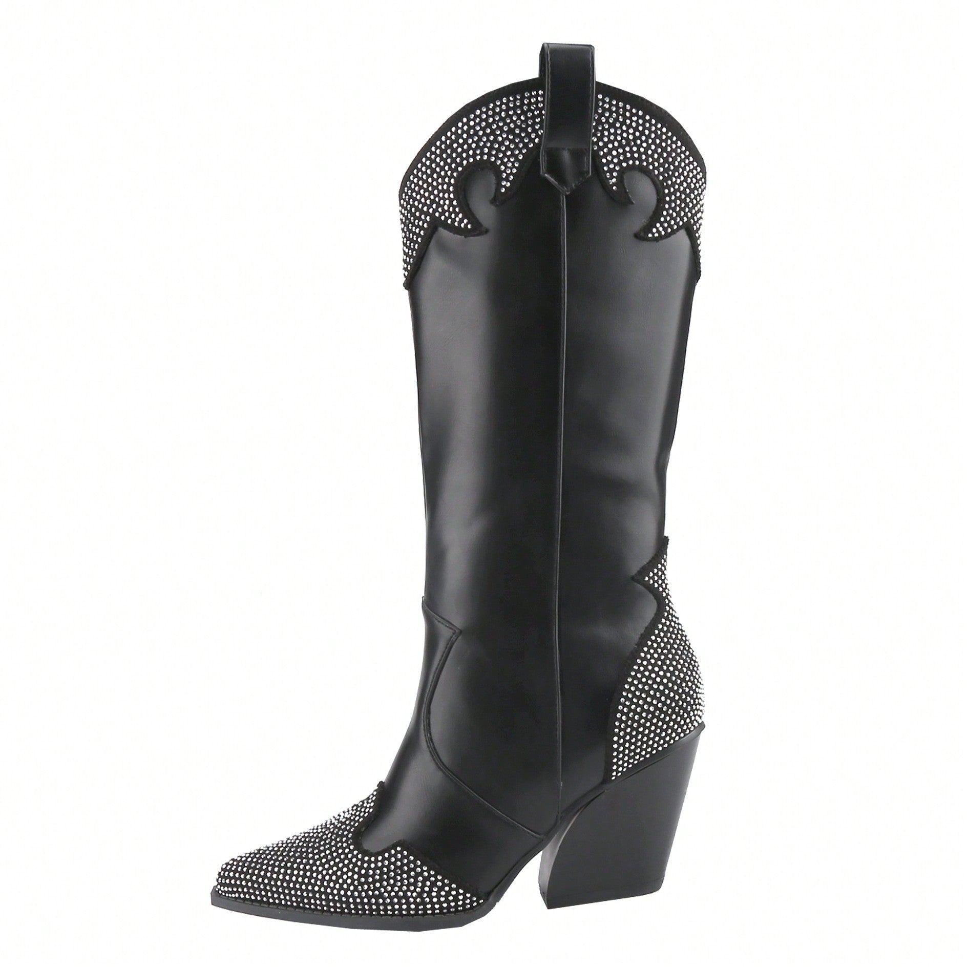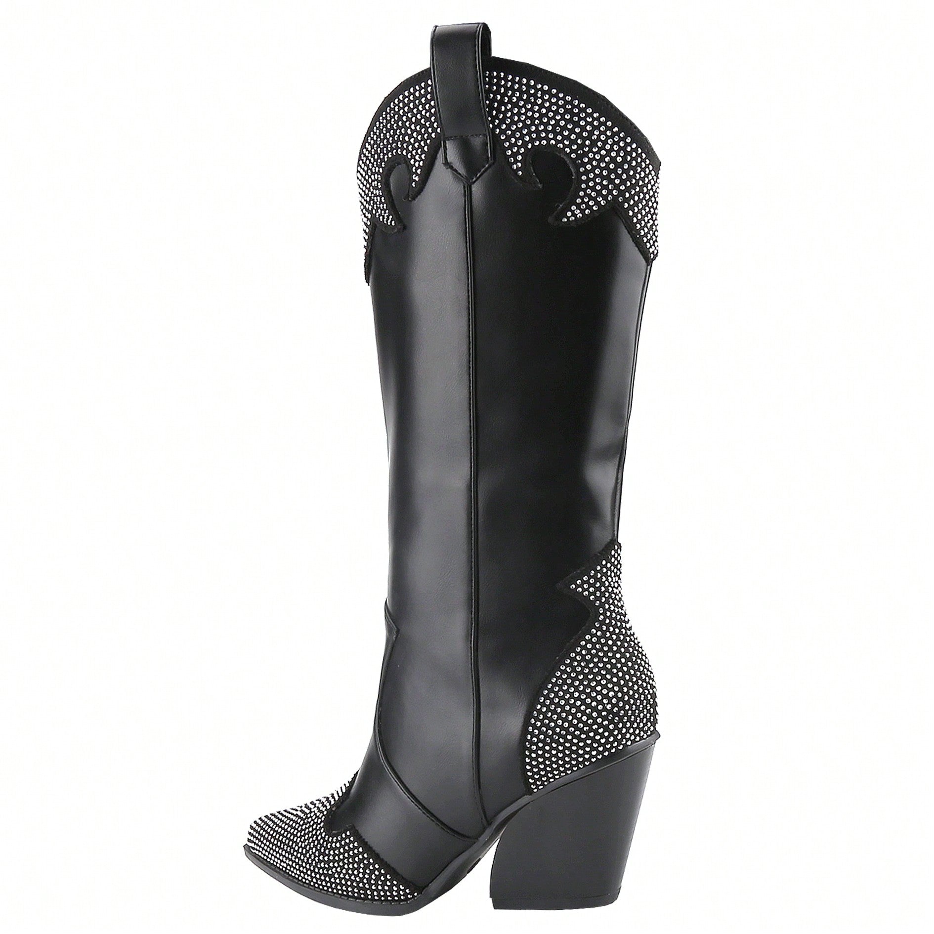 Women's Rhinestone Boots Western Pointed Toe Fashion Cowgirl Boots 5cm Chunky