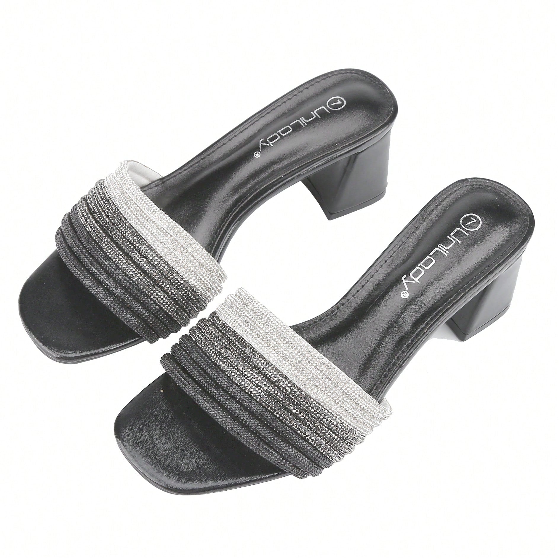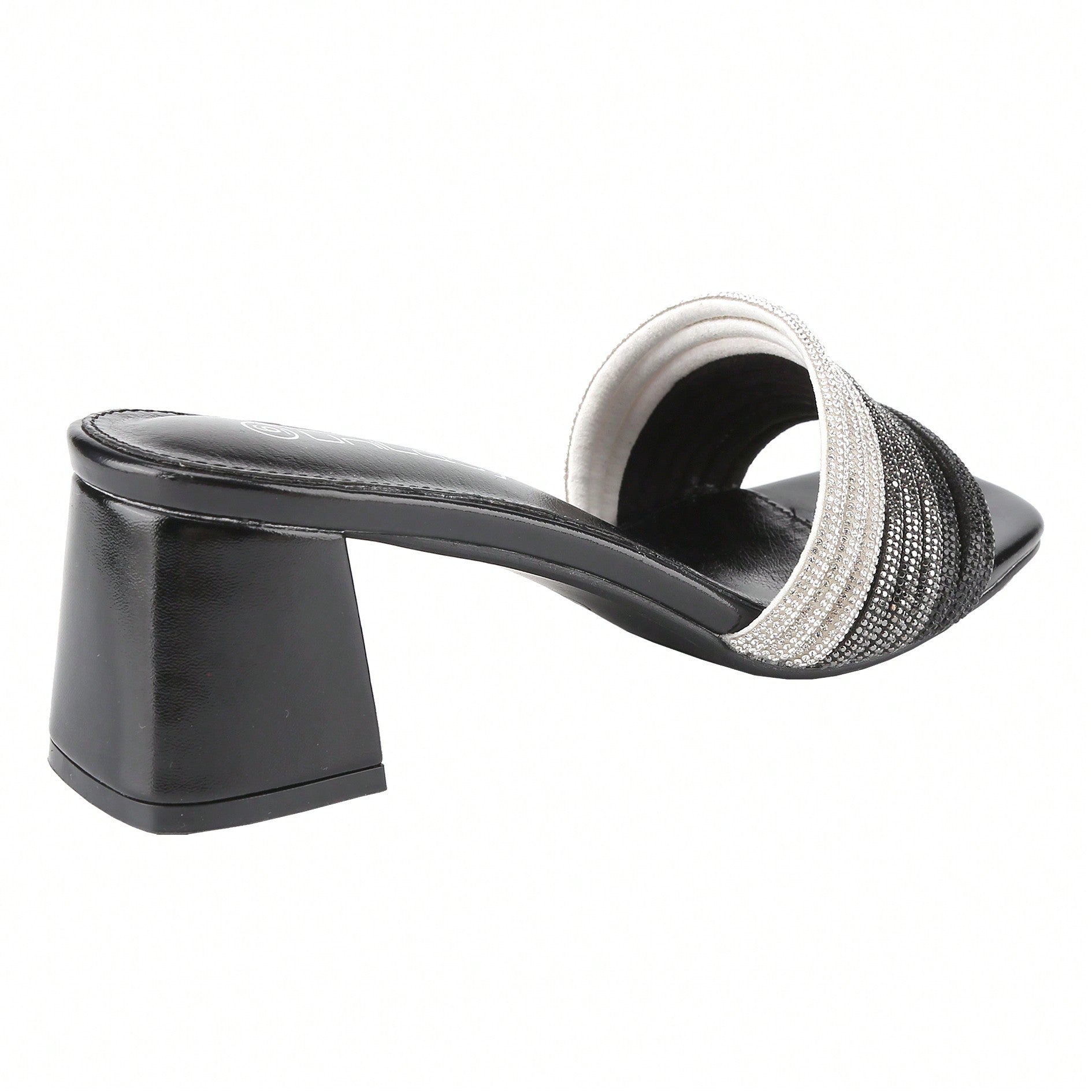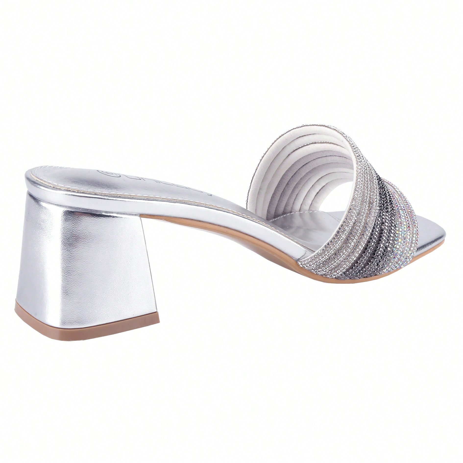 Women's Rhinestone Chunky Heels Sandals Square Open Toe Sandals Dress