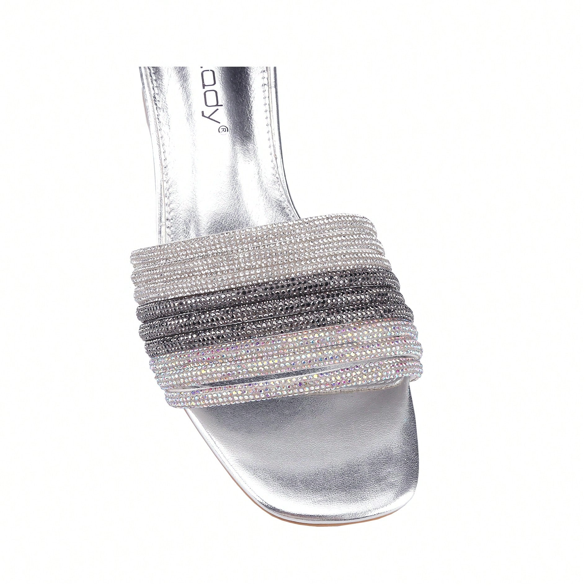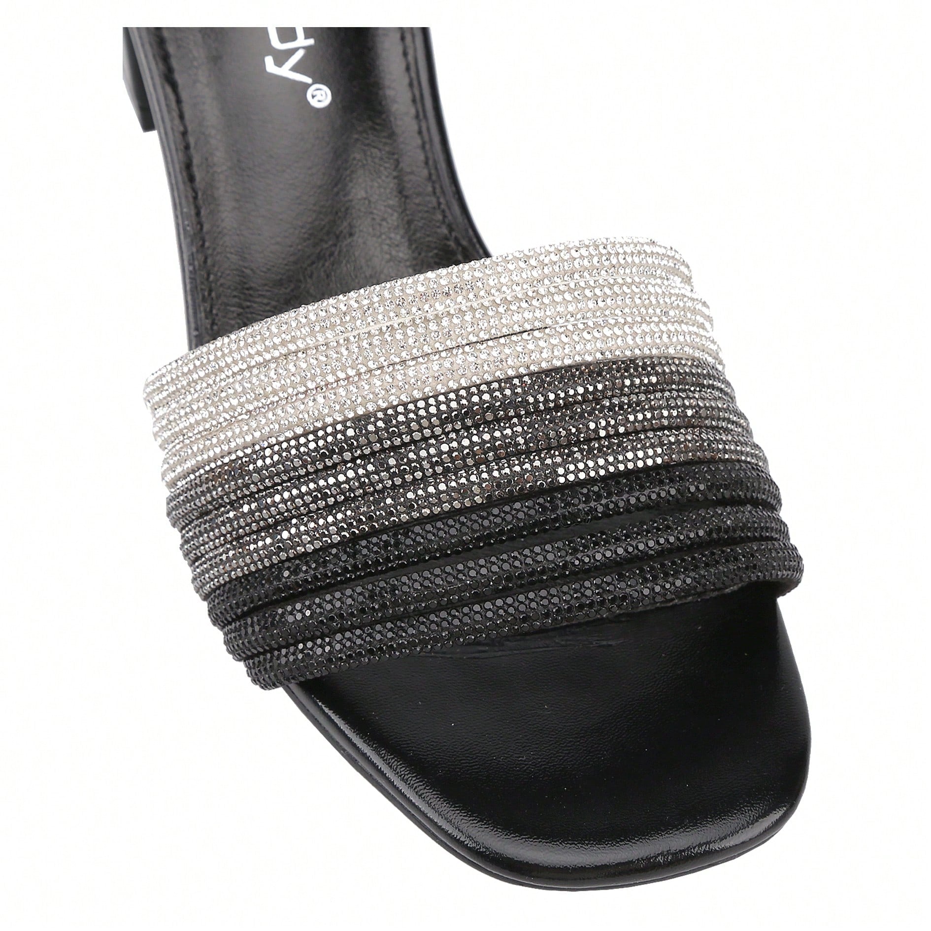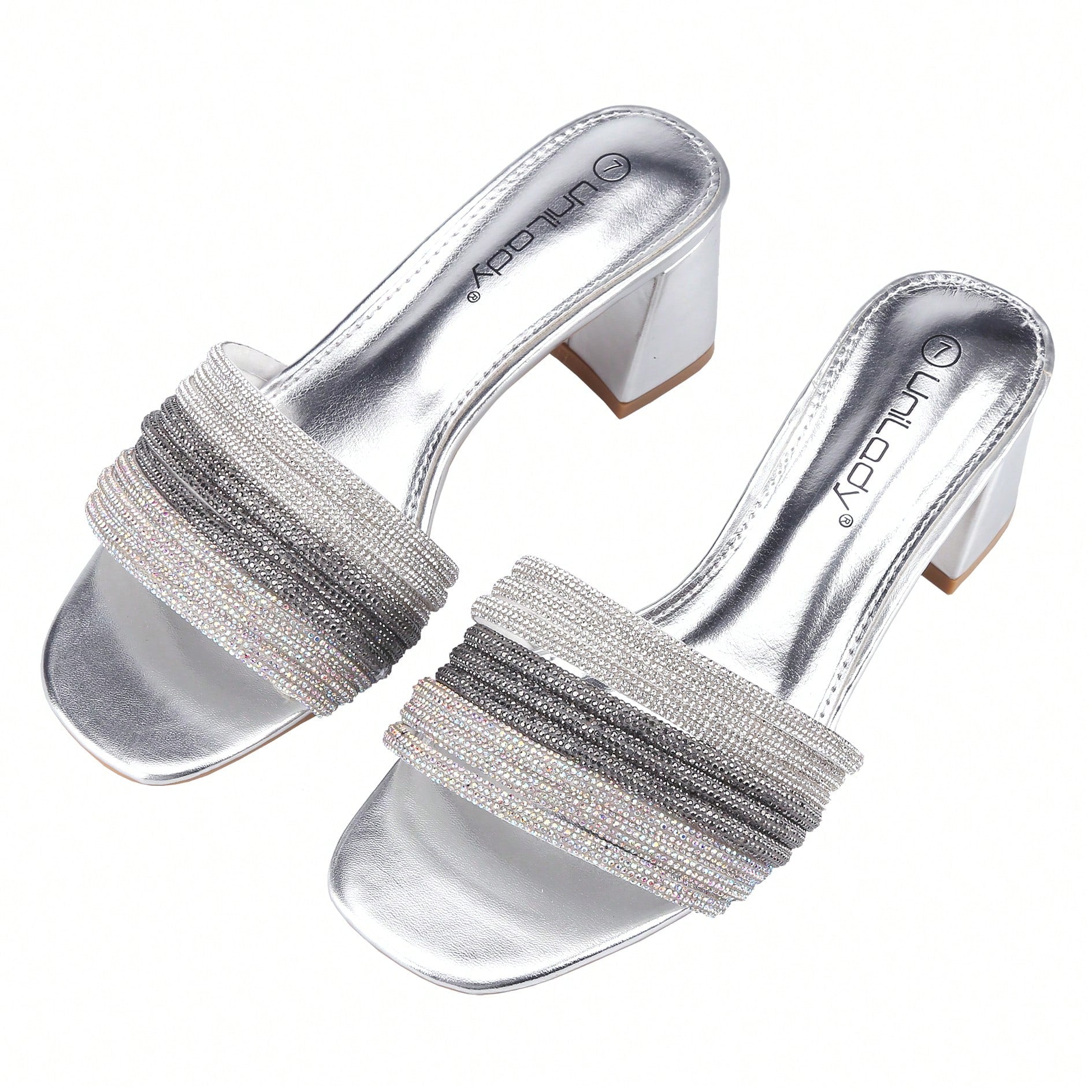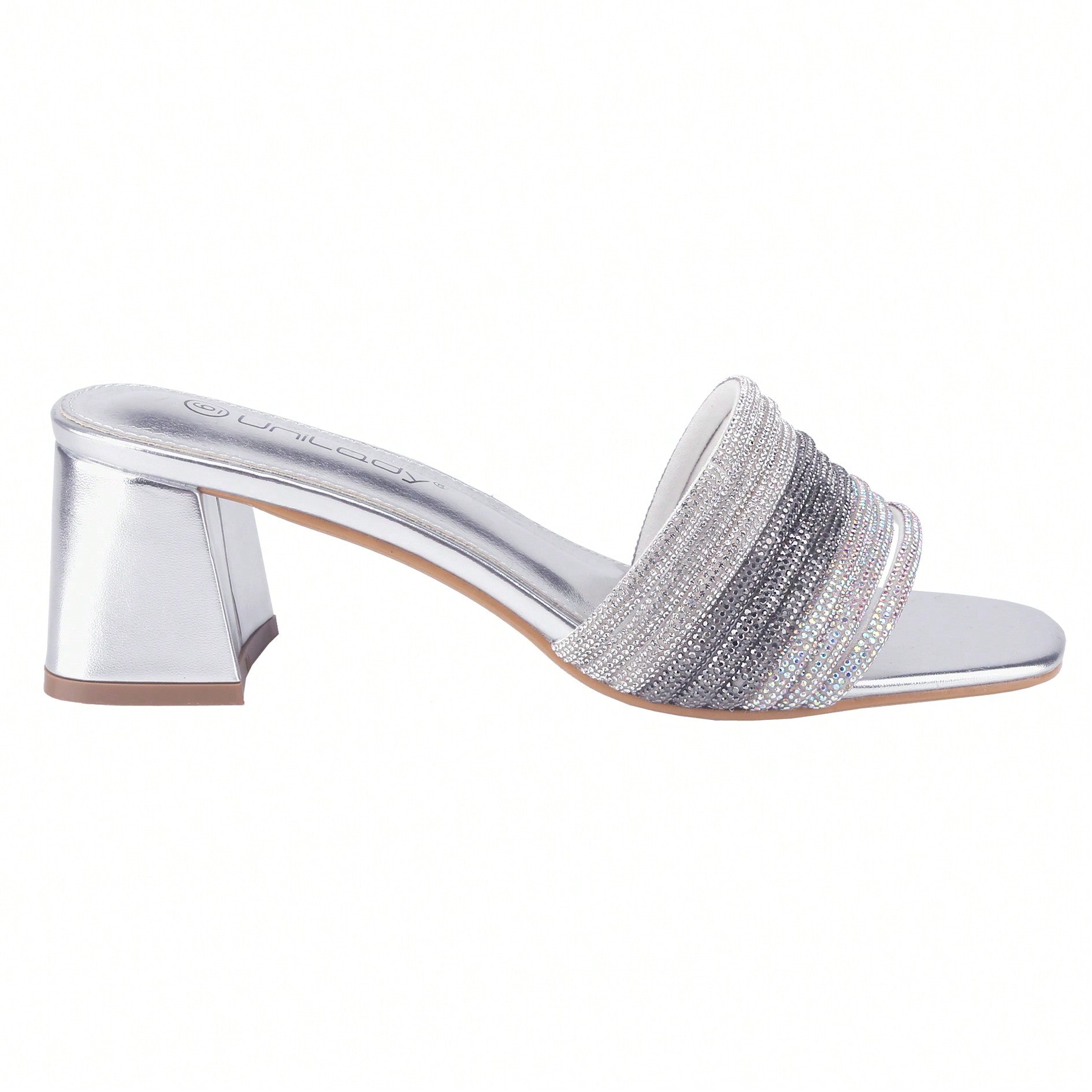 Women's Rhinestone Chunky Heels Sandals Square Open Toe Sandals Dress