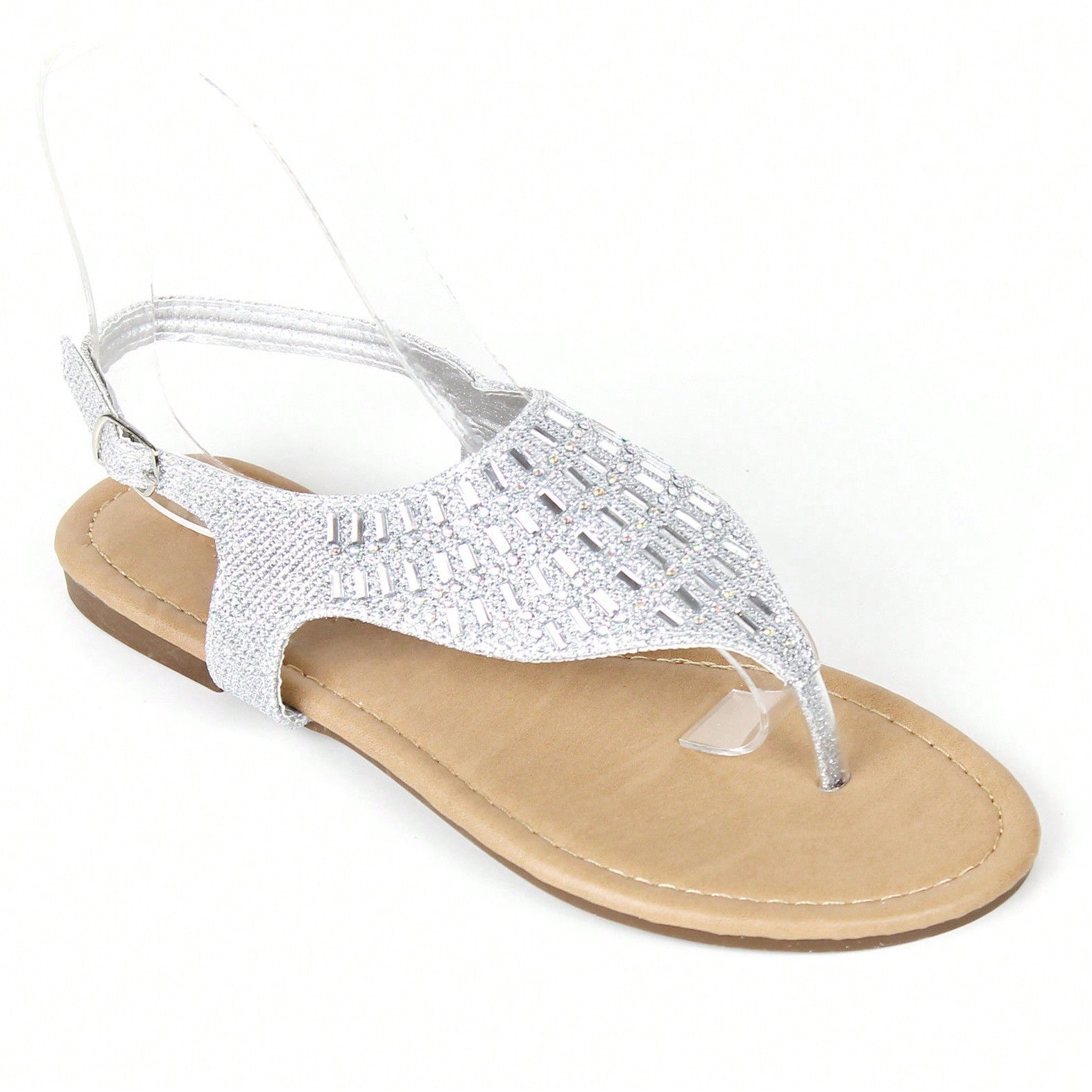 Women's Rhinestone Decor Ankle Strap Sandals Open Toe Flat Sandals Glitter Casual Summer Flat Sandals