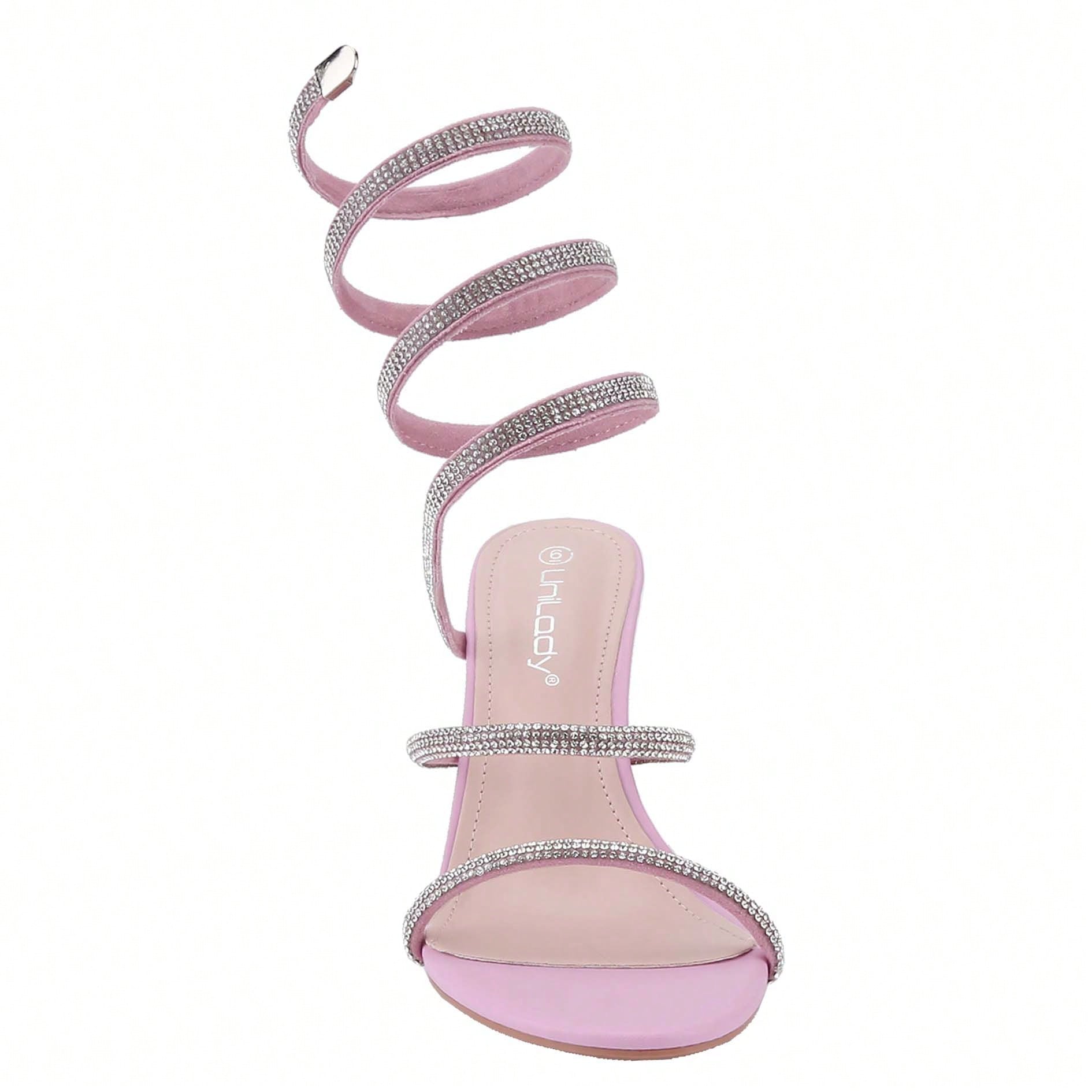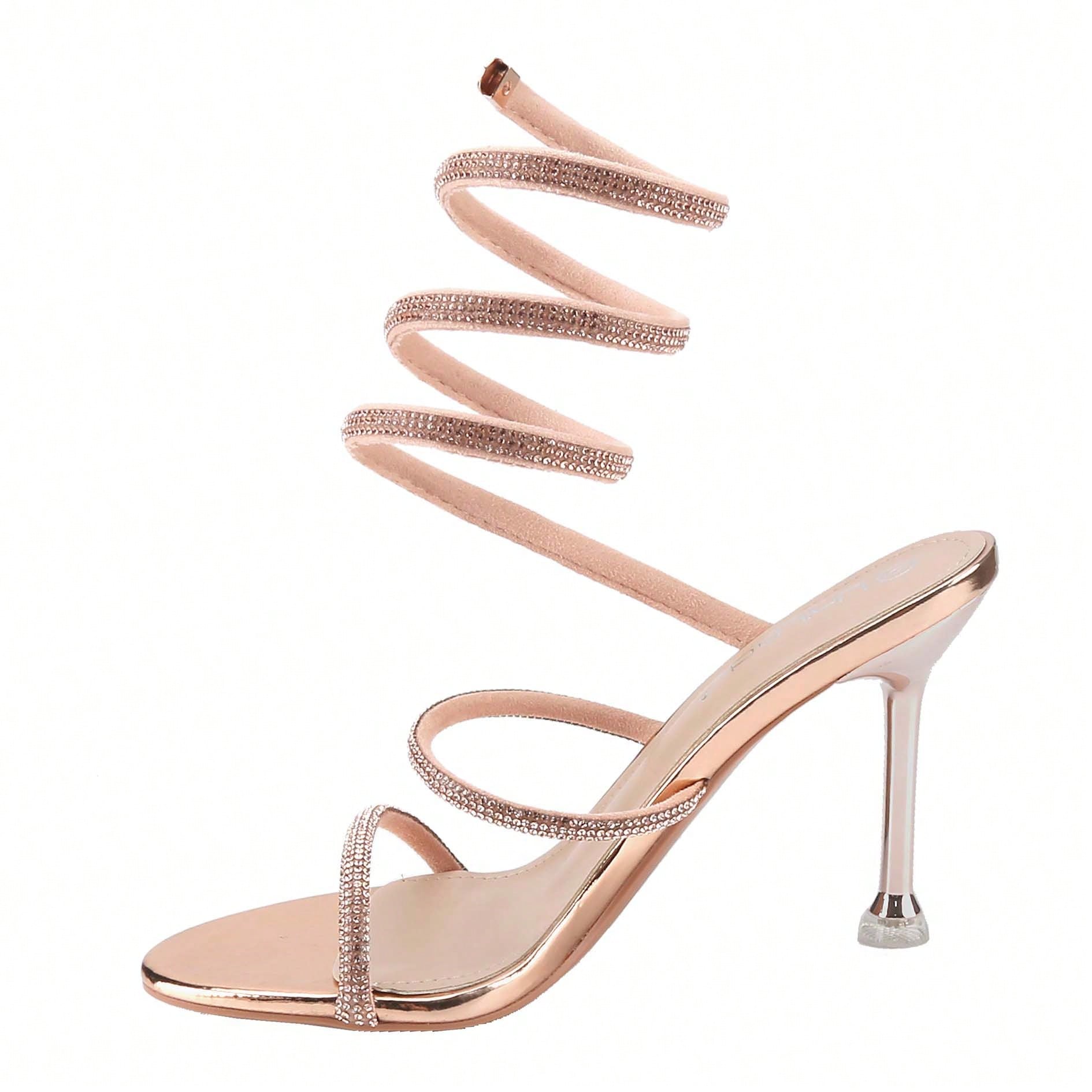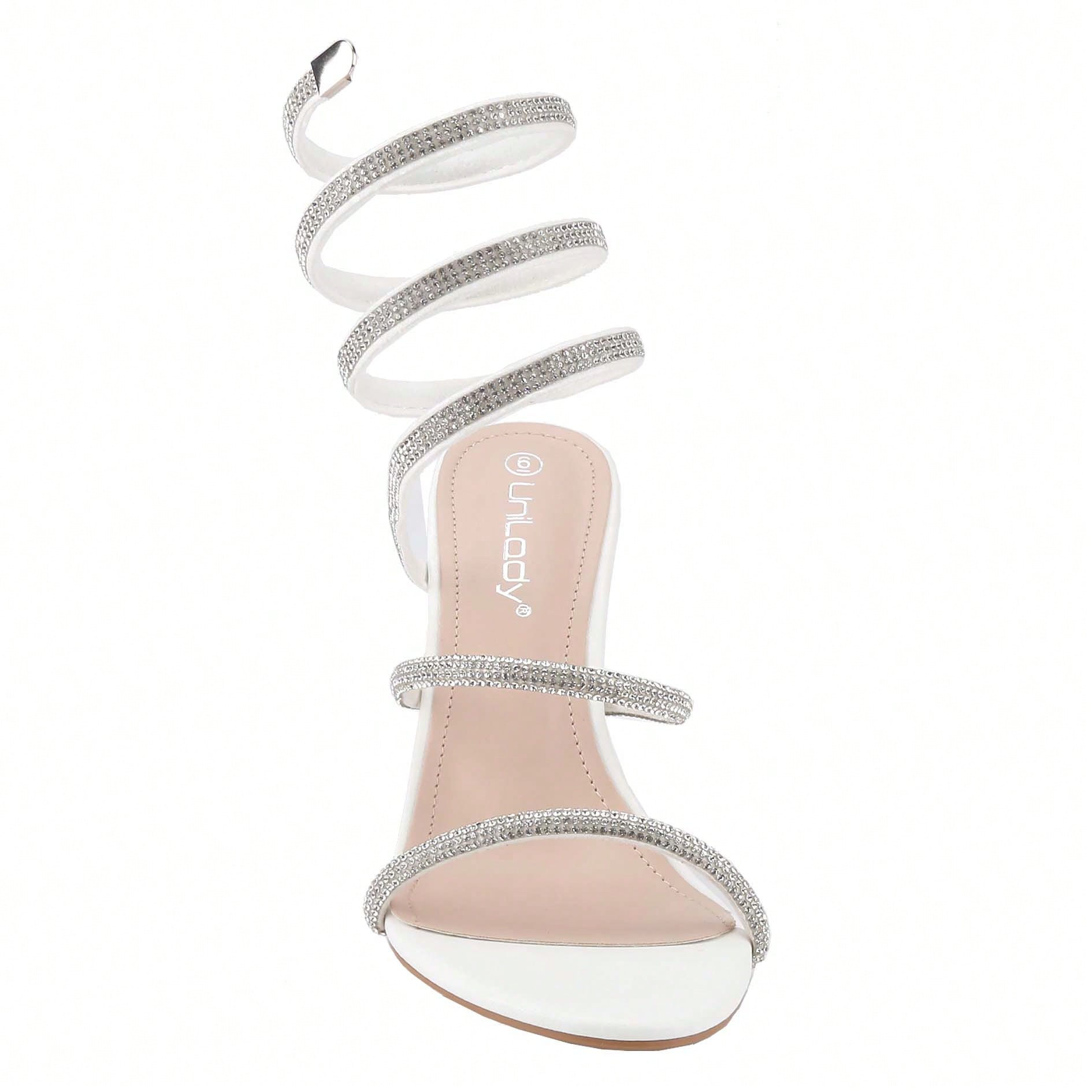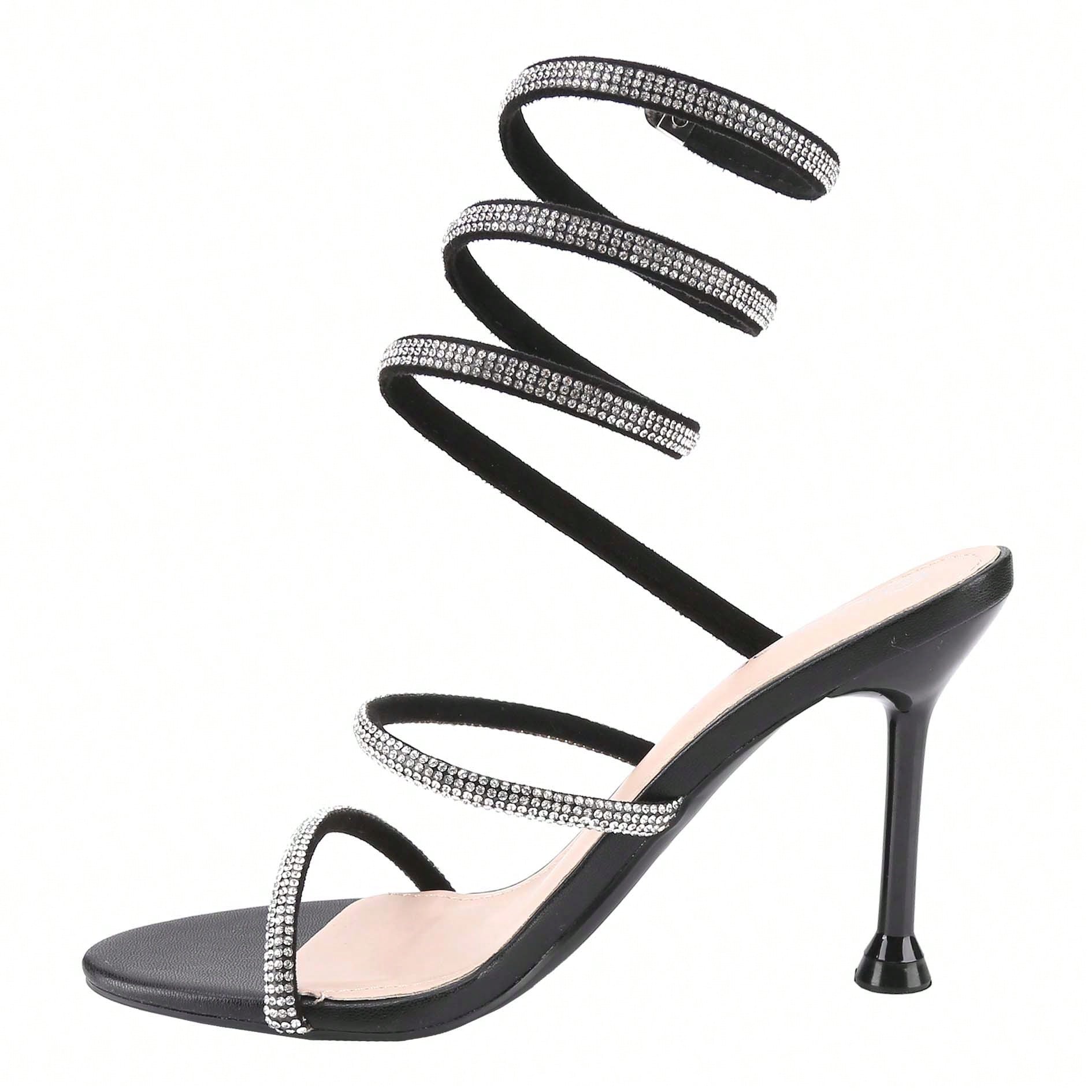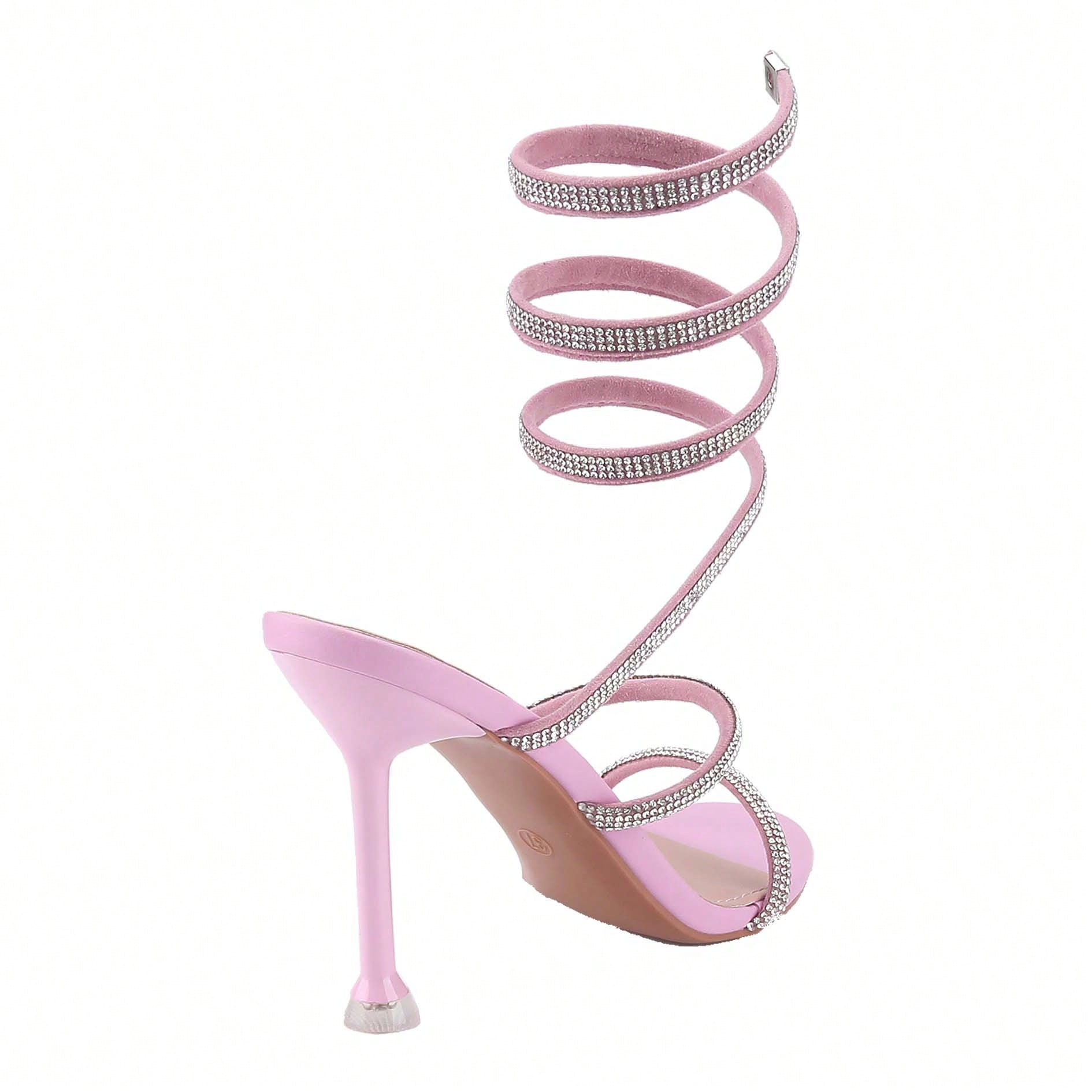Women's Rhinestone Spiral Ankle Wrap Strap High Heels Sandals