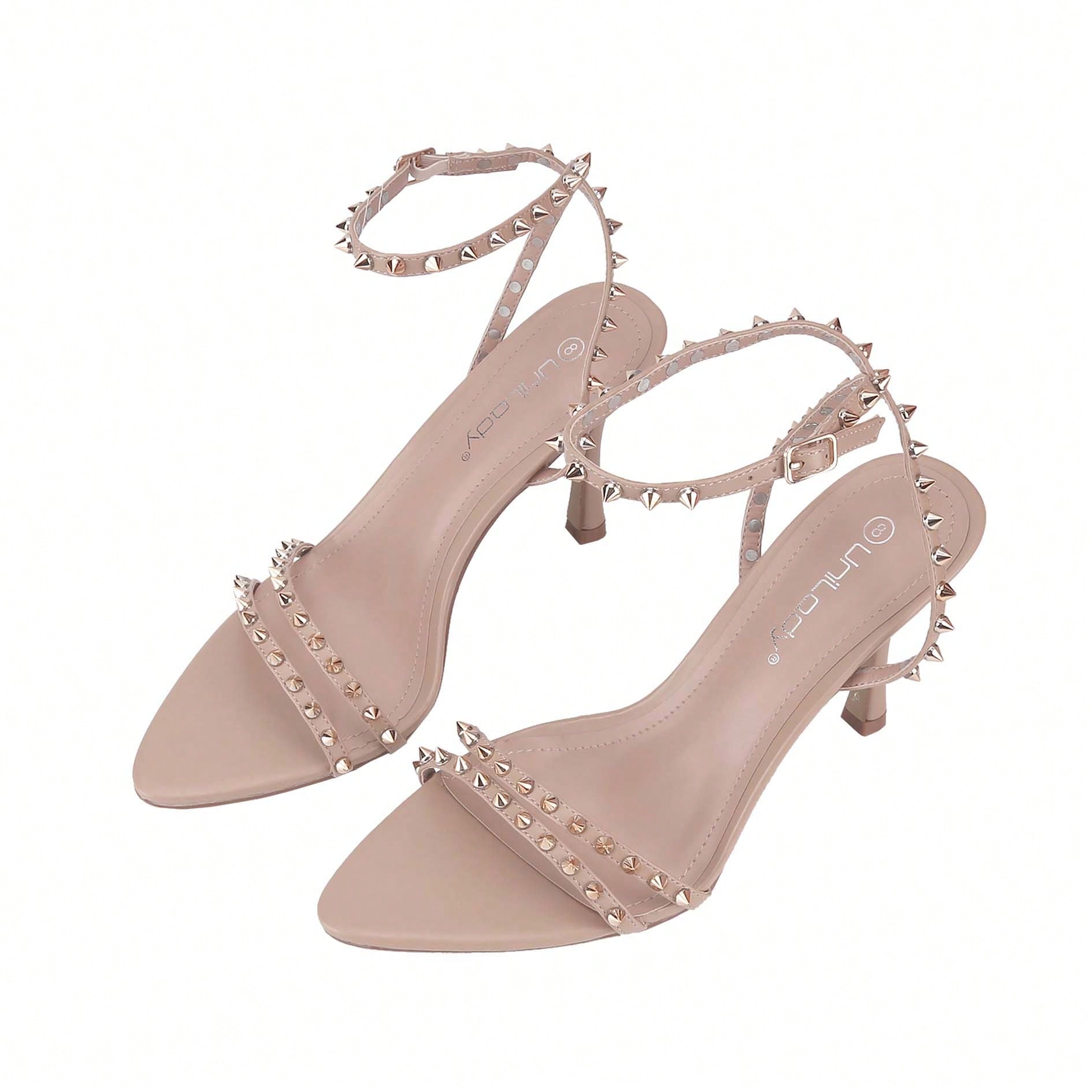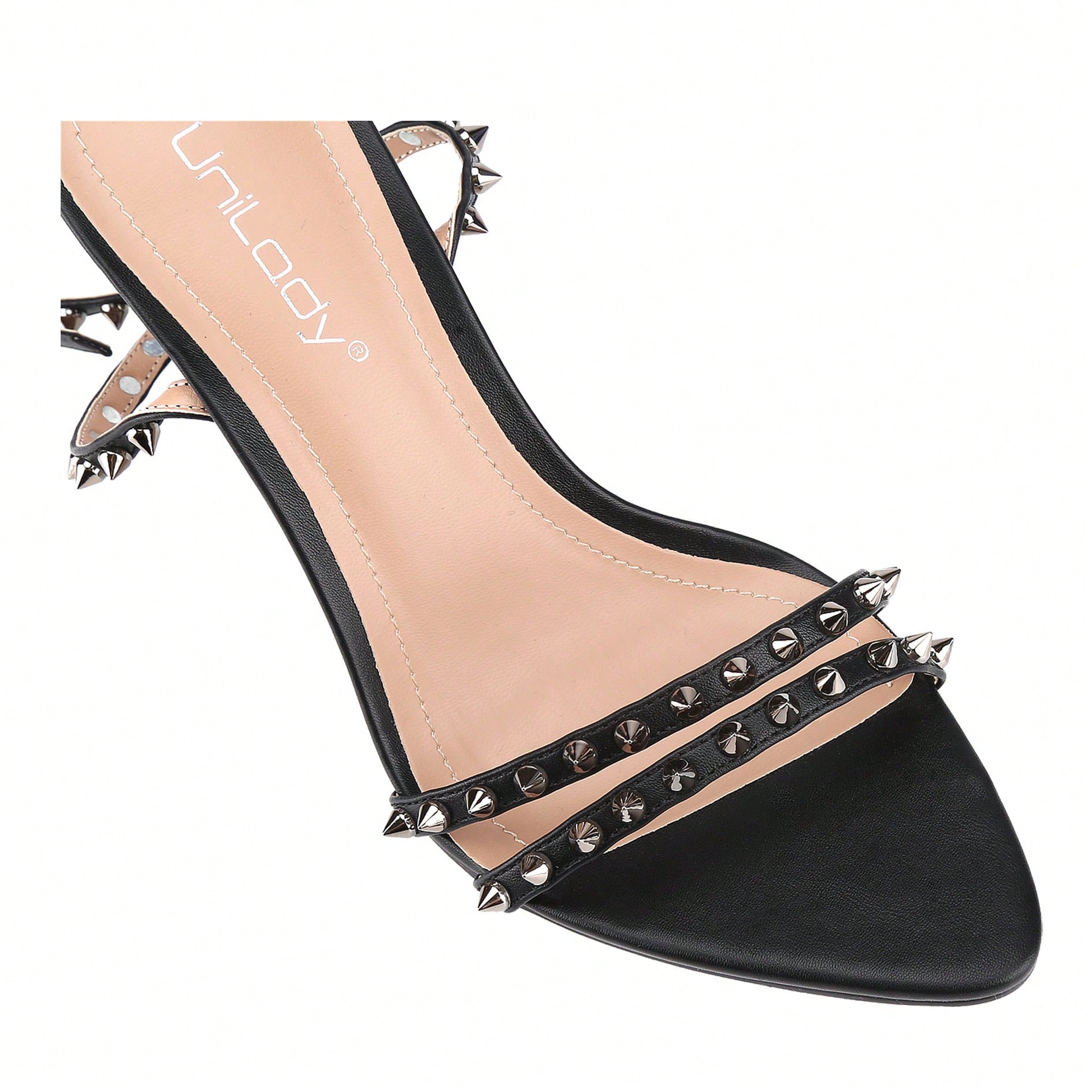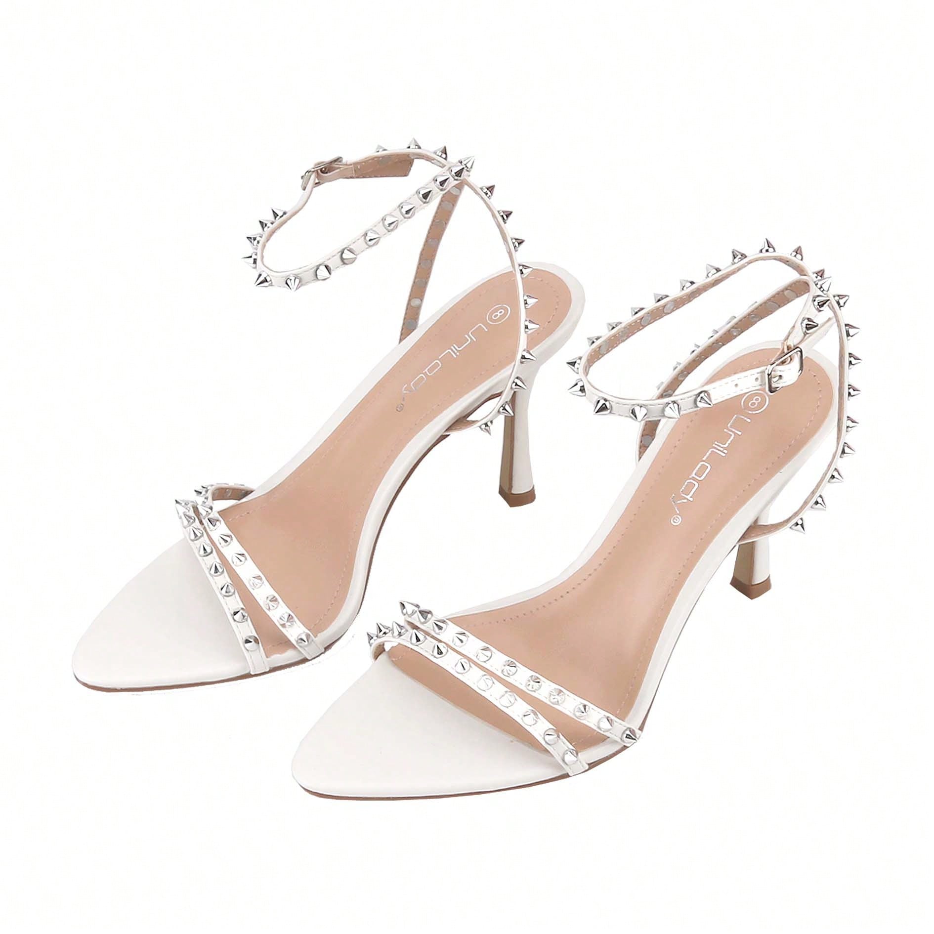 Women's Rivet Studded Heeled Sandals Open Toe Sexy Stiletto Ankle Strap Dressy High Heels
