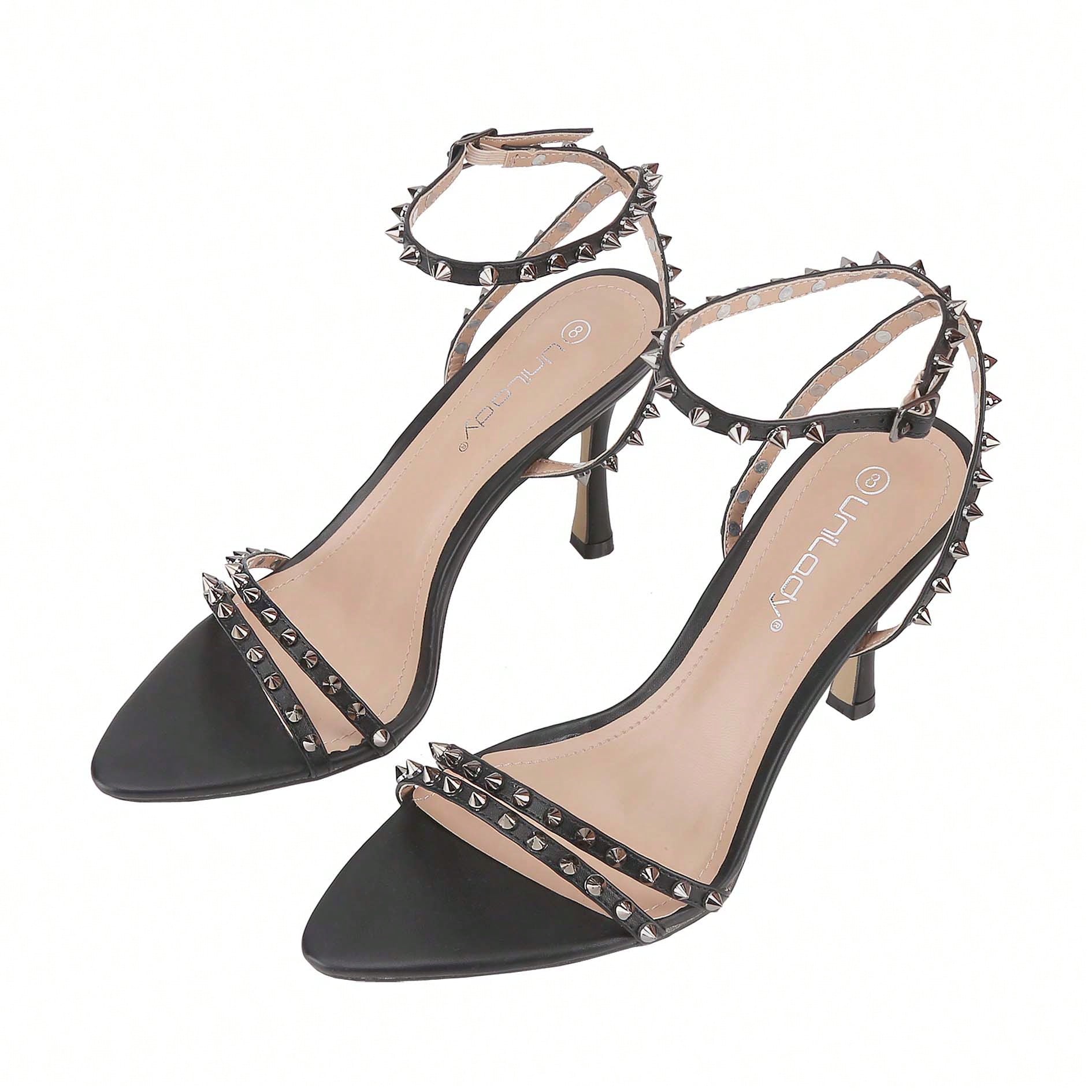 4. High heel sandals for women, rivet studded, open toe, slingback and stiletto heel