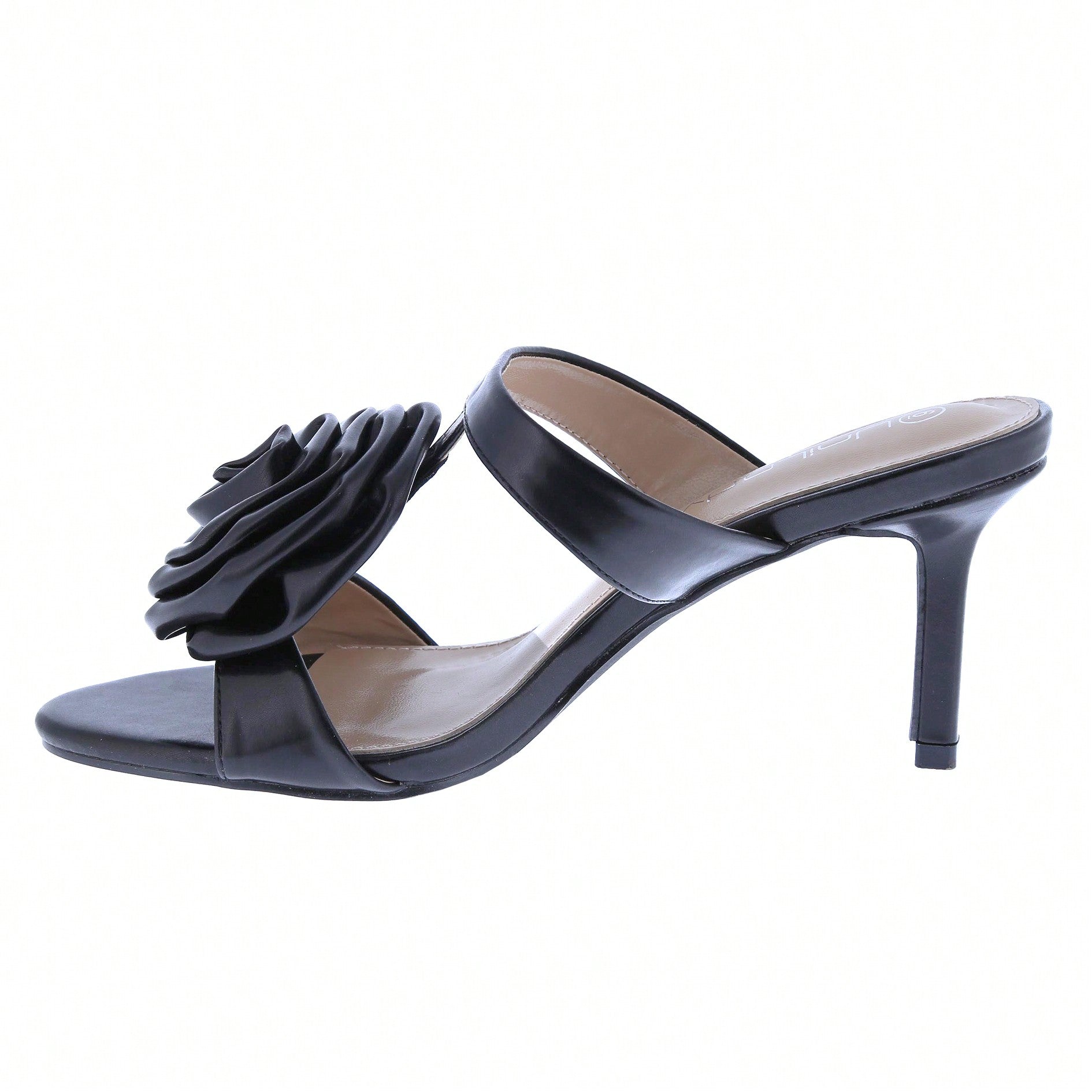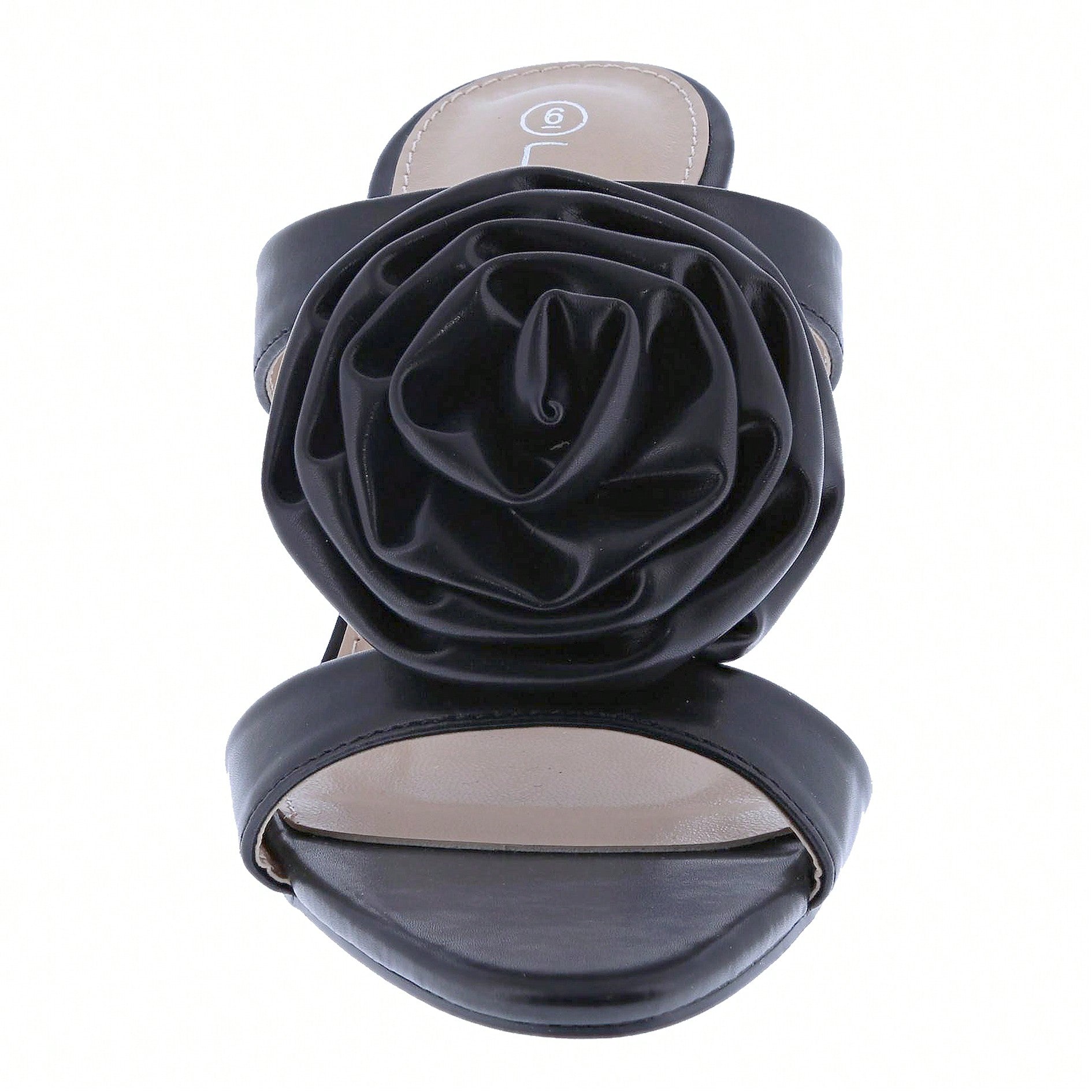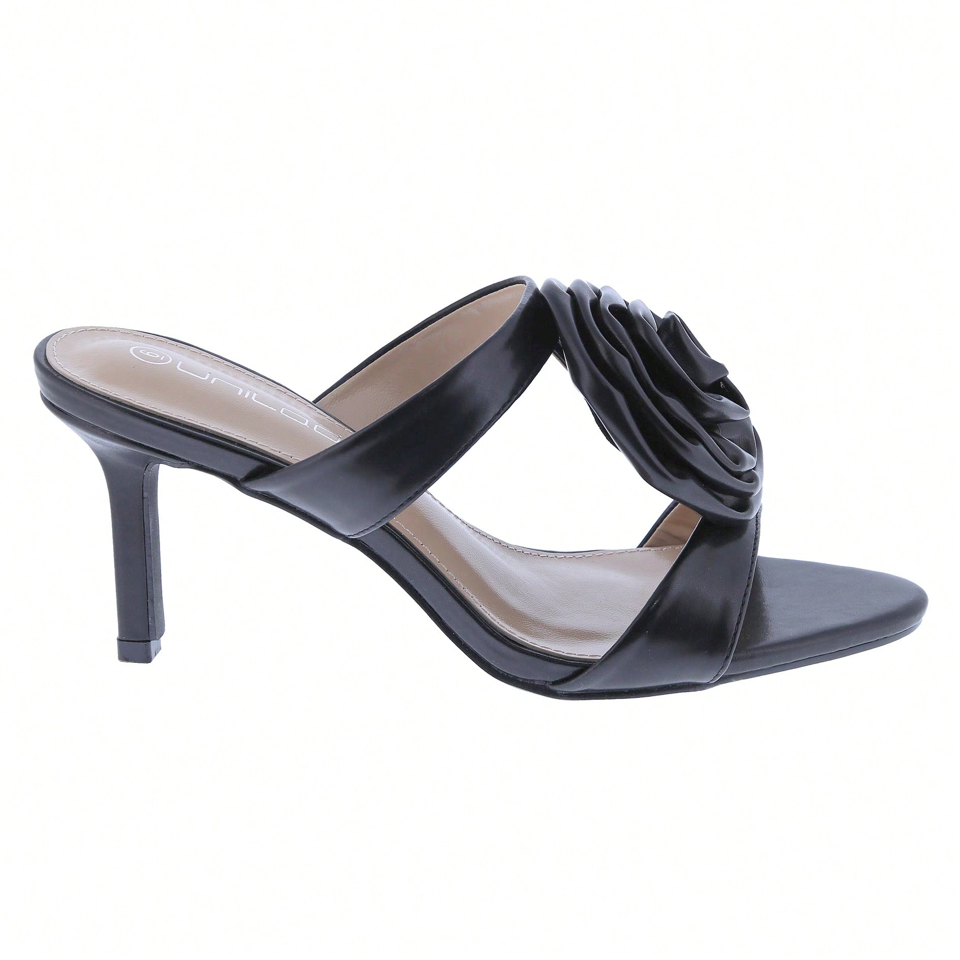 Women's Rose Flower Sexy Stiletto Mule Slip On Point Open Toe Sandals