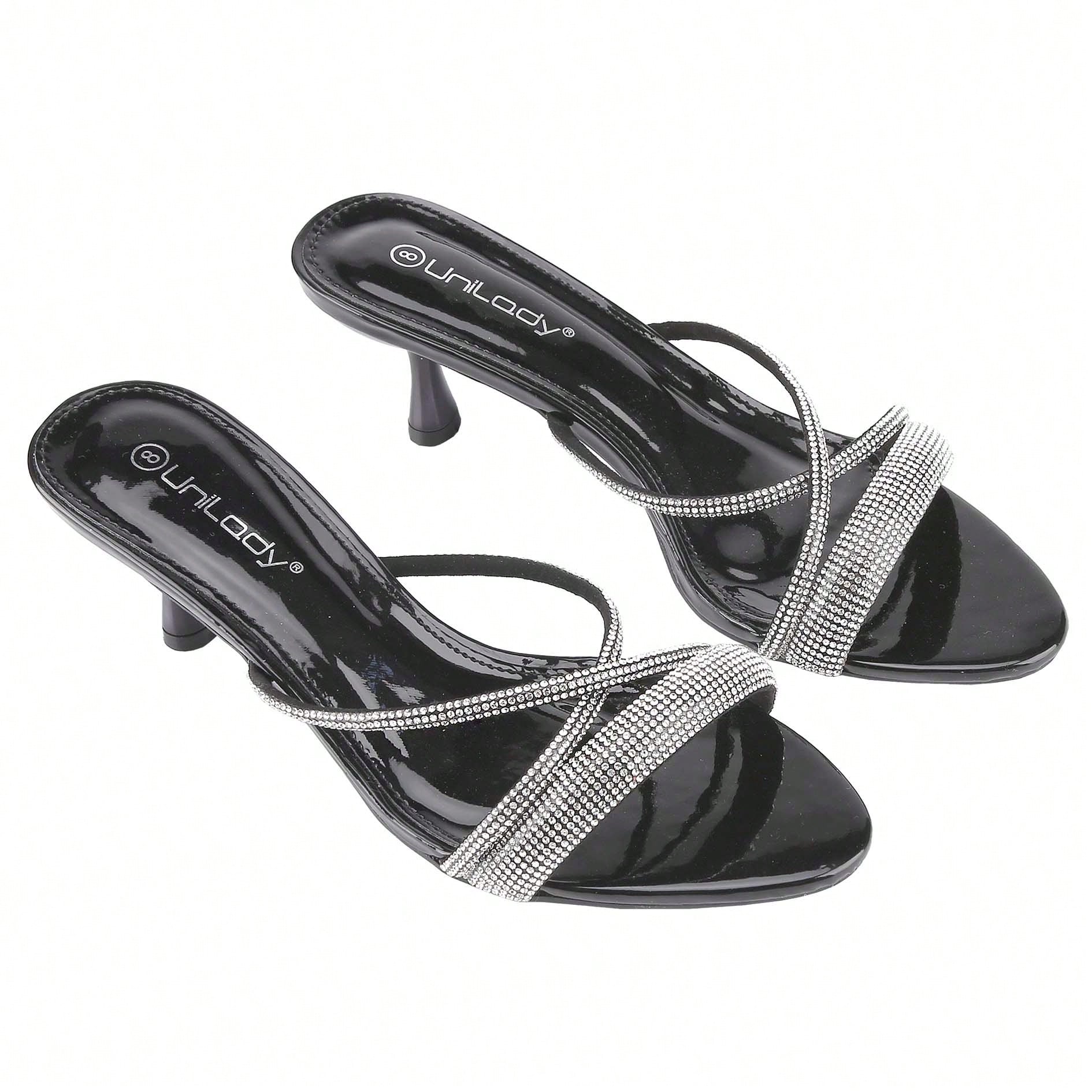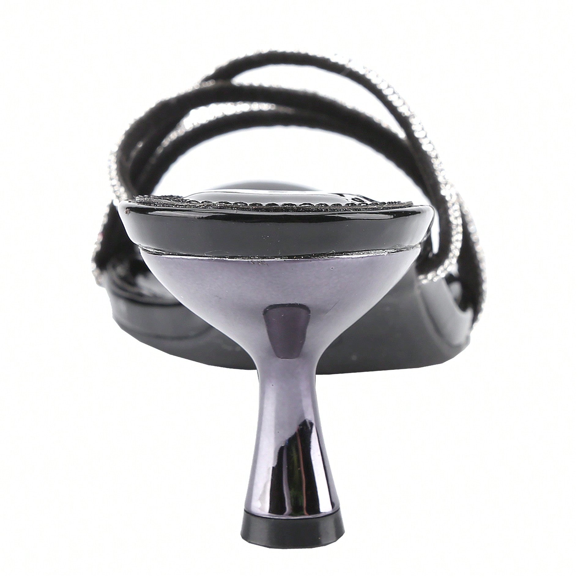 Women's Sandals Mid Heel Rhinestone Sandals Strappy Heels For Women