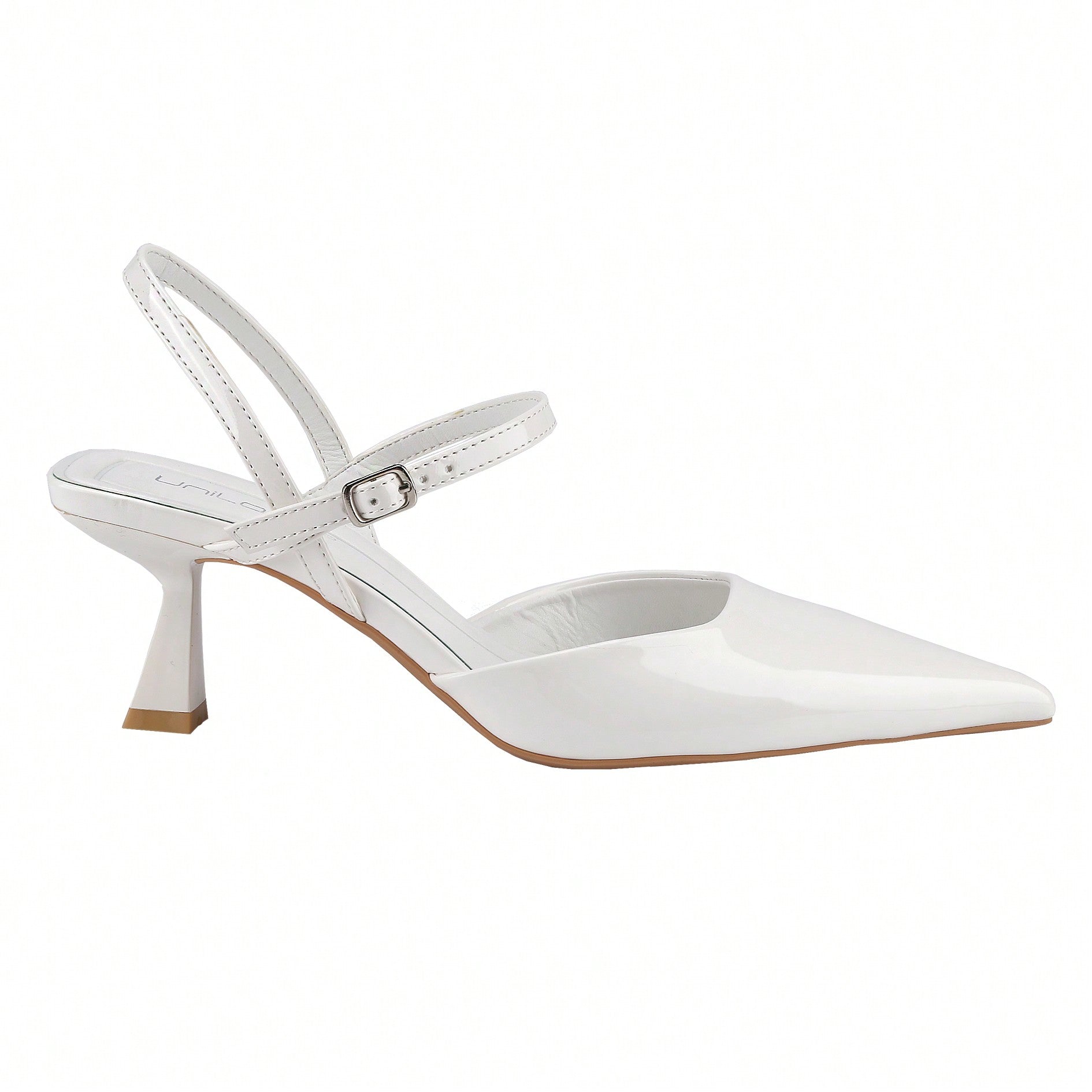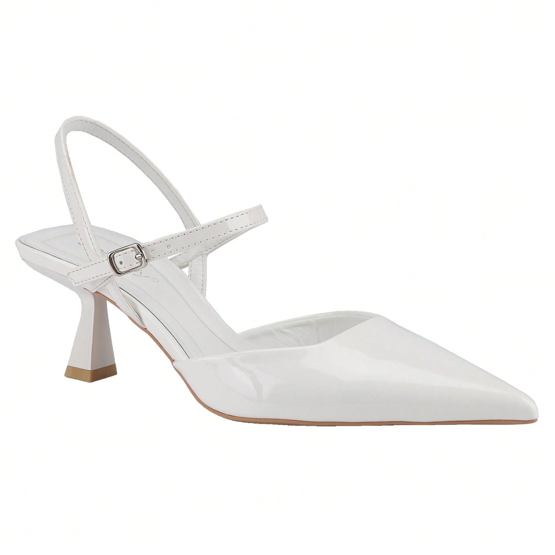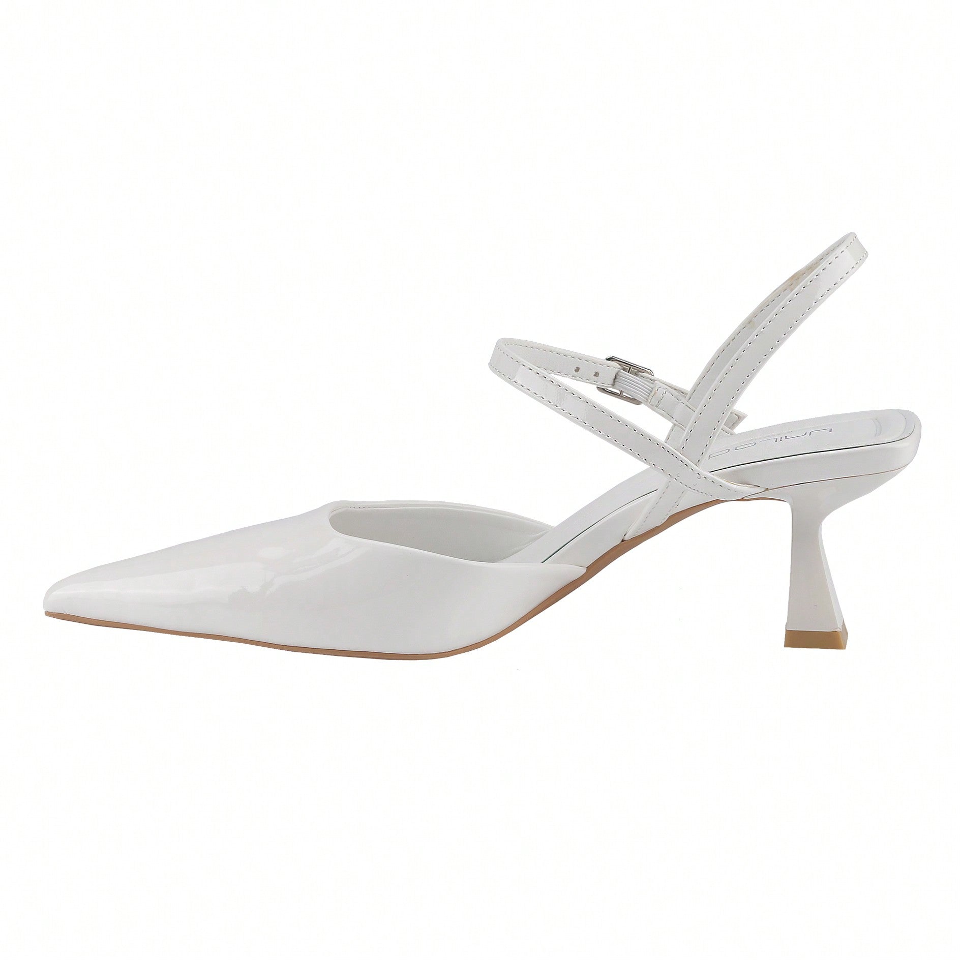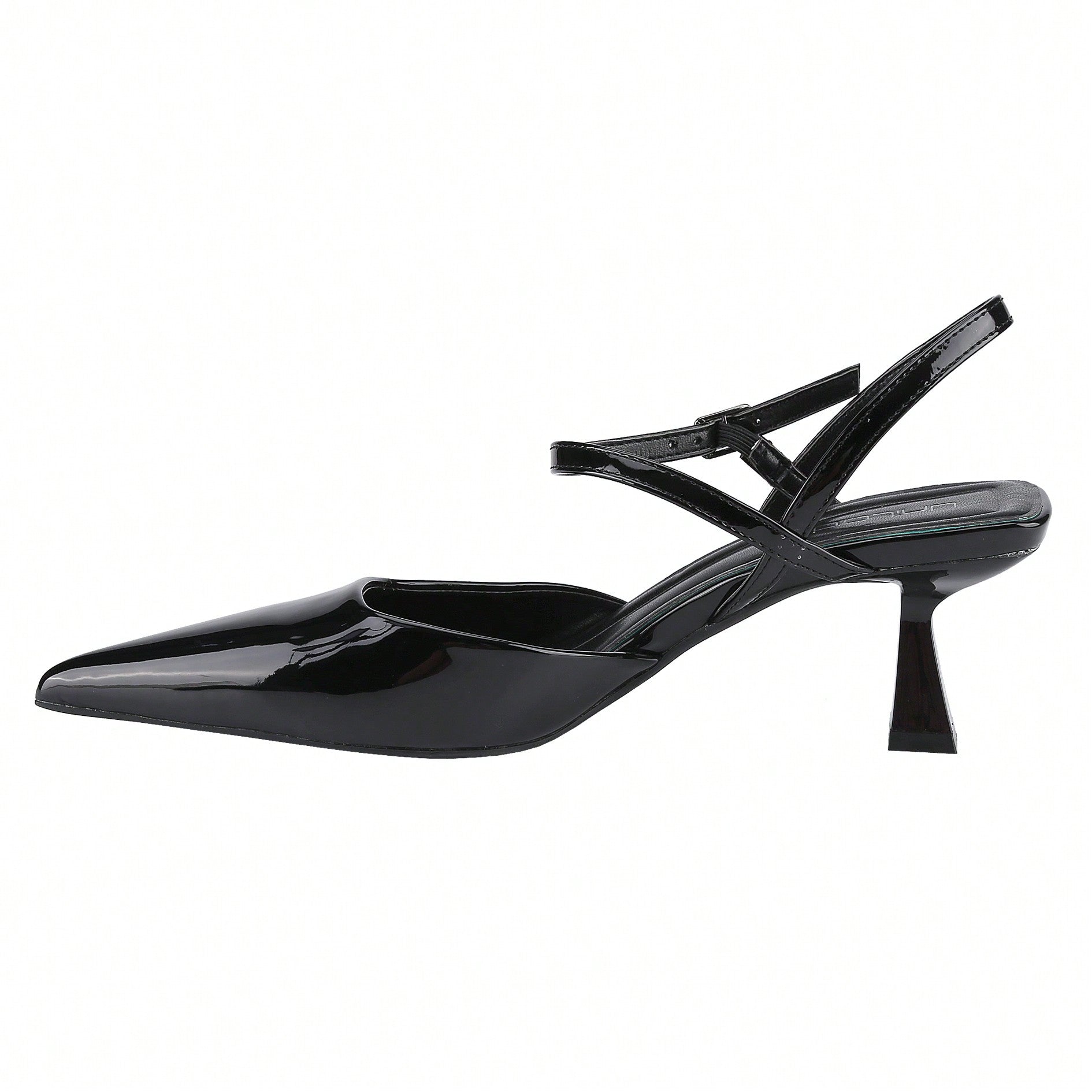 Women's Slingback Patent Kitten Heel Pointy Toe Ankle Strap Chunky Low Heel Pumps Shoes 1.5 Inch