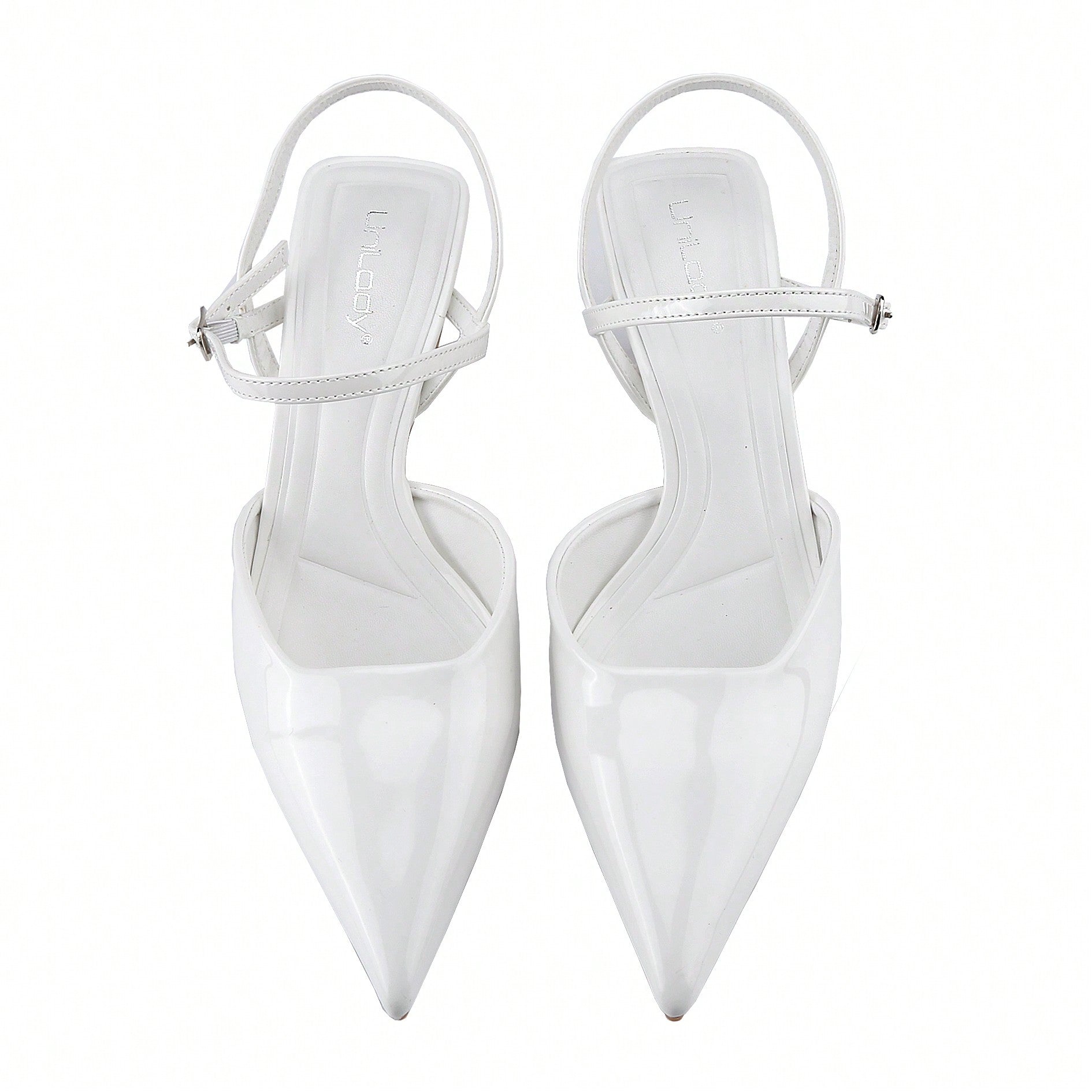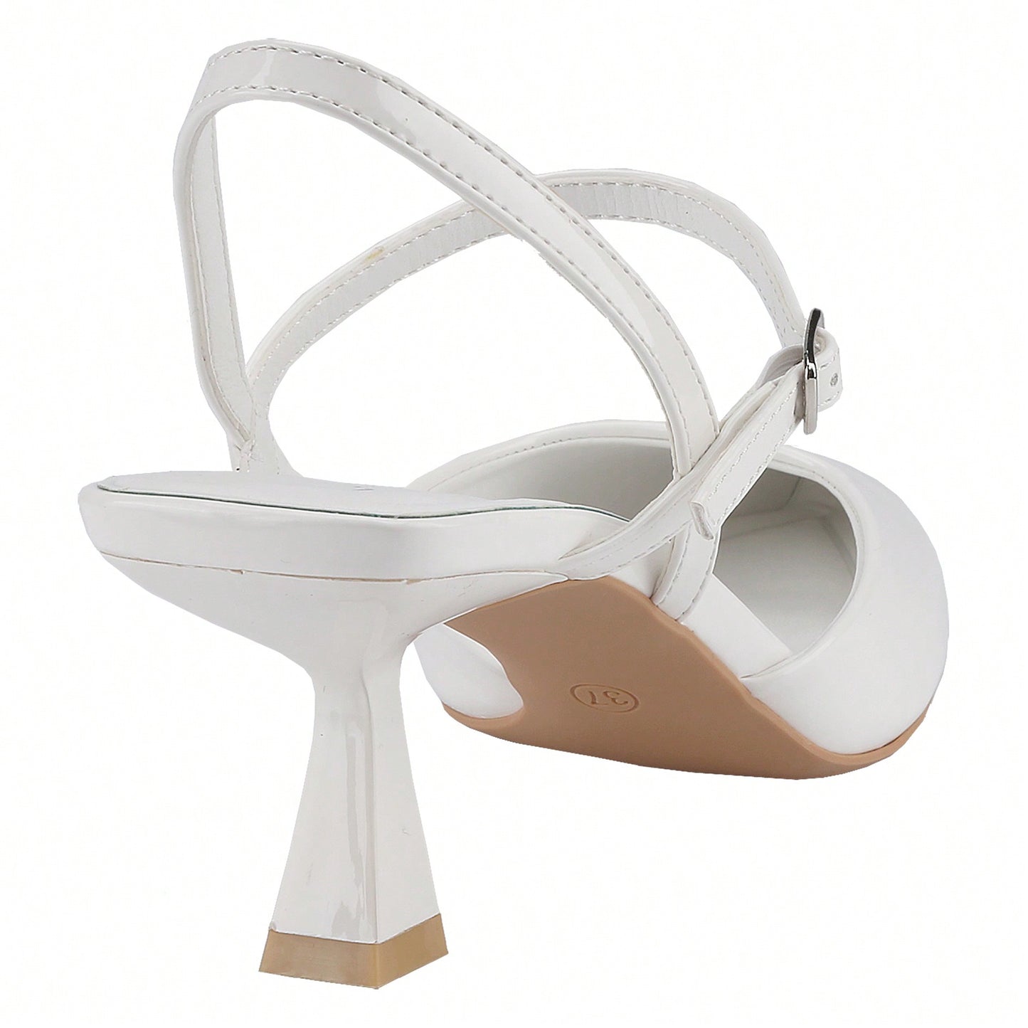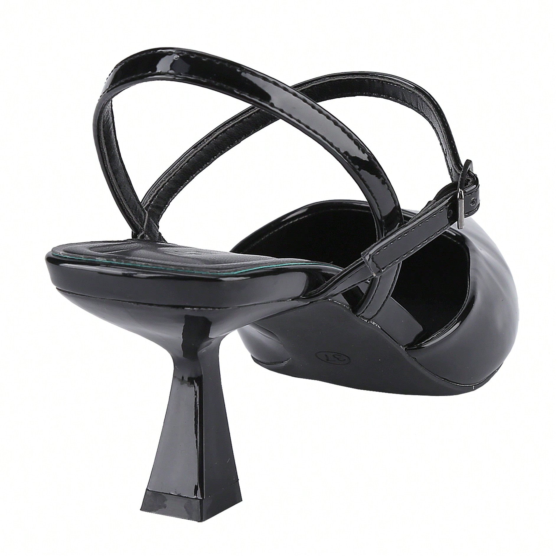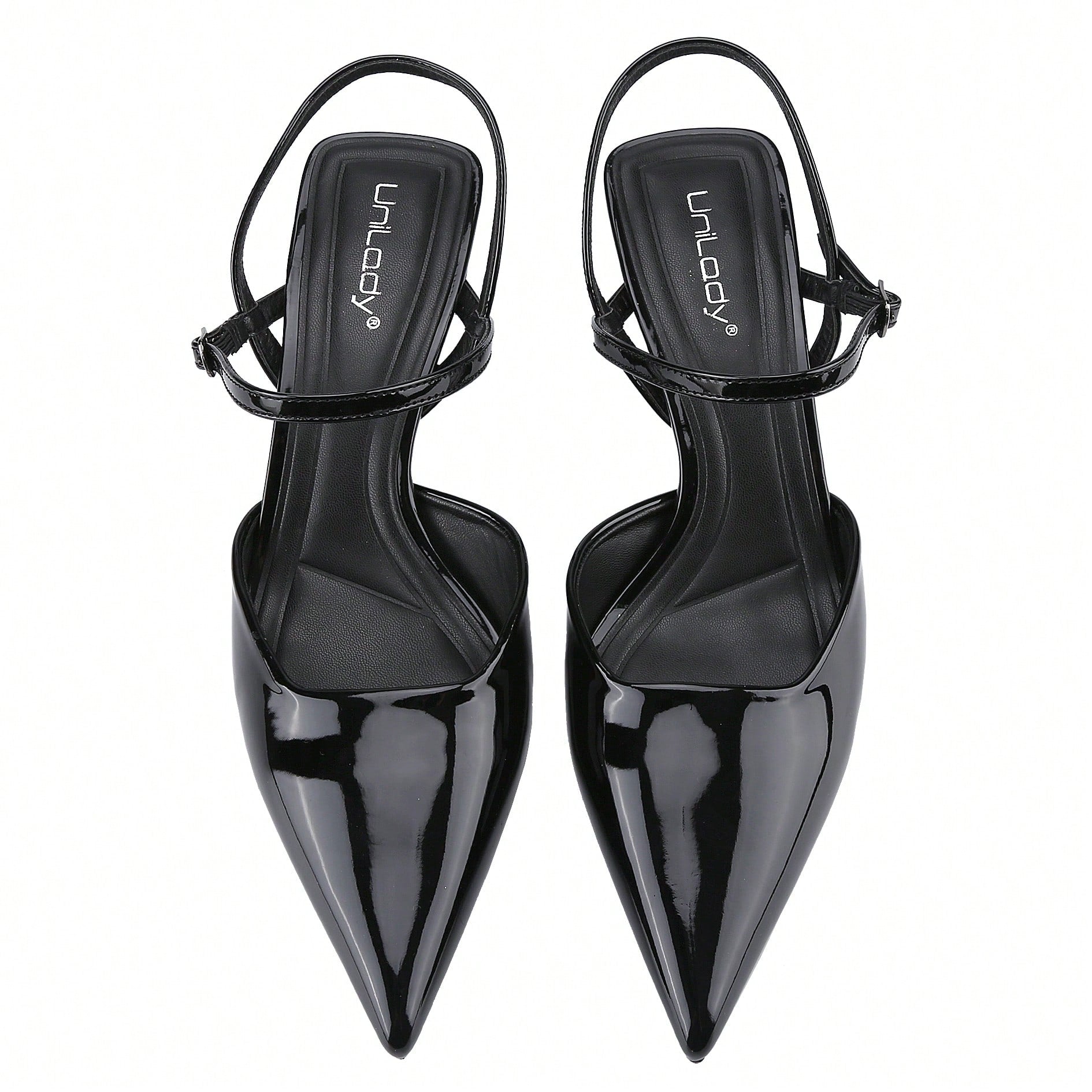 Women's Slingback Patent Kitten Heel Pointy Toe Ankle Strap Chunky Low Heel Pumps Shoes 1.5 Inch