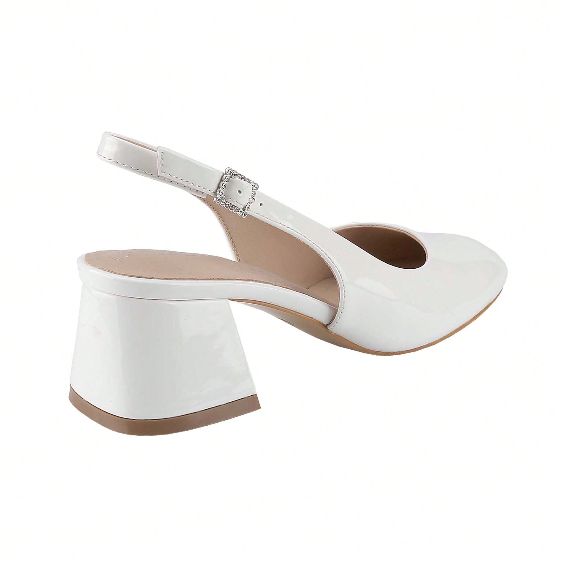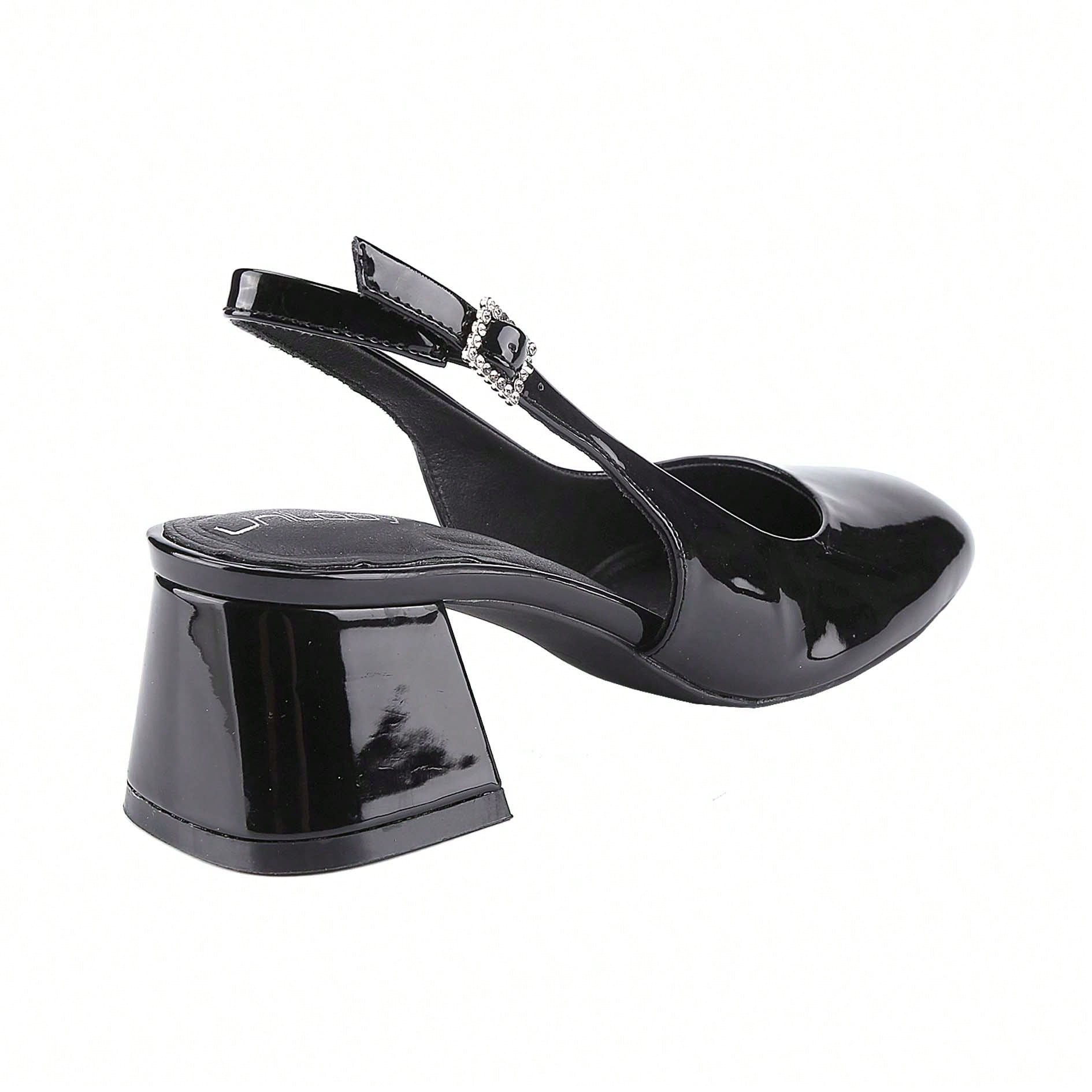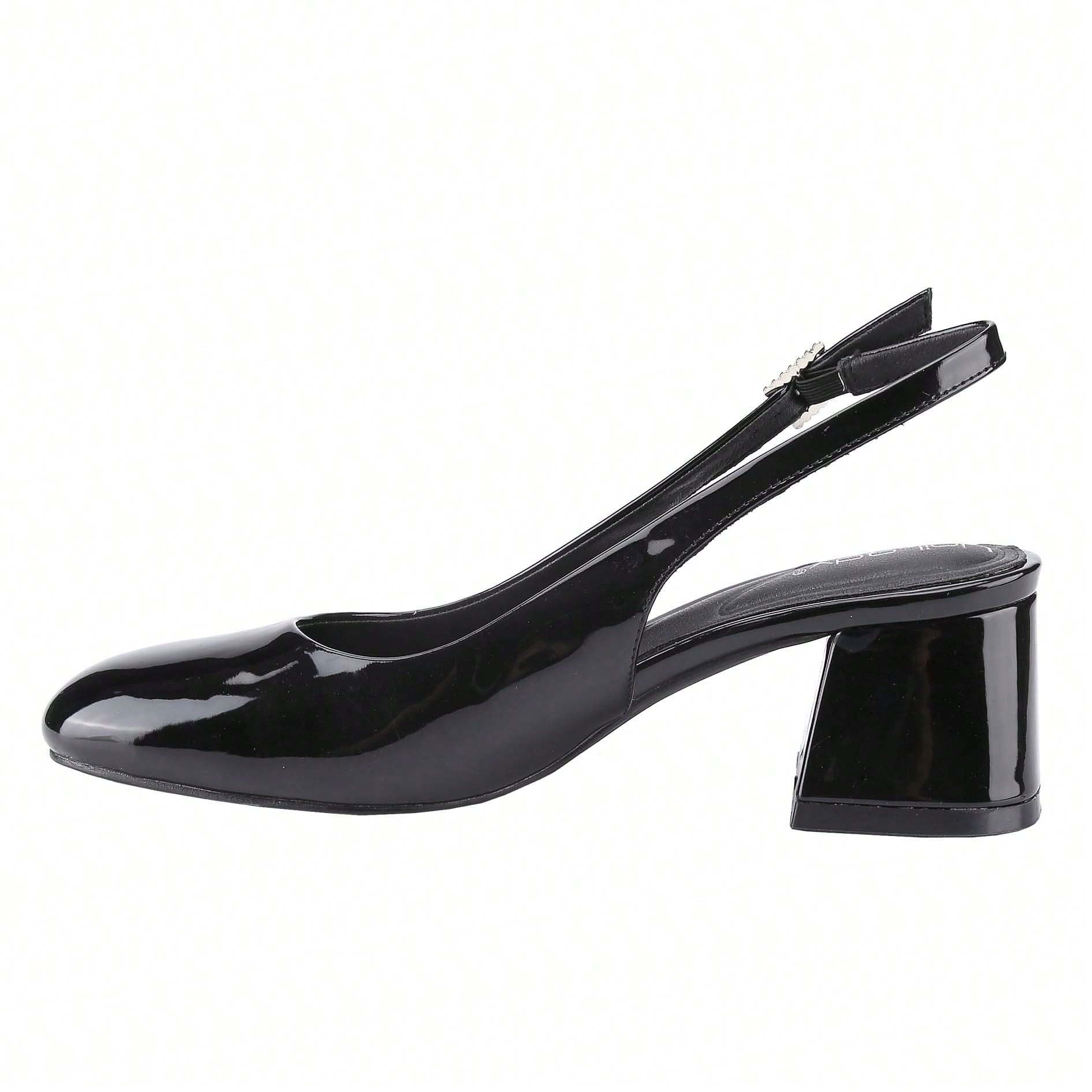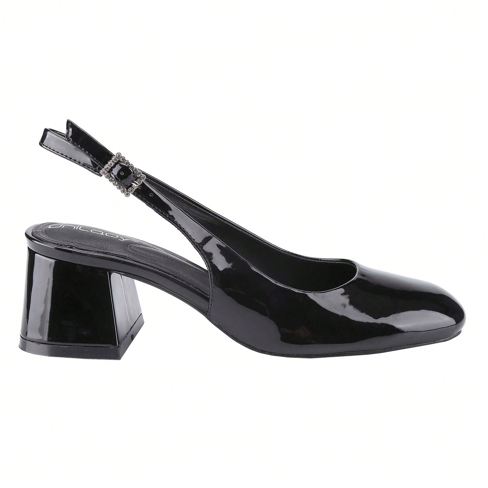 Women's Slingback Patent Square Toe Ankle Strap Chunky Low Heel Pumps Shoes 2 Inch