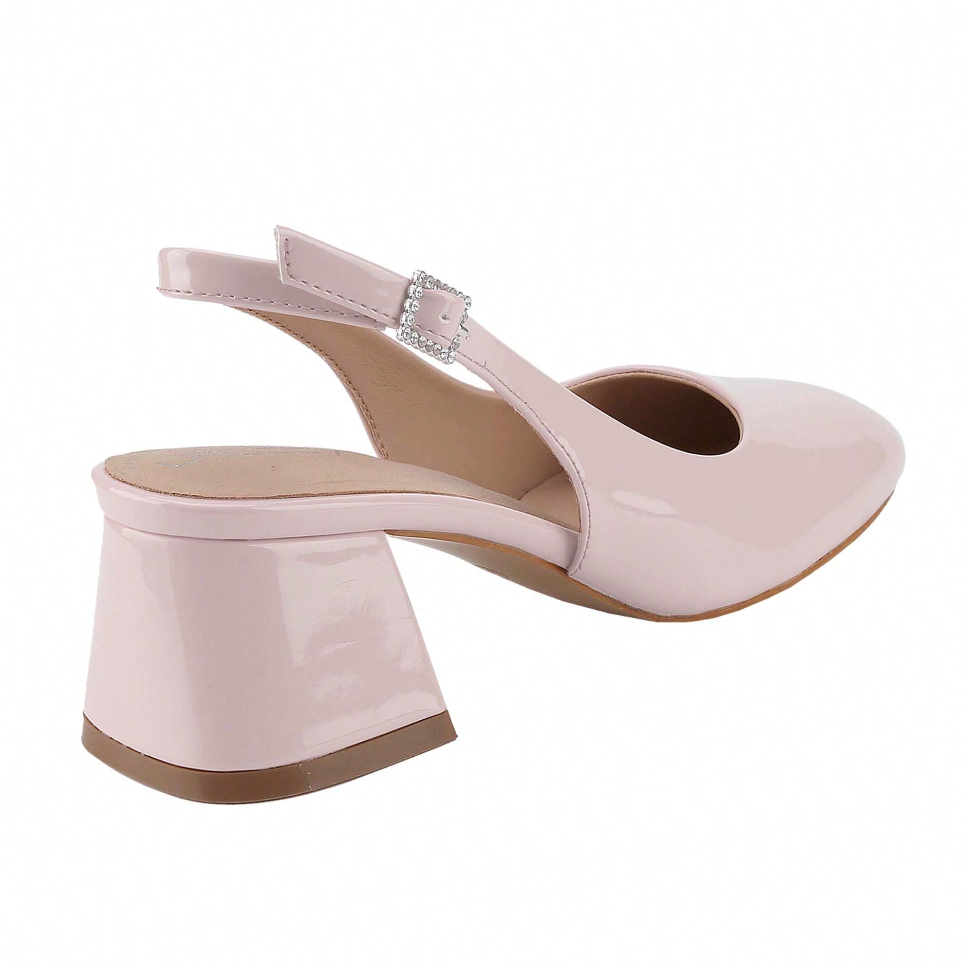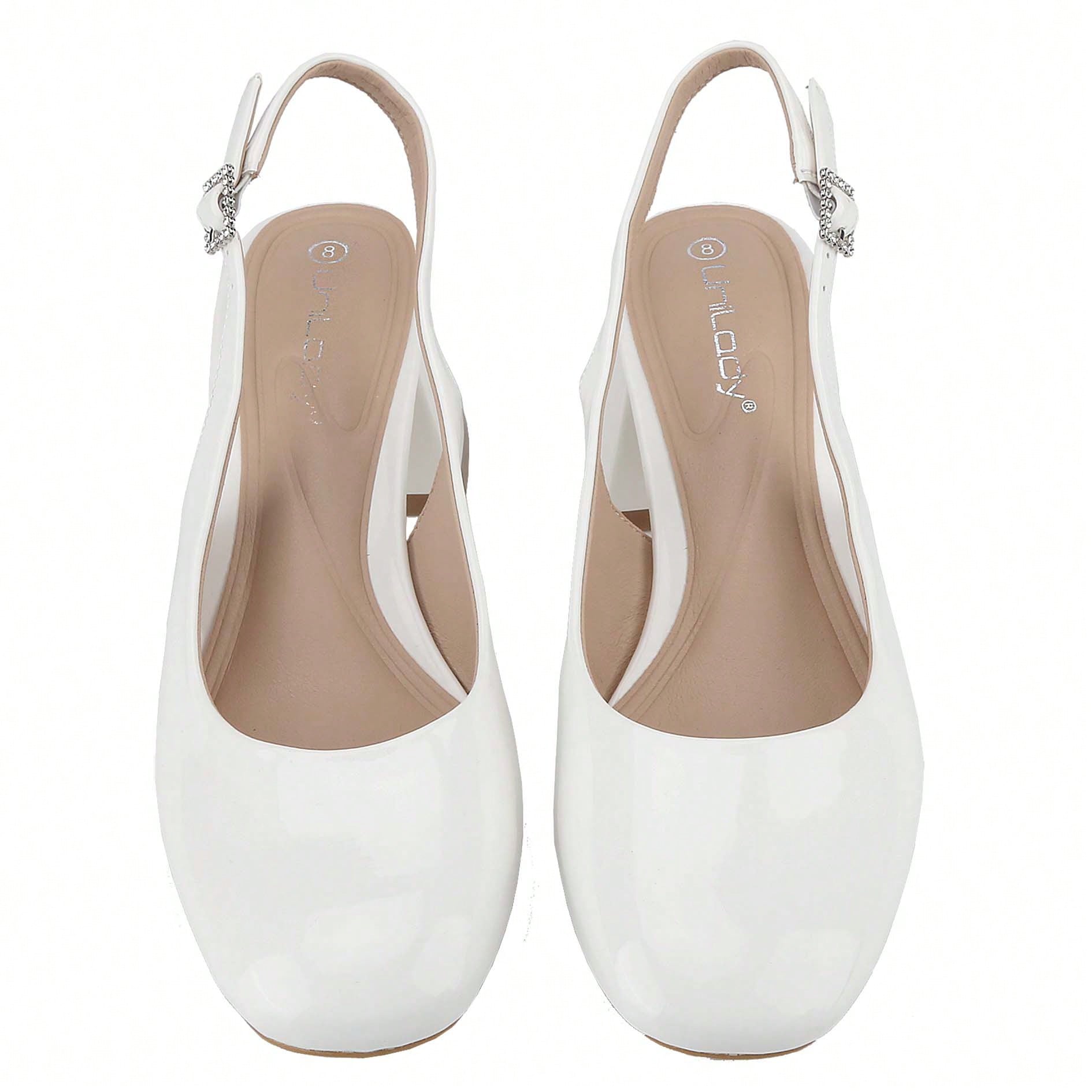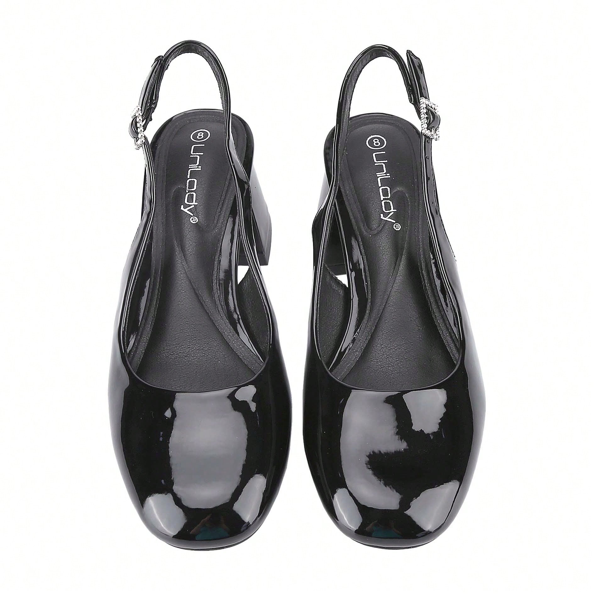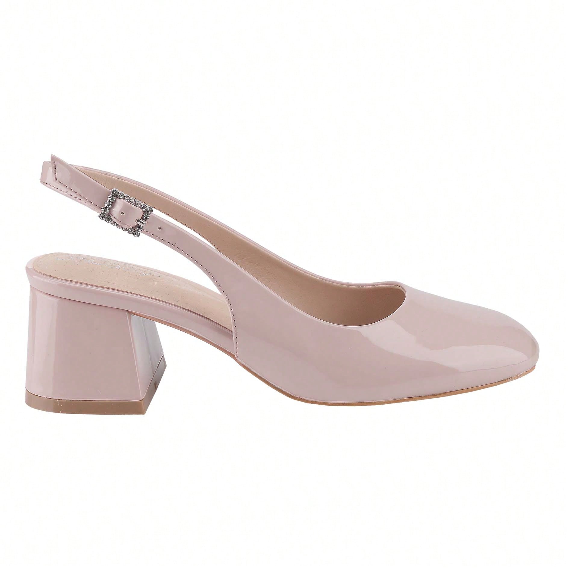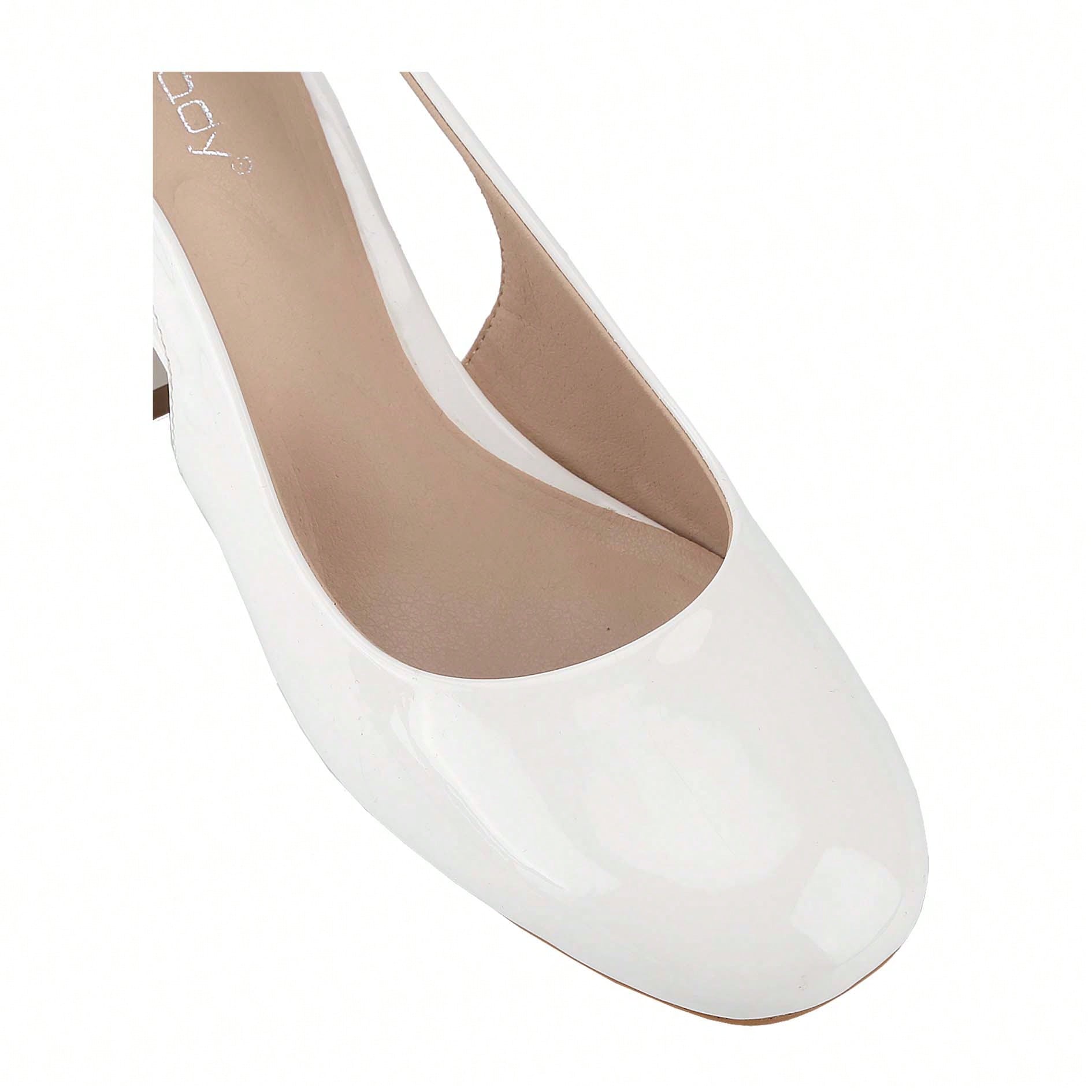Women's Slingback Patent Square Toe Ankle Strap Chunky Low Heel Pumps Shoes 2 Inch