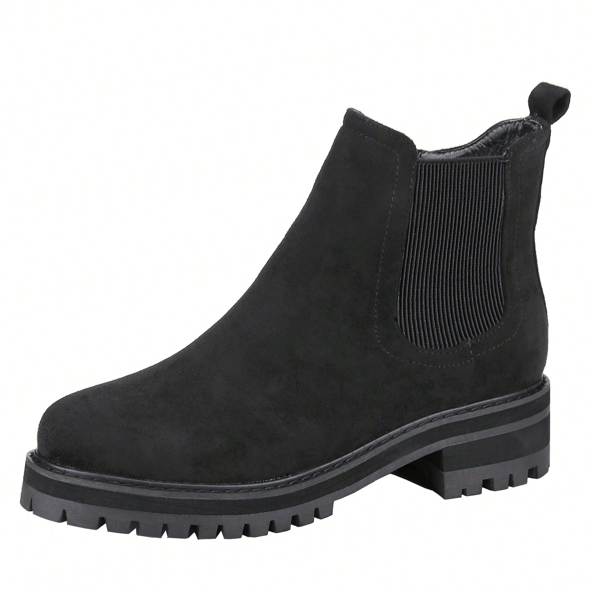 Women's Slip on Ankle Boot, Western Almond Round Toe Low Heel Elastic Bootie Rubber sole. Stylish classic designed faux suede, chunky stacked block heel create the perfect casual look. Its easy matching any outfit in winter, spring, autumn like midi dress, leggings, jeans, shorts, skinny pants and sweater