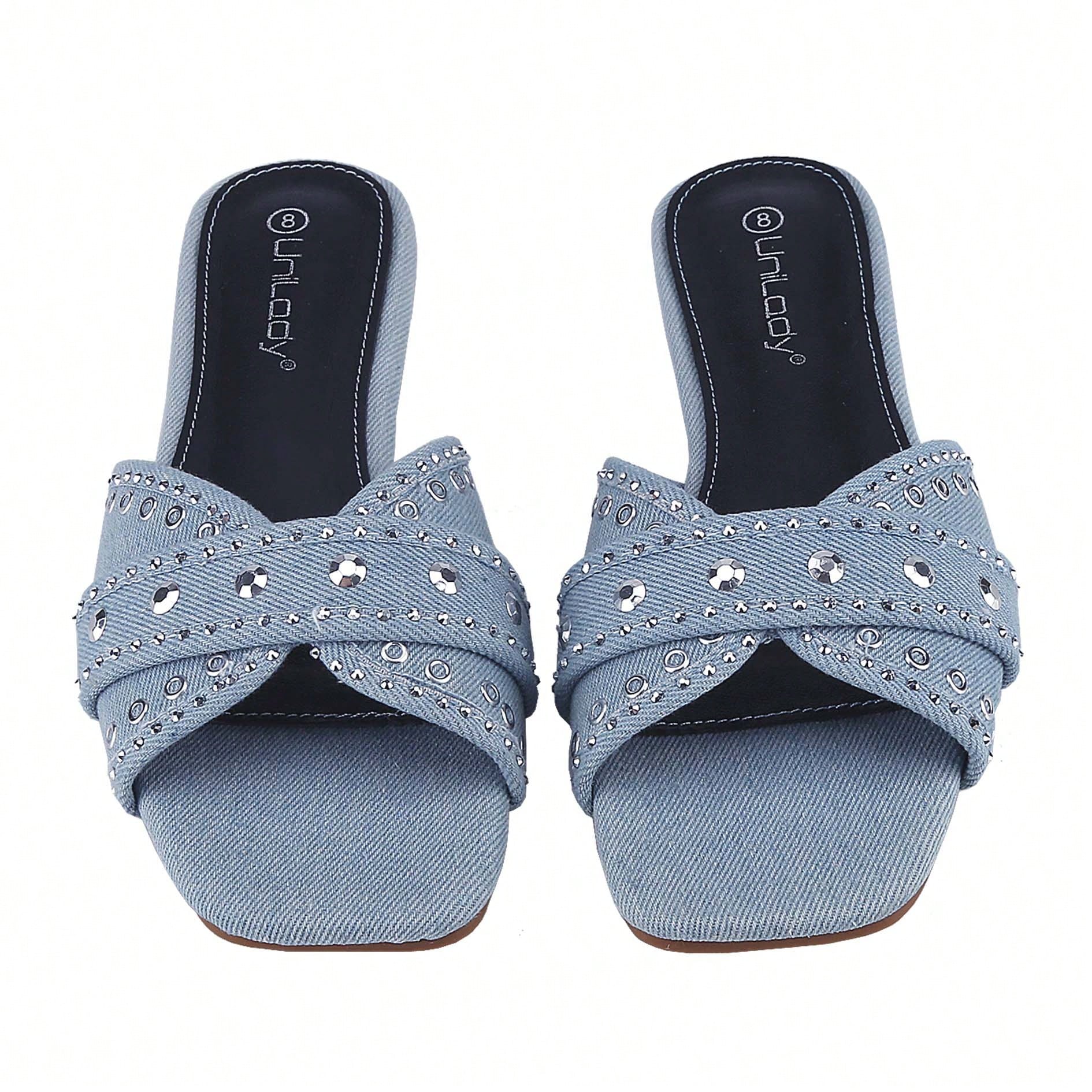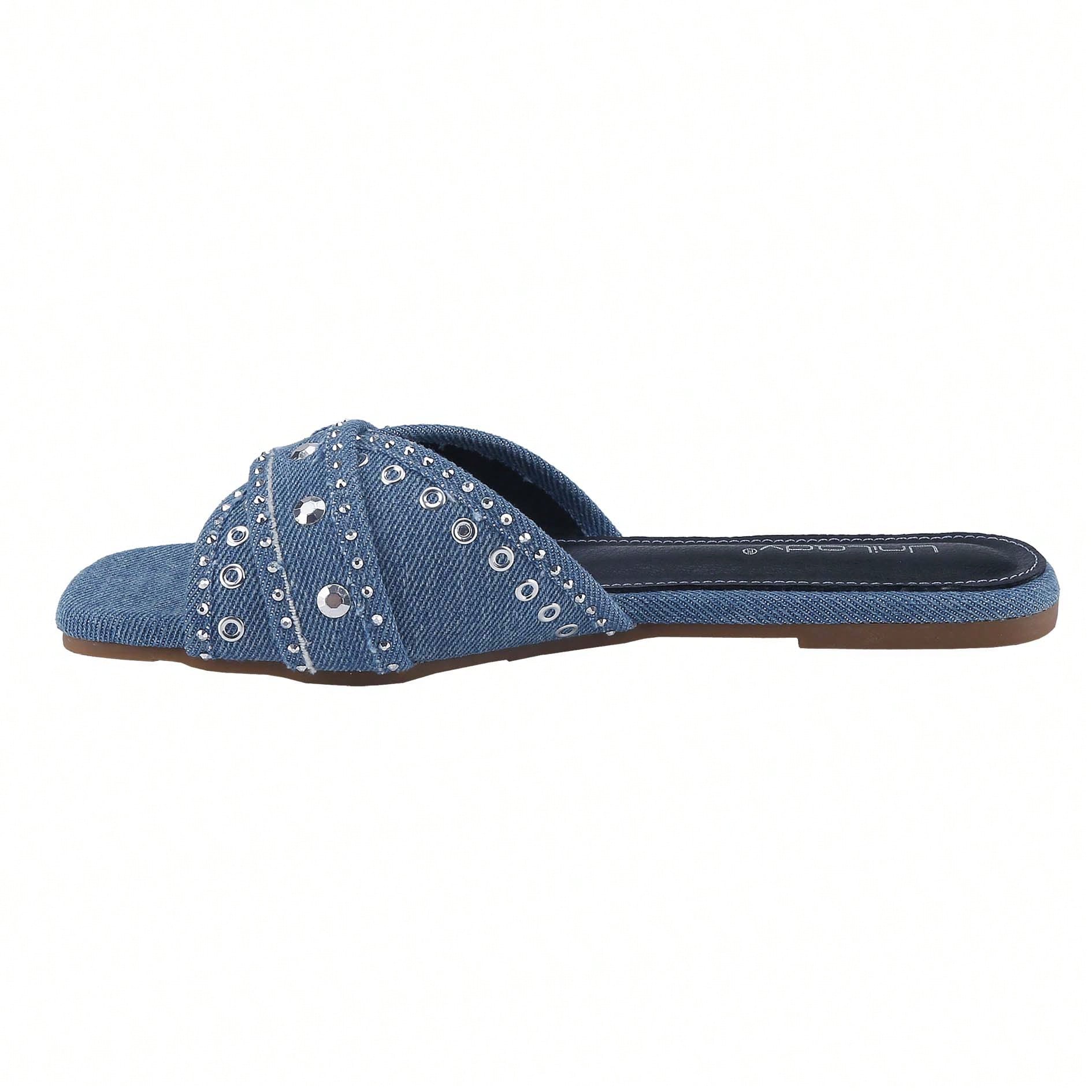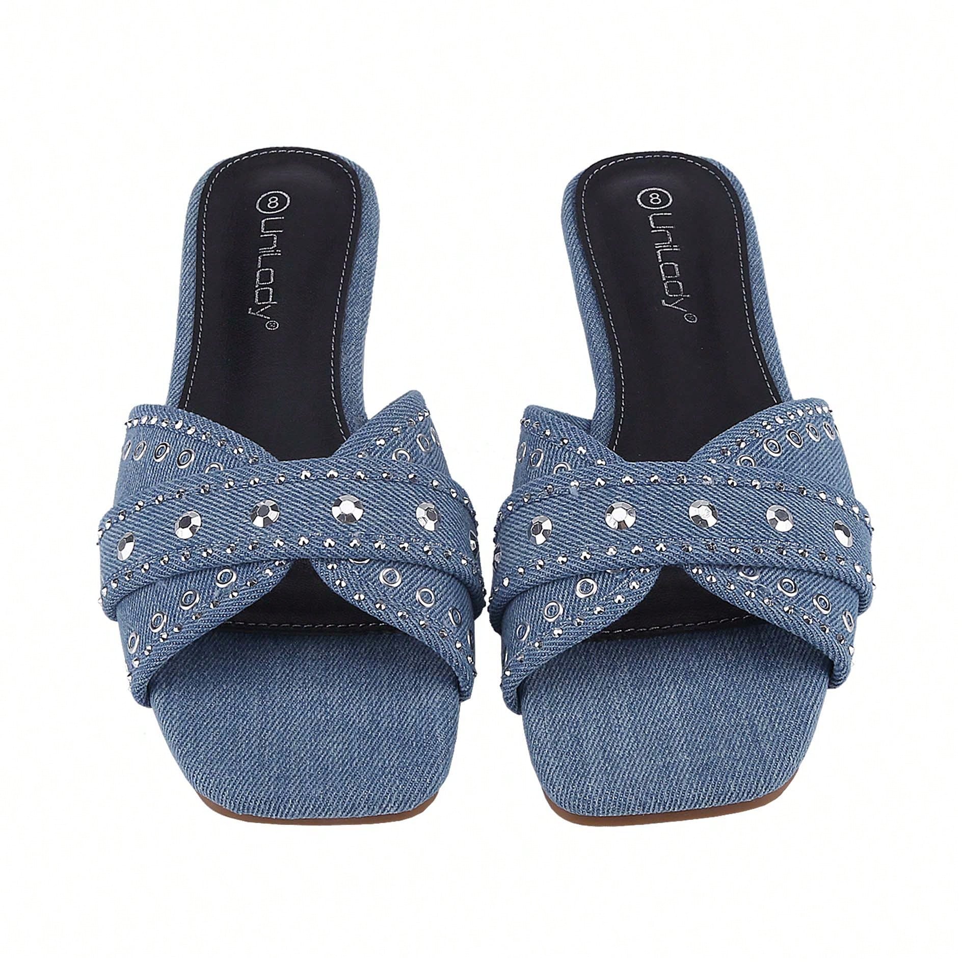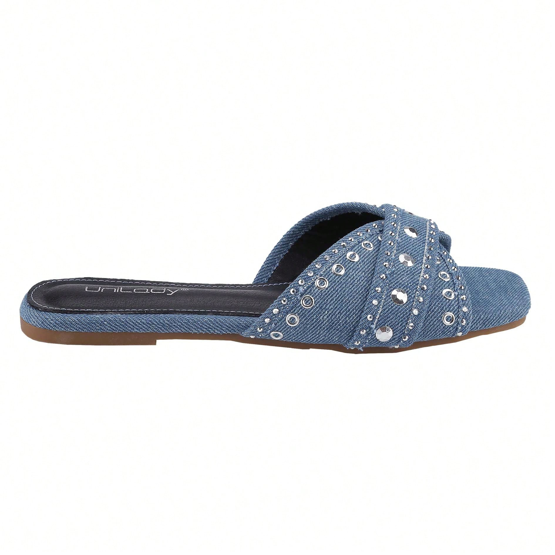 Pamper yourself with our Women's Square Open Toe Denim Flat Sandals;grab yours today!