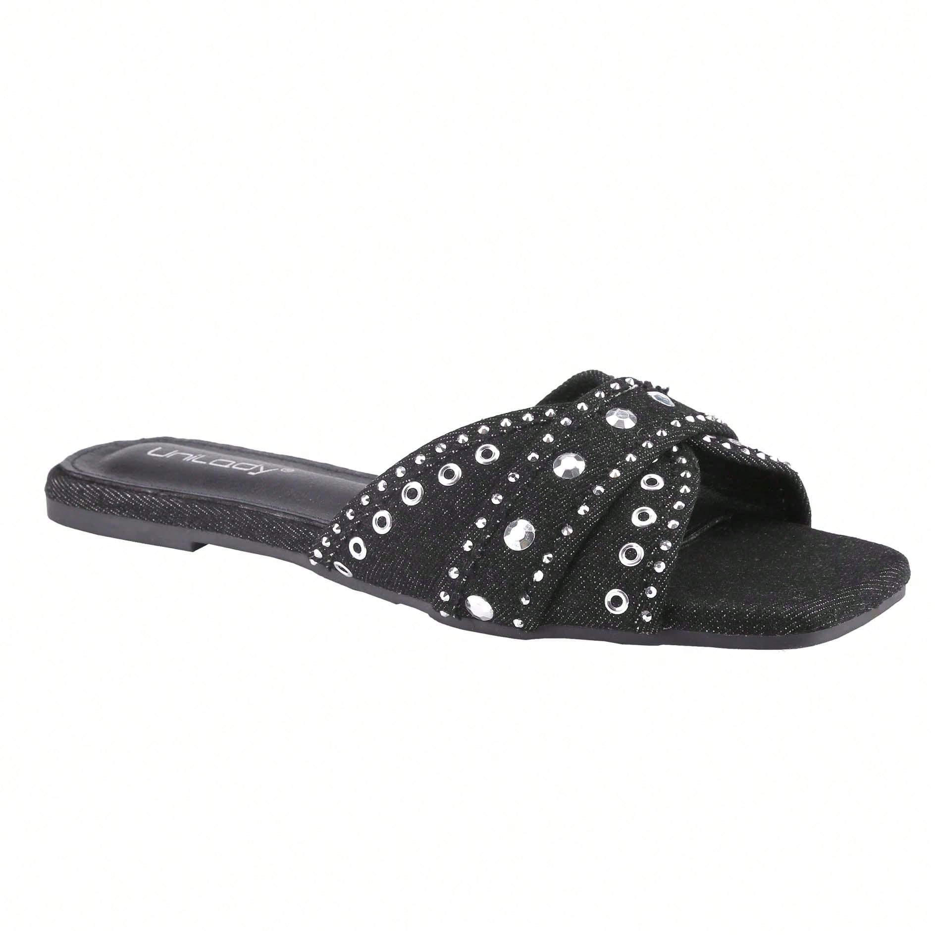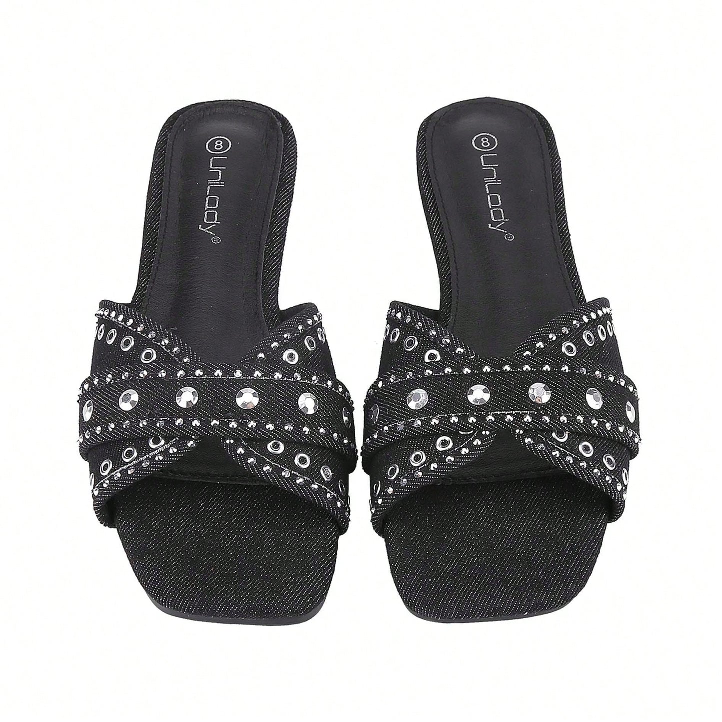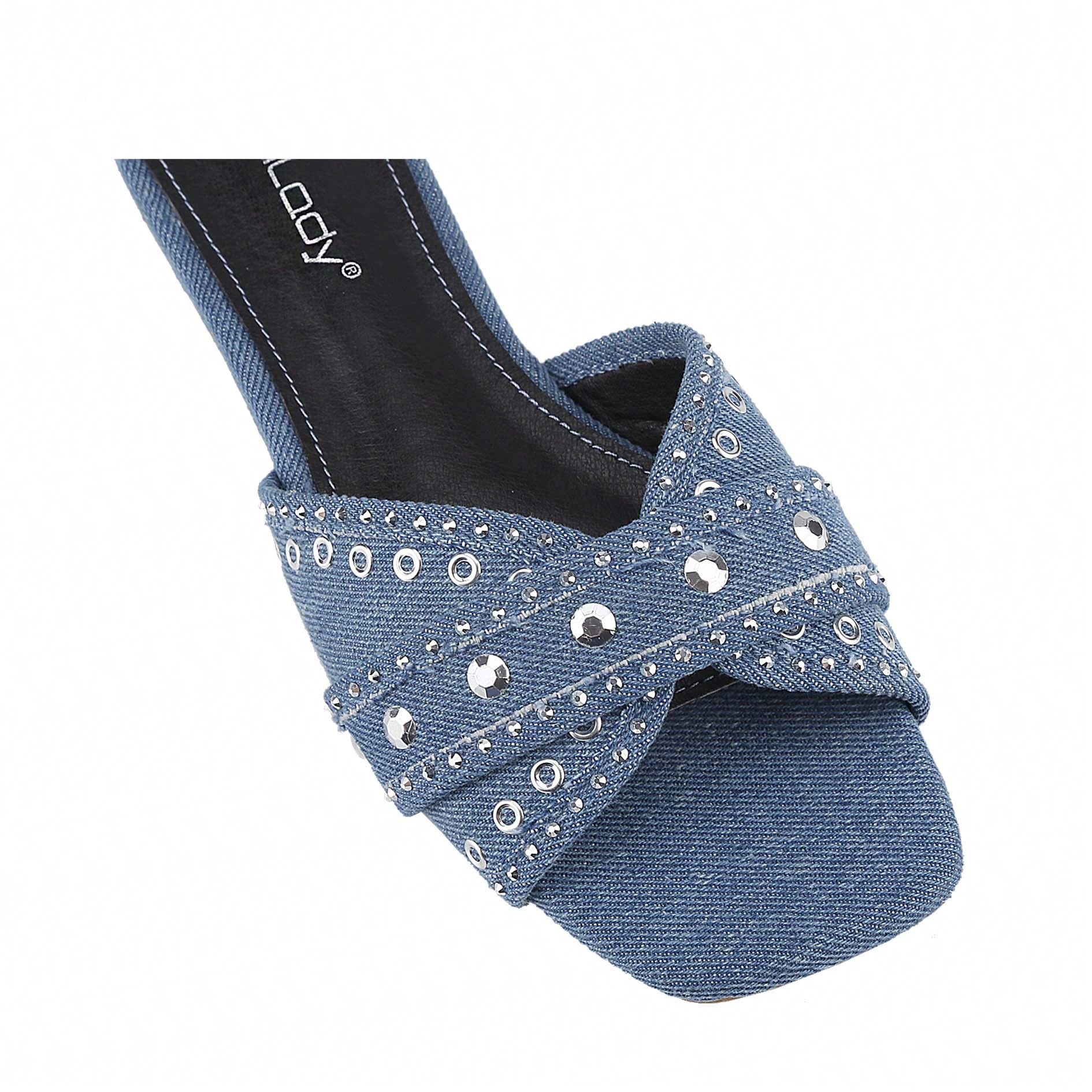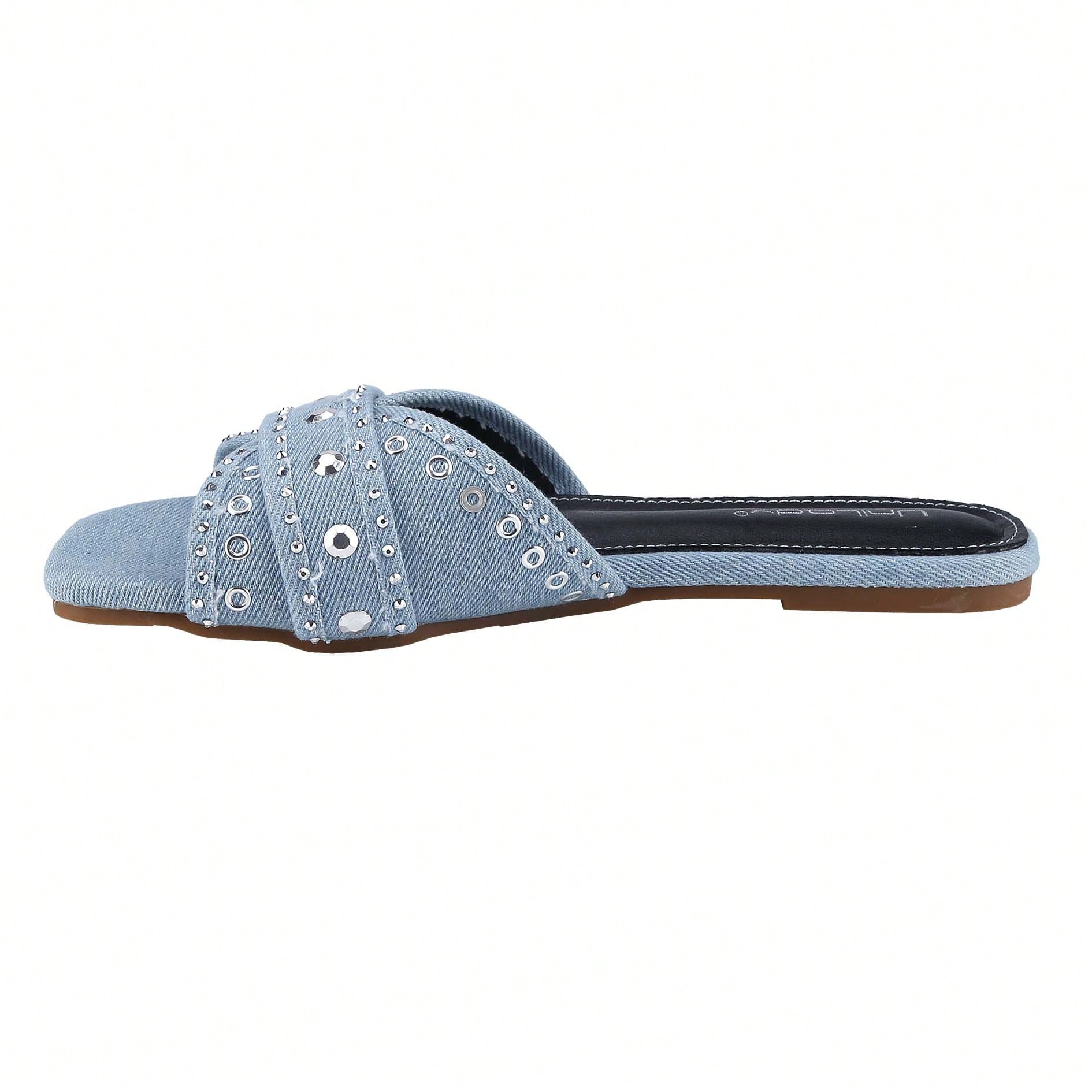 Pamper yourself with our Women's Square Open Toe Denim Flat Sandals;grab yours today!