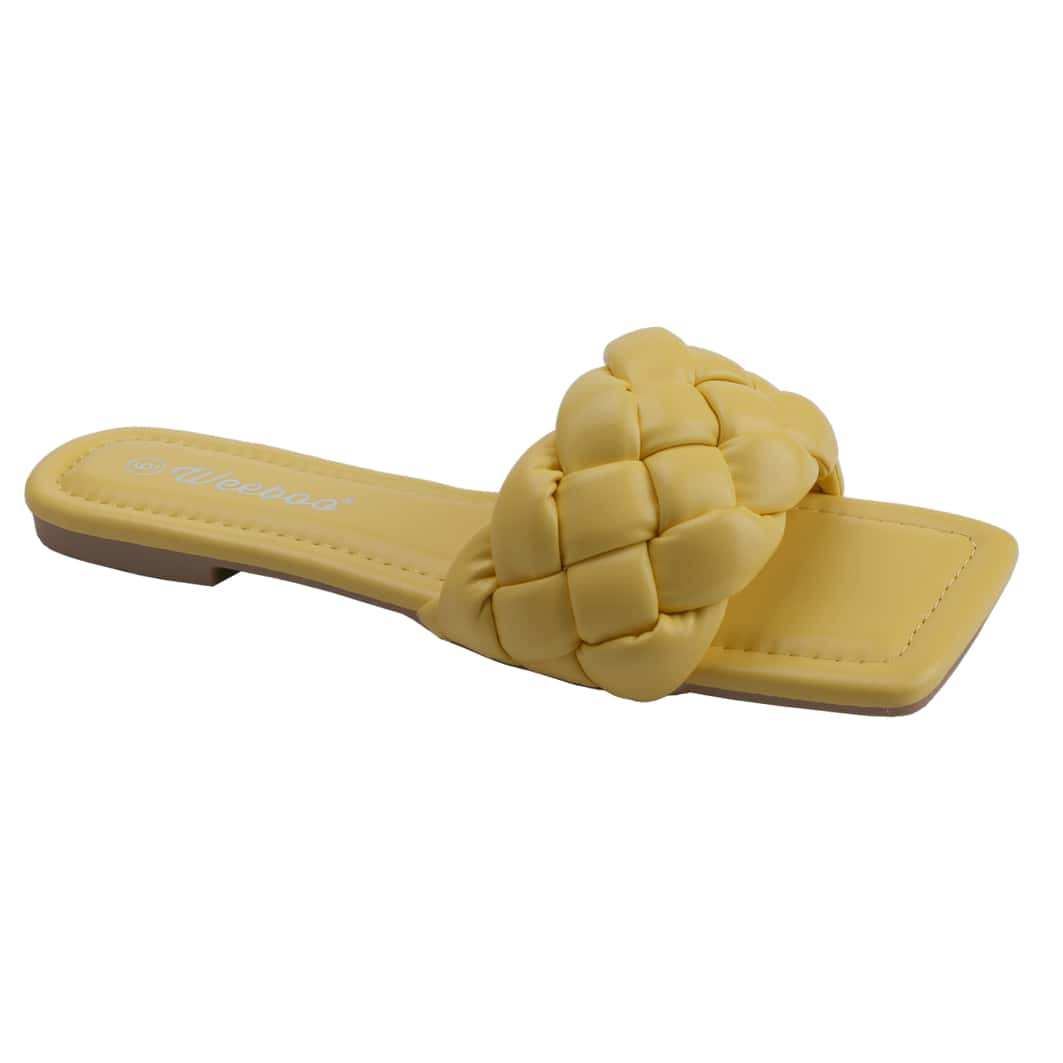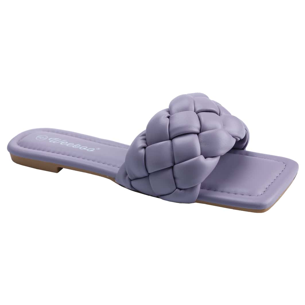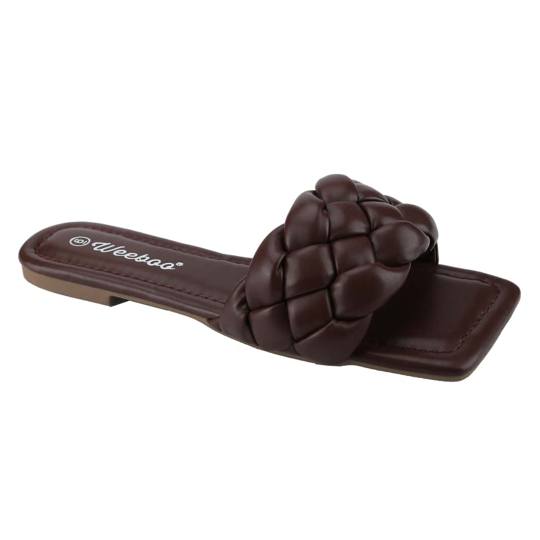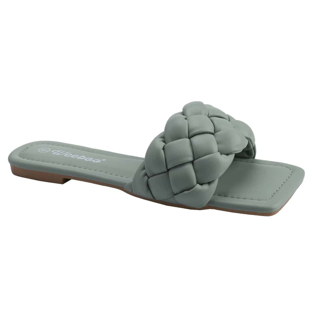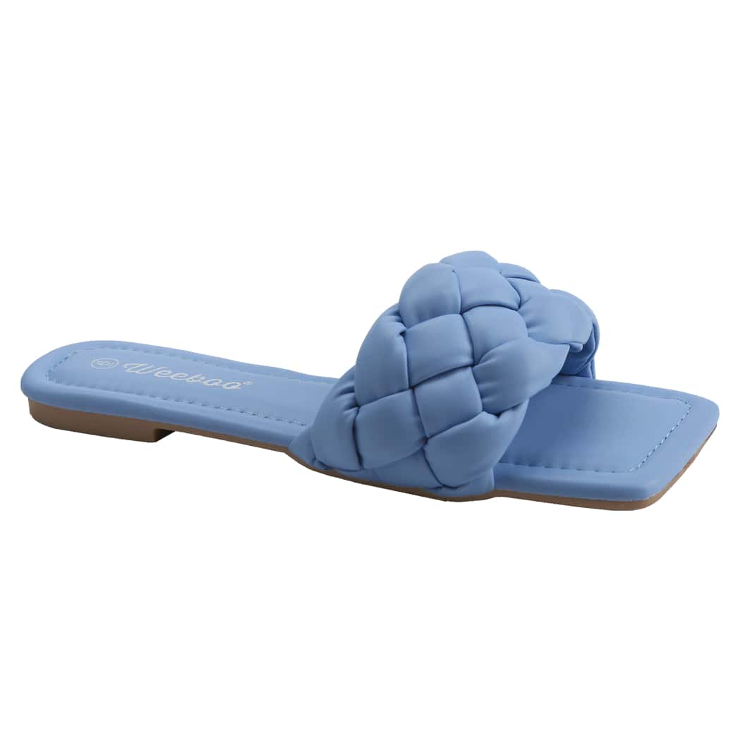 Women's Square Open Toe Slides Braided Woven Single Band Slip On Flat Sandals PU