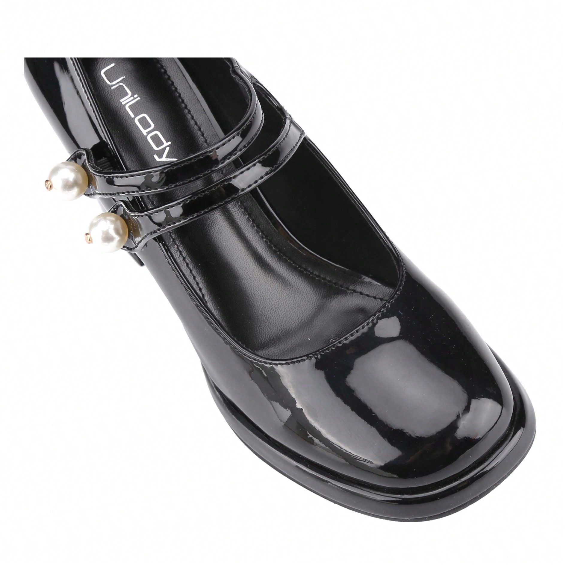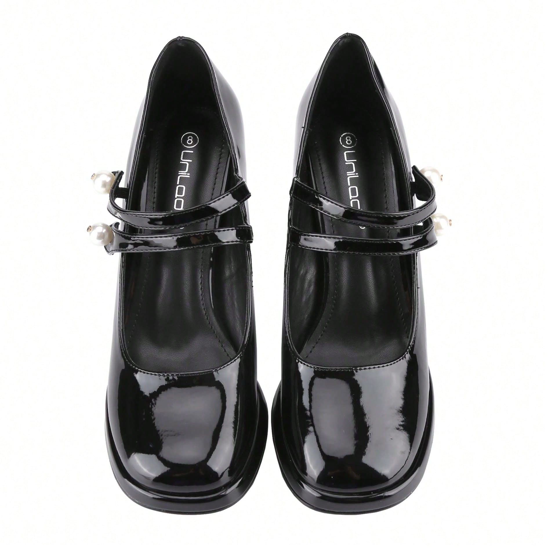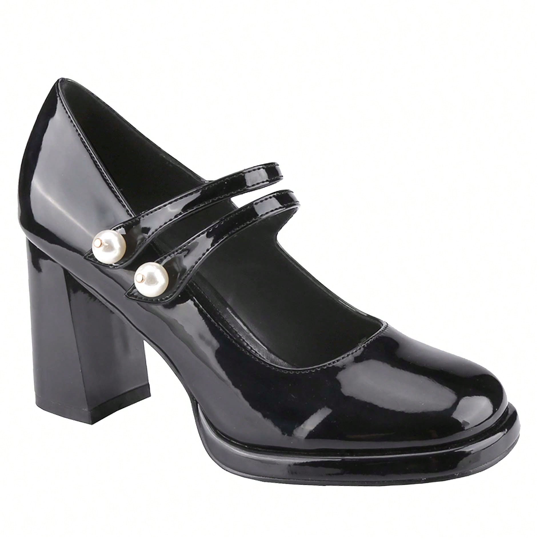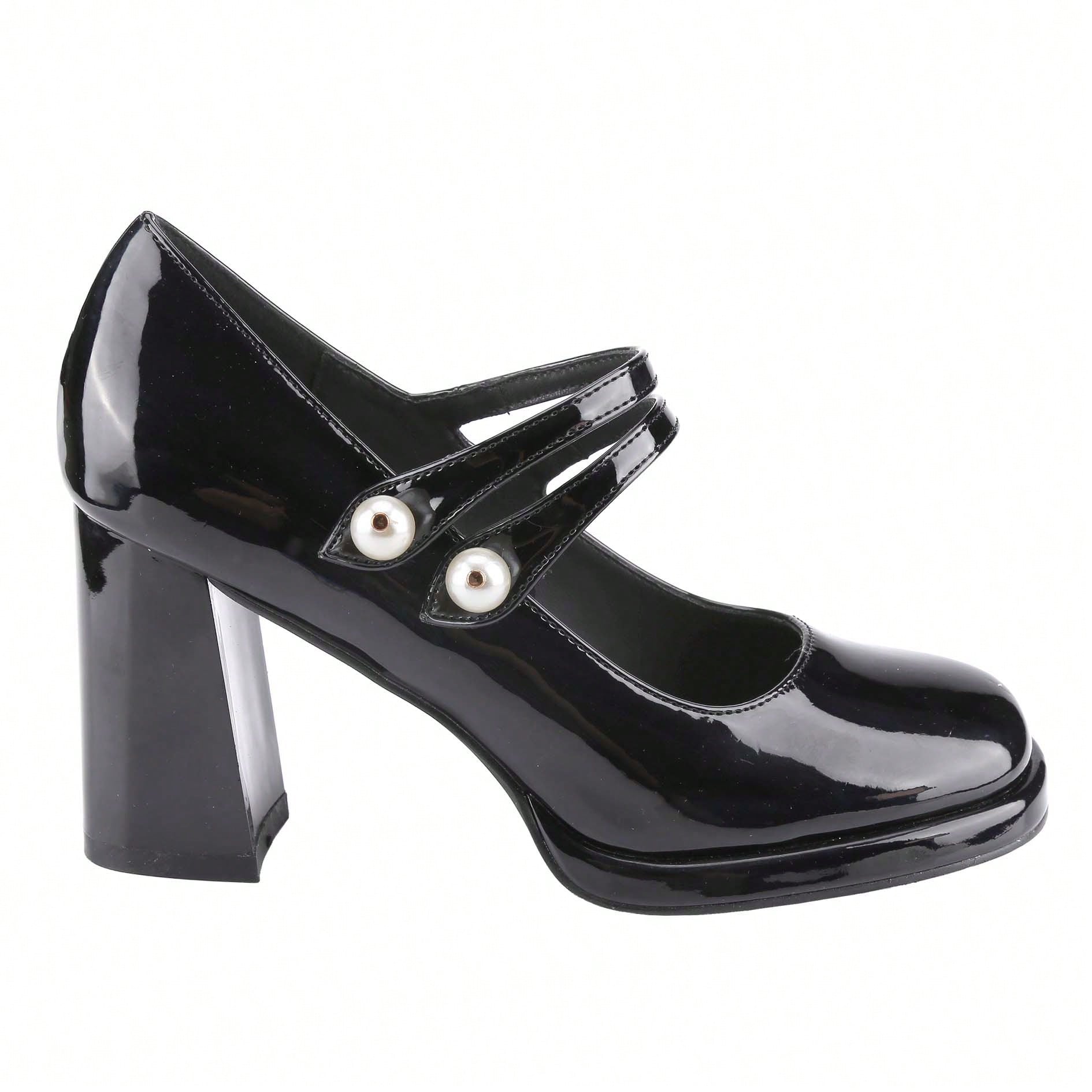 Women's Square Toe Mary Janes Chunky Mid-Heel Dress Pump Shoes