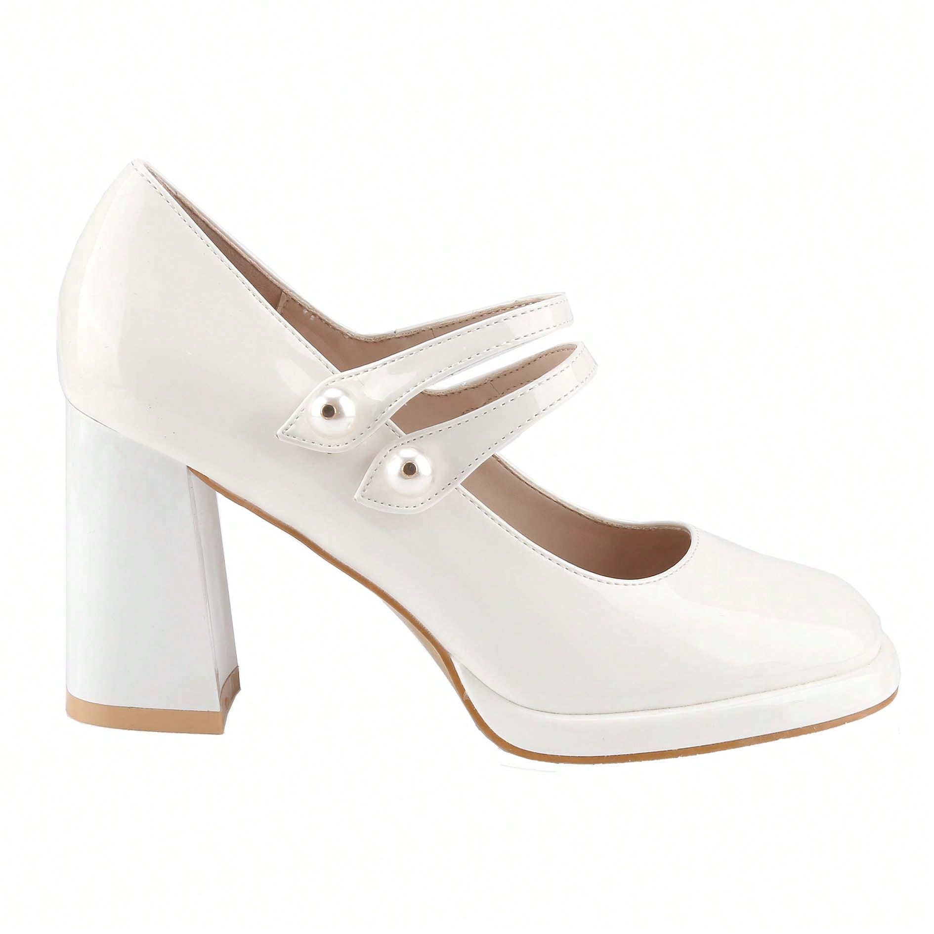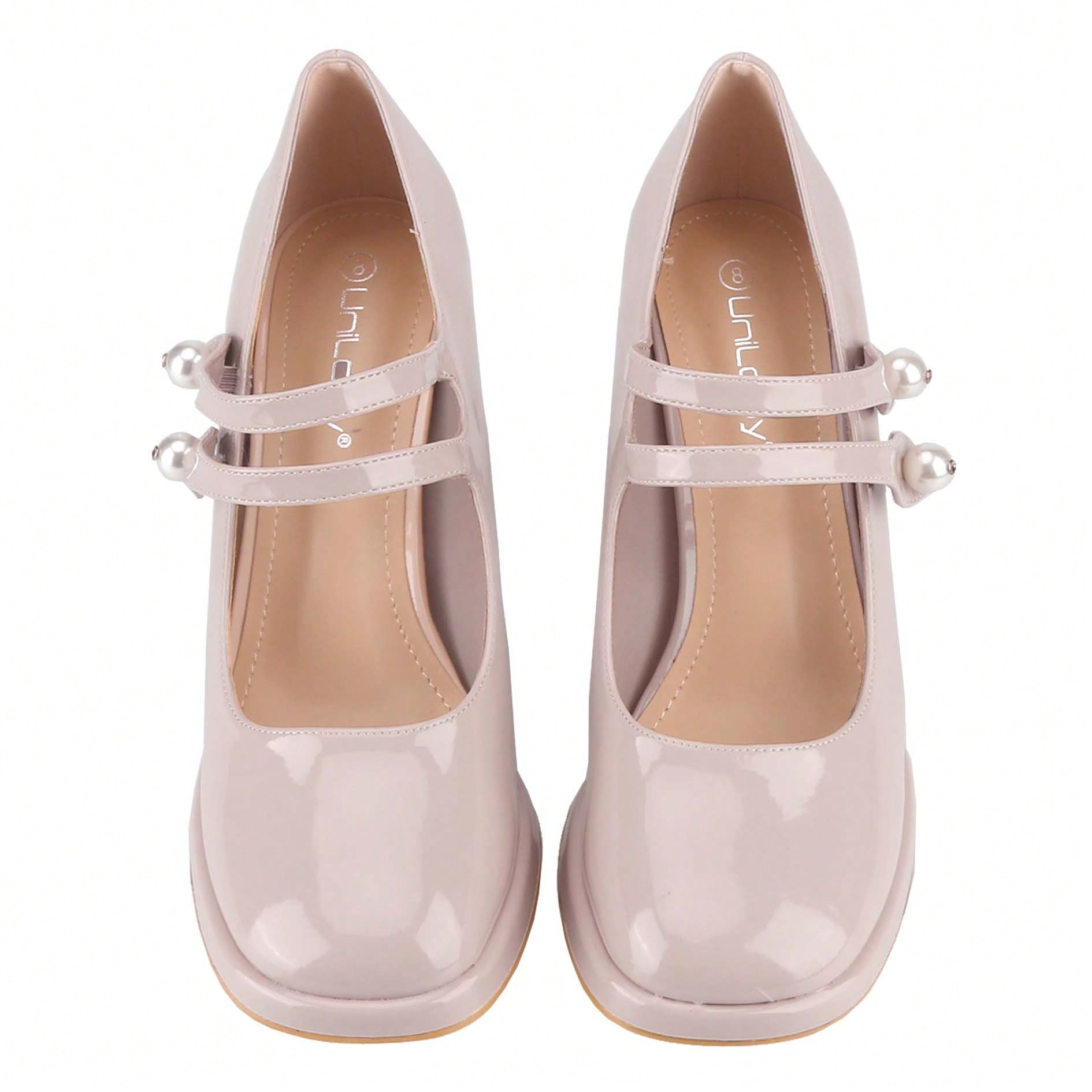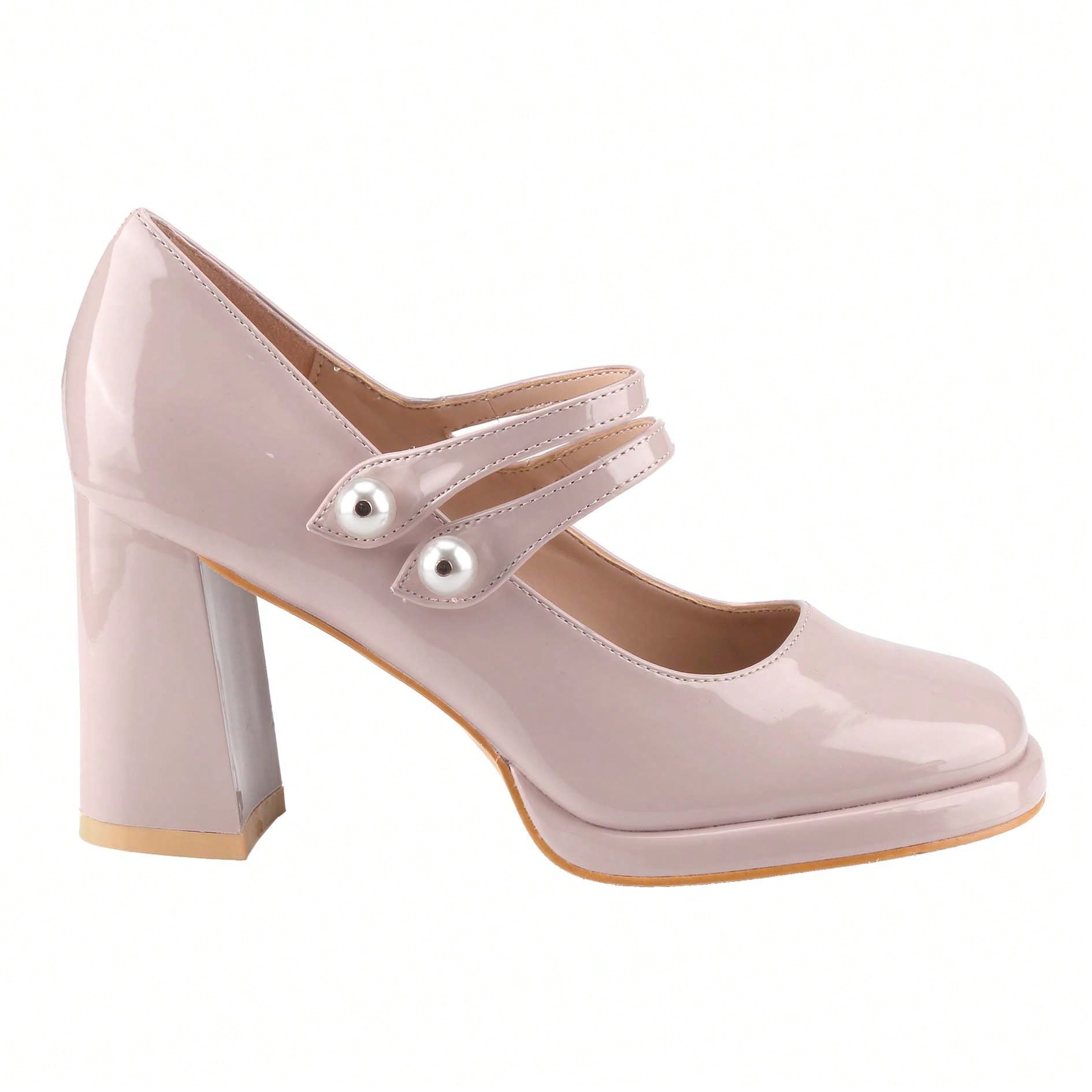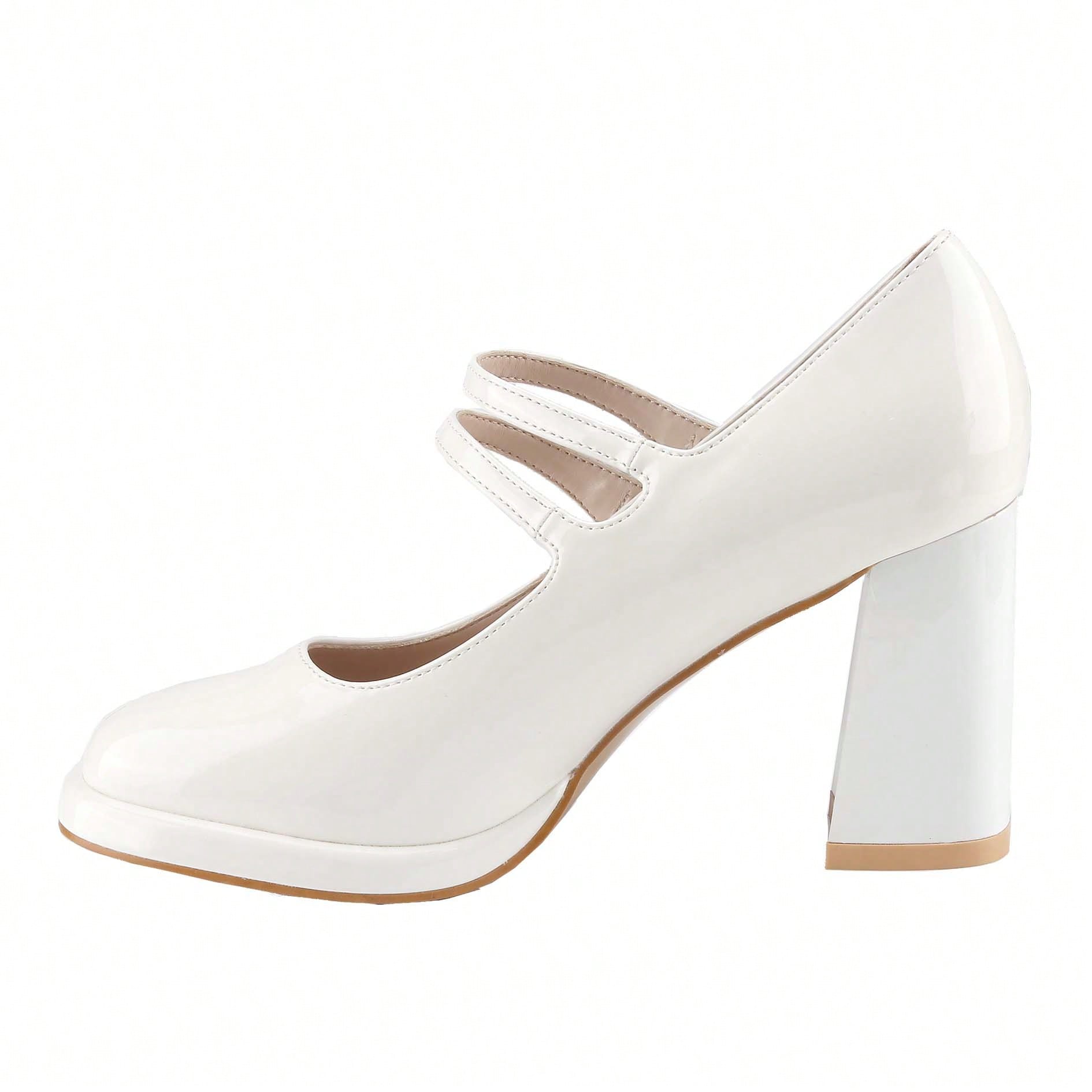 Women's Square Toe Mary Janes Chunky Mid-Heel Dress Pump Shoes