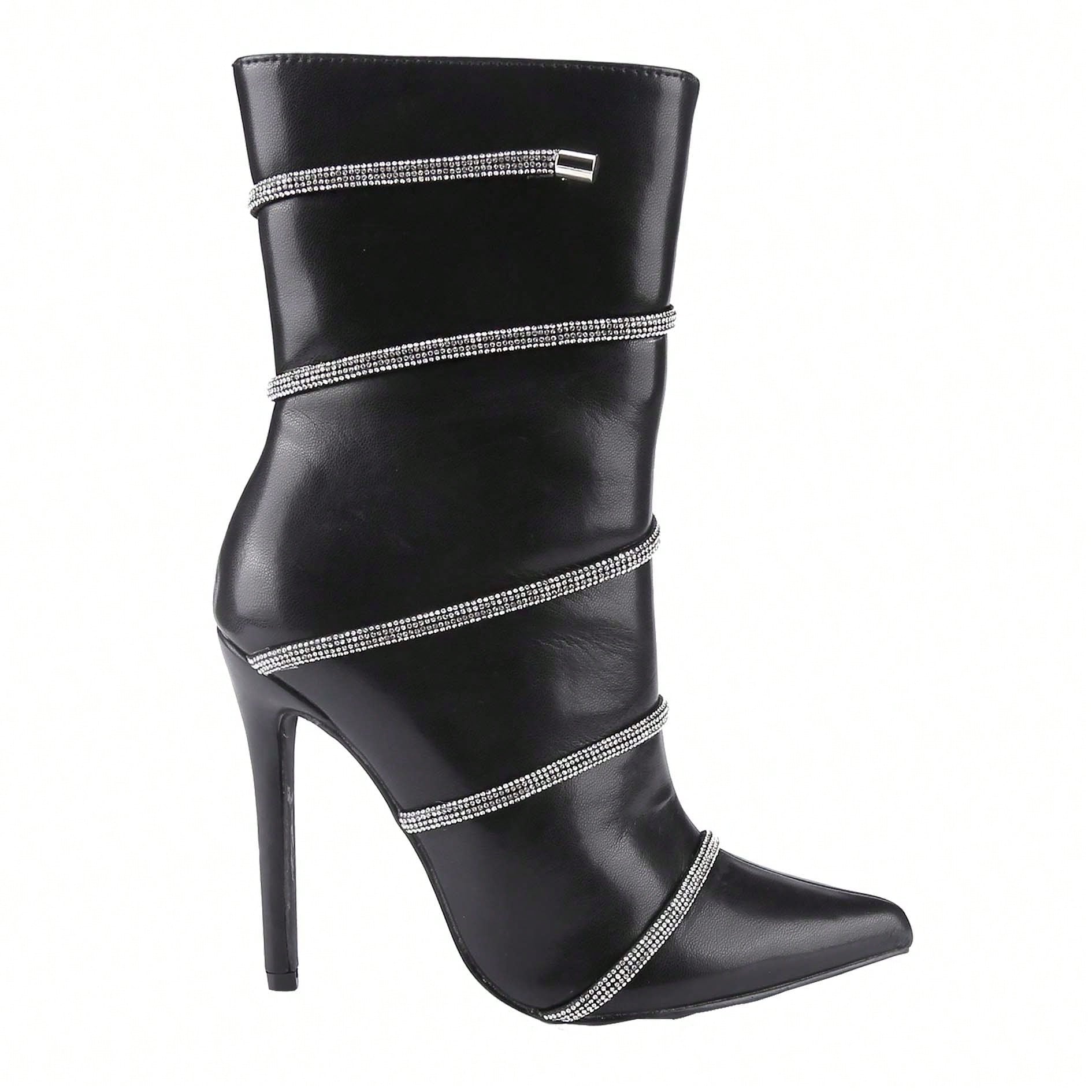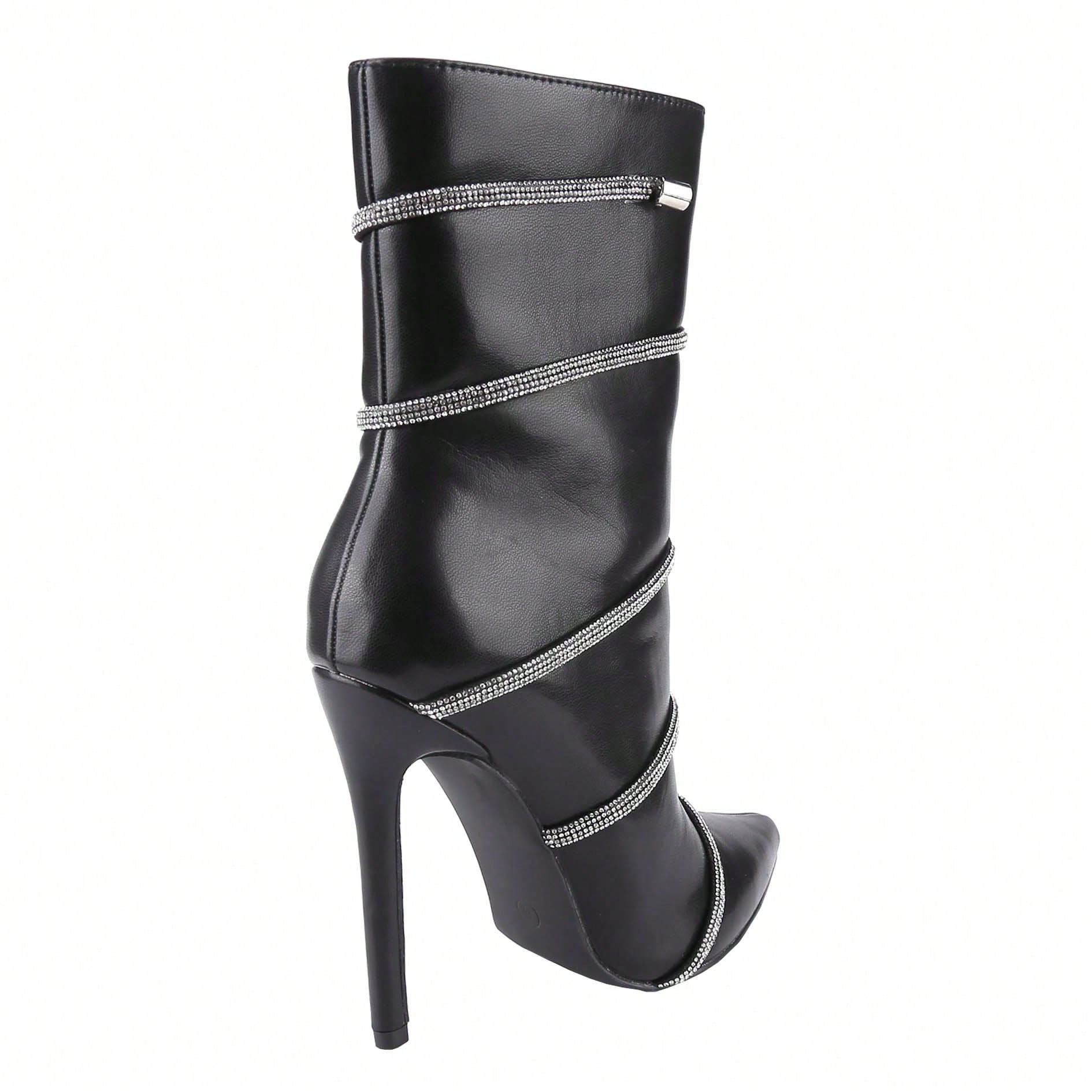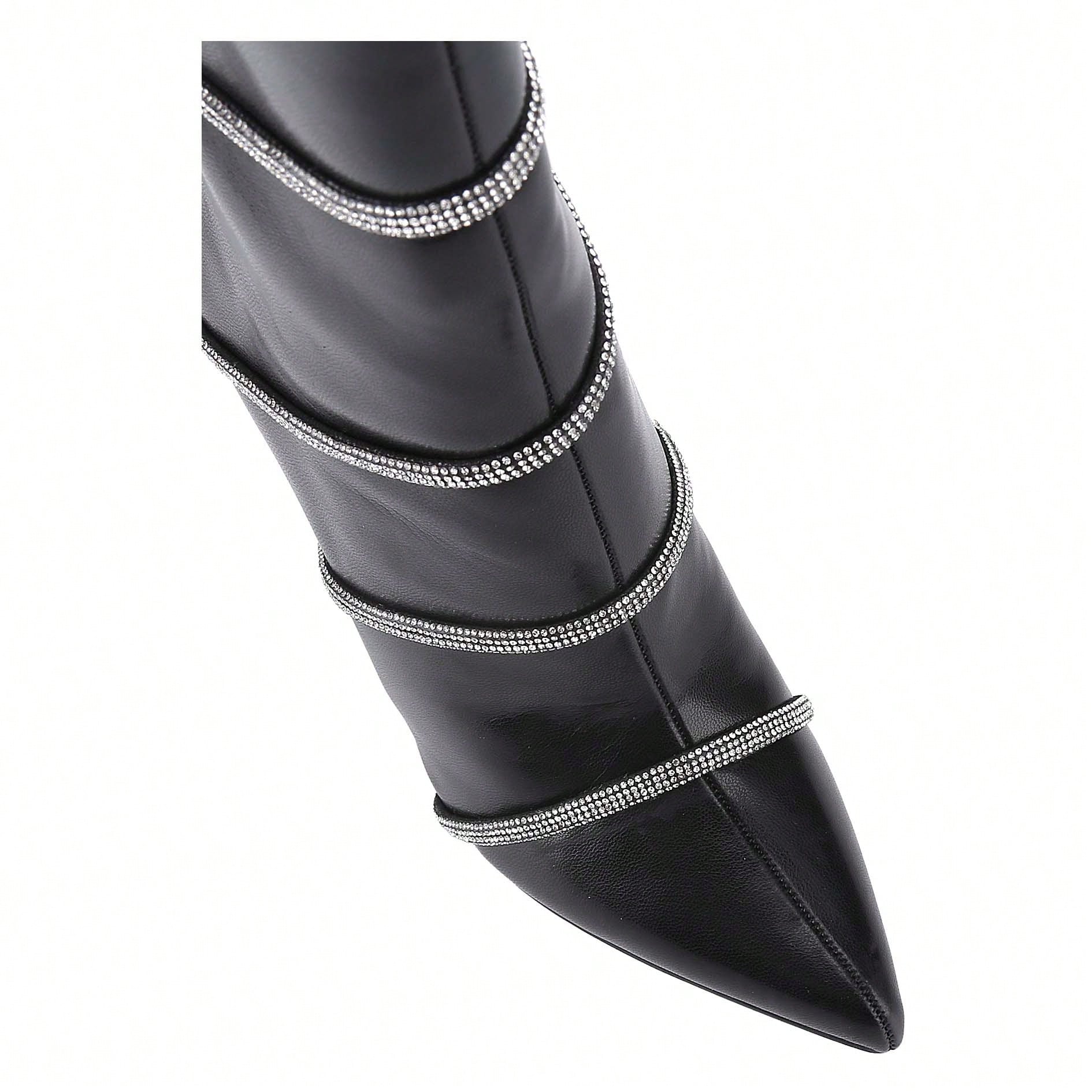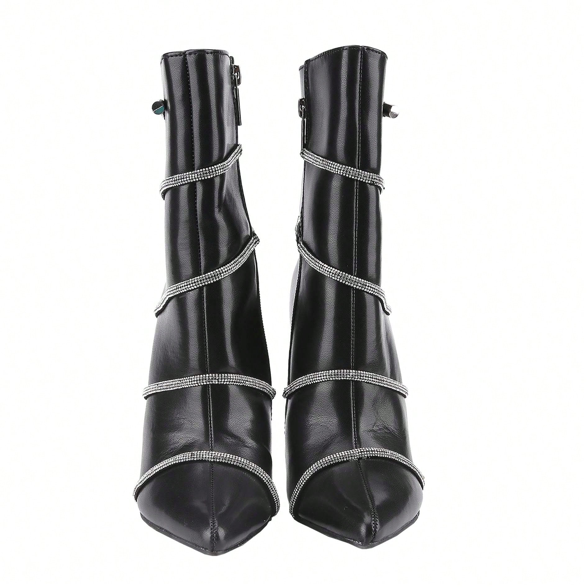 Women's Stiletto Ankle Boots Sexy Pointed Toe Crystal Straps Embellished Booties Slip-On High Heels Boots