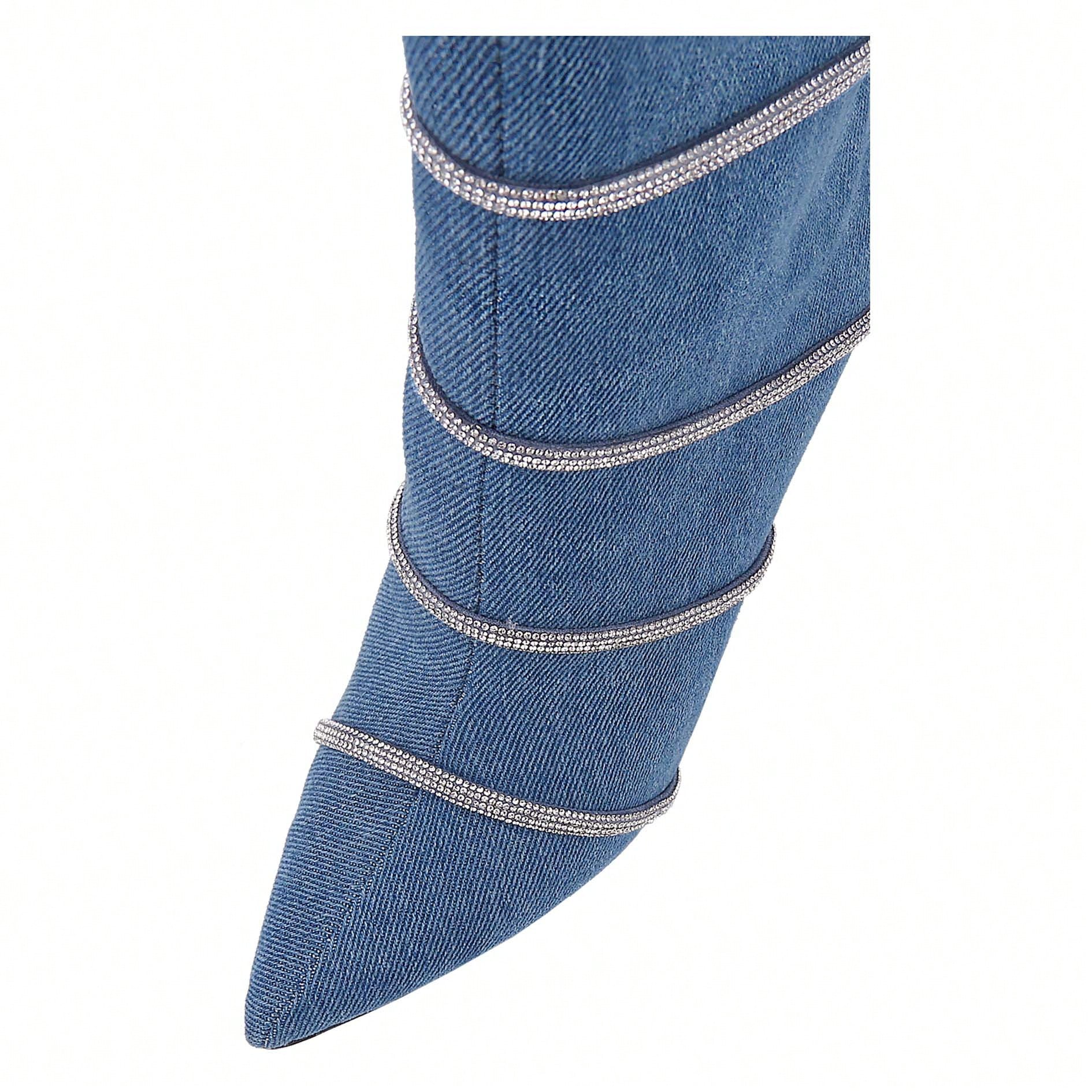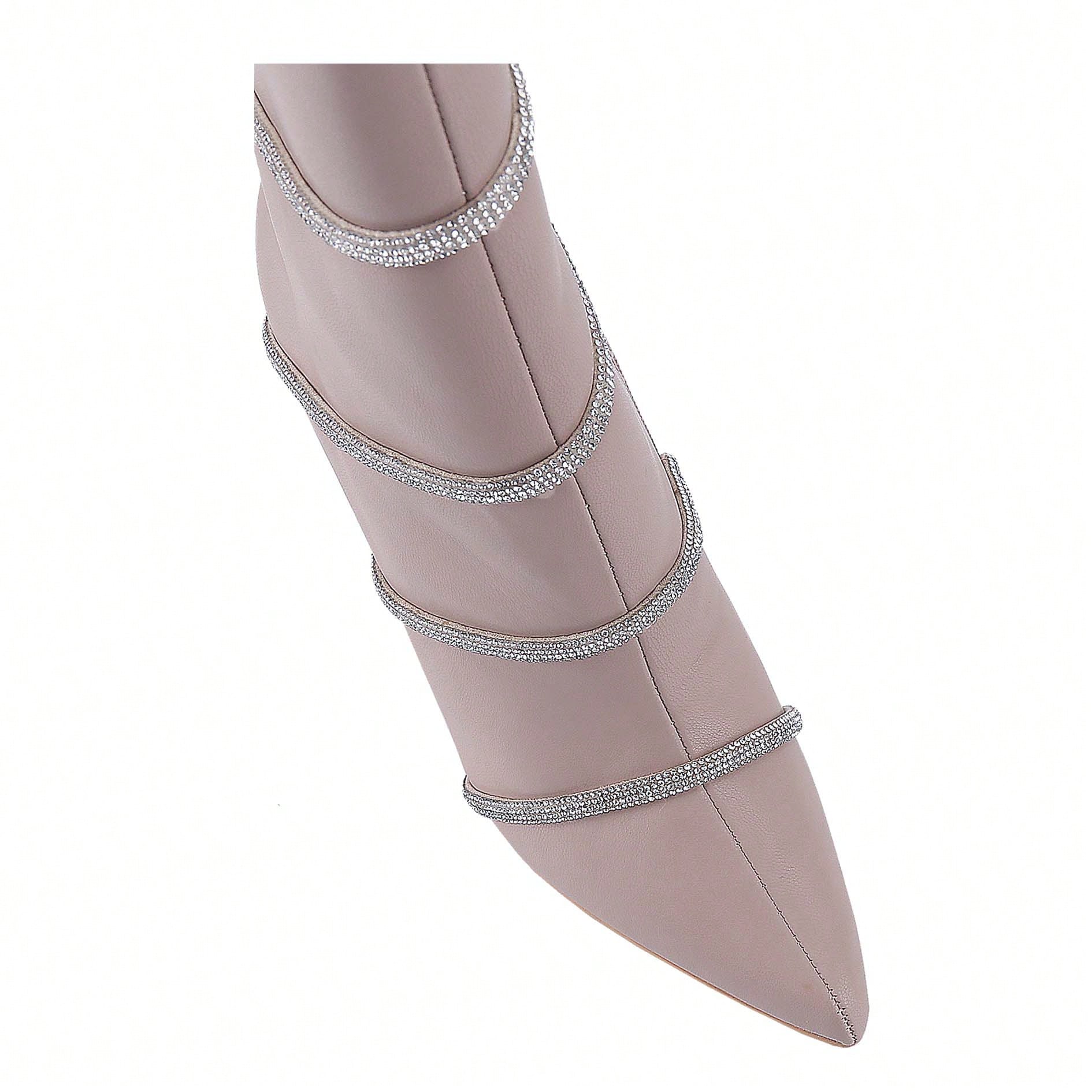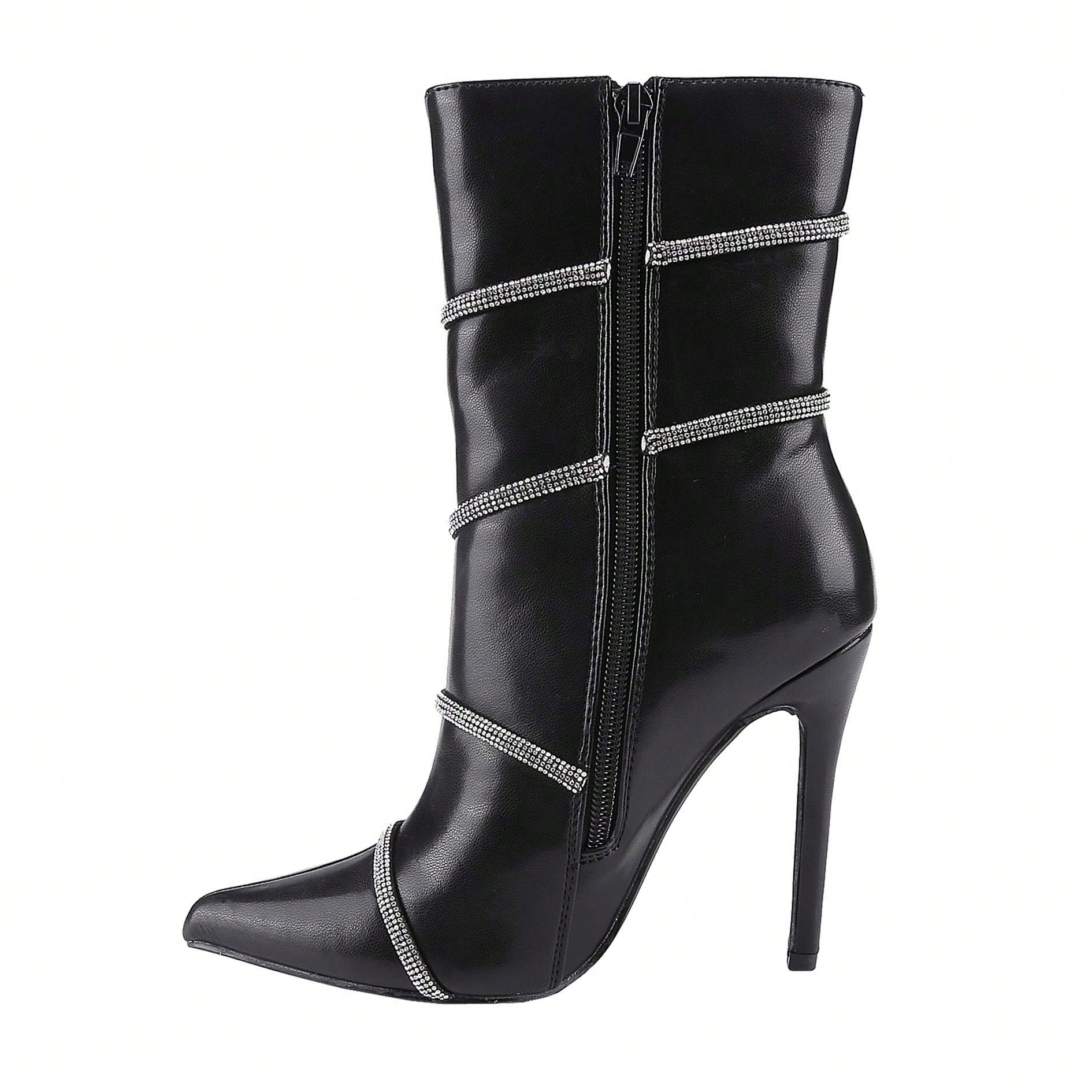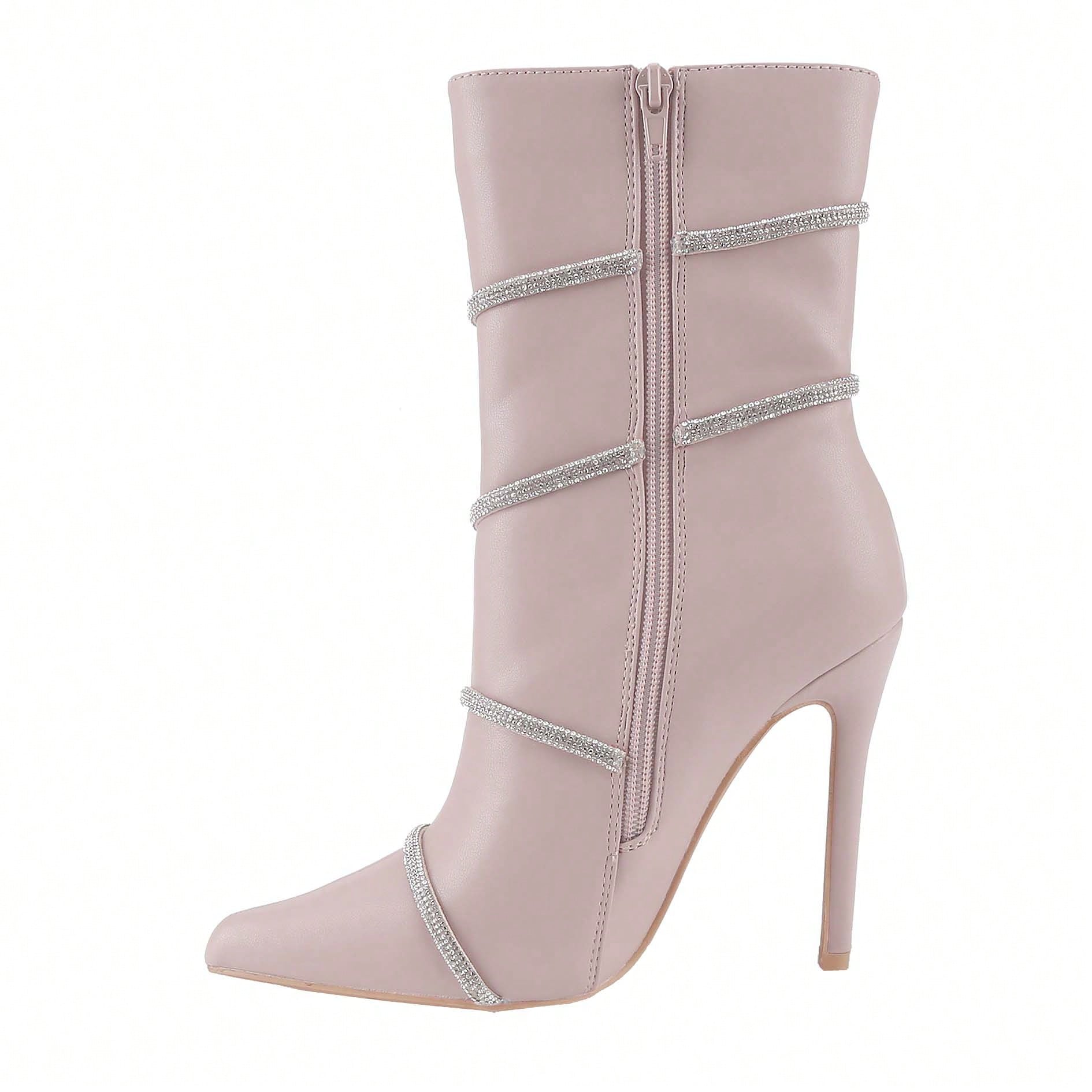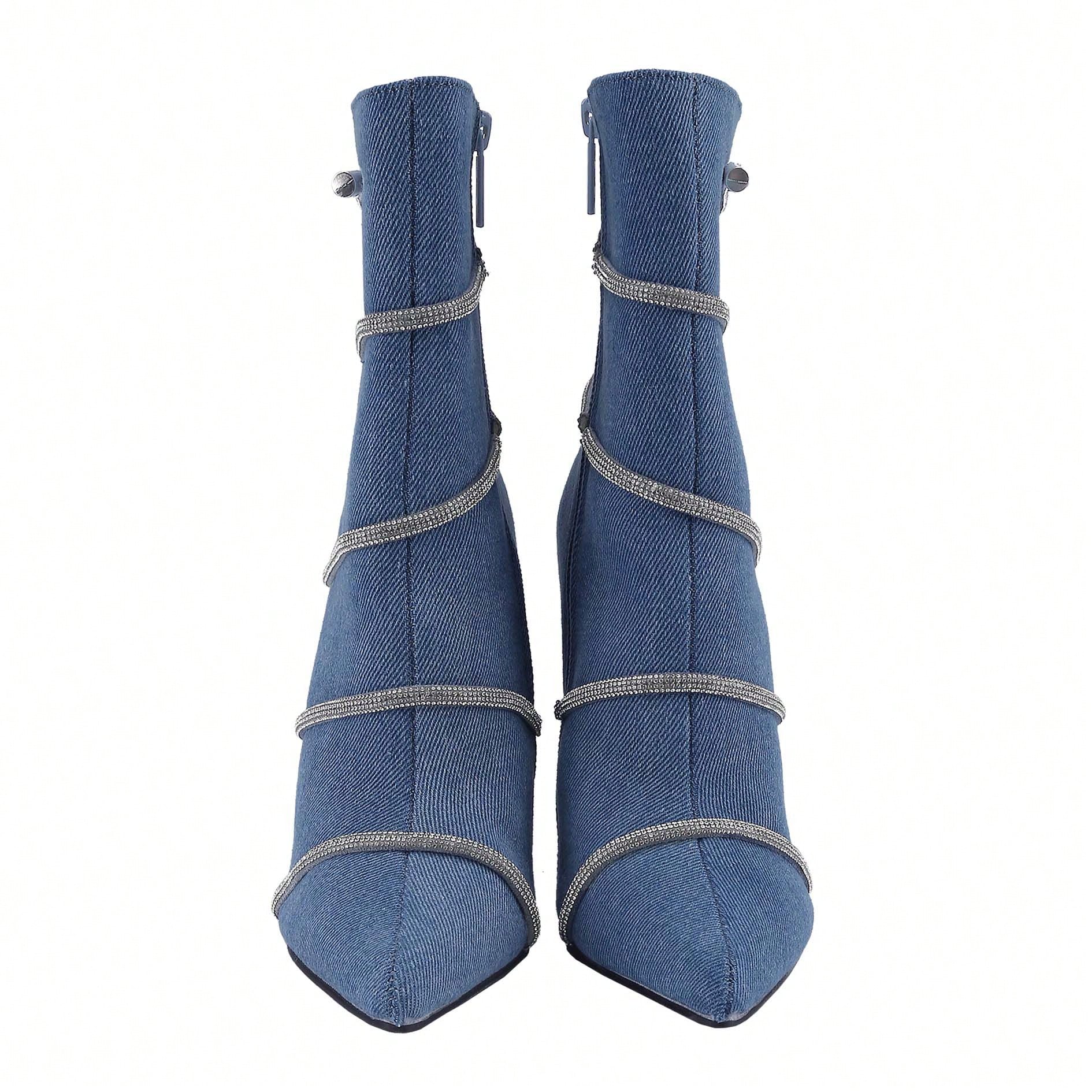Women's Stiletto Ankle Boots Sexy Pointed Toe Crystal Straps Embellished Booties Slip-On High Heels Boots